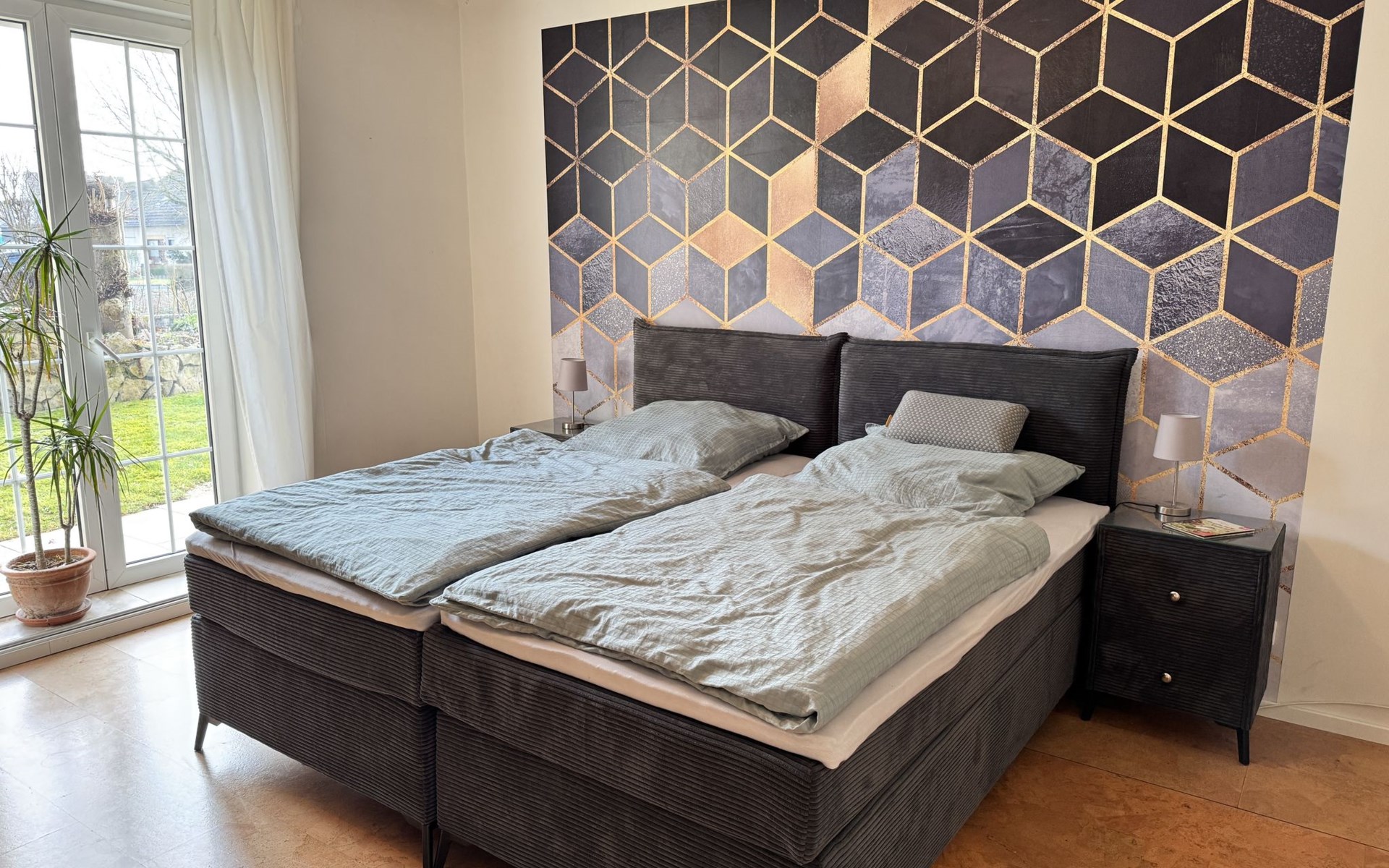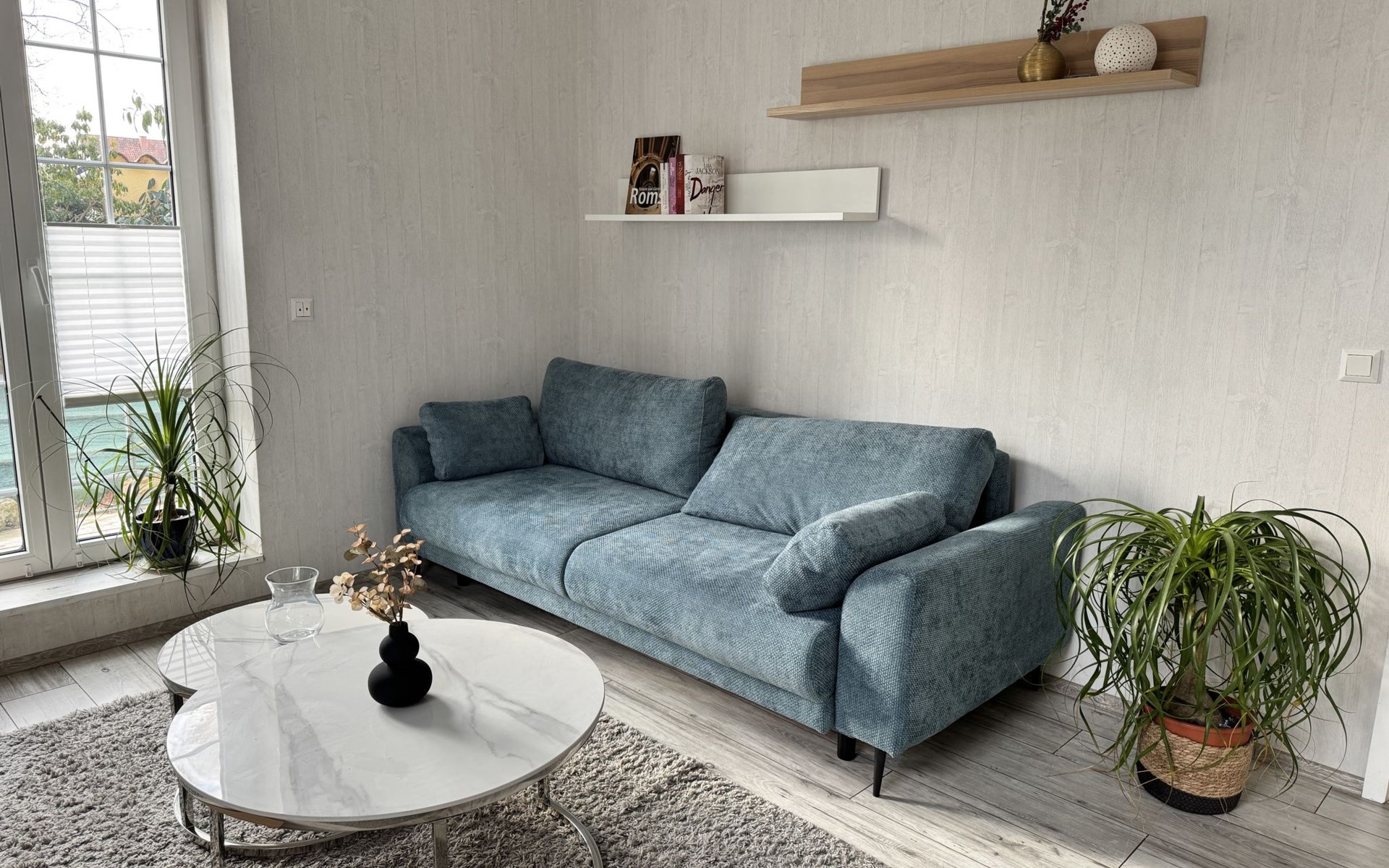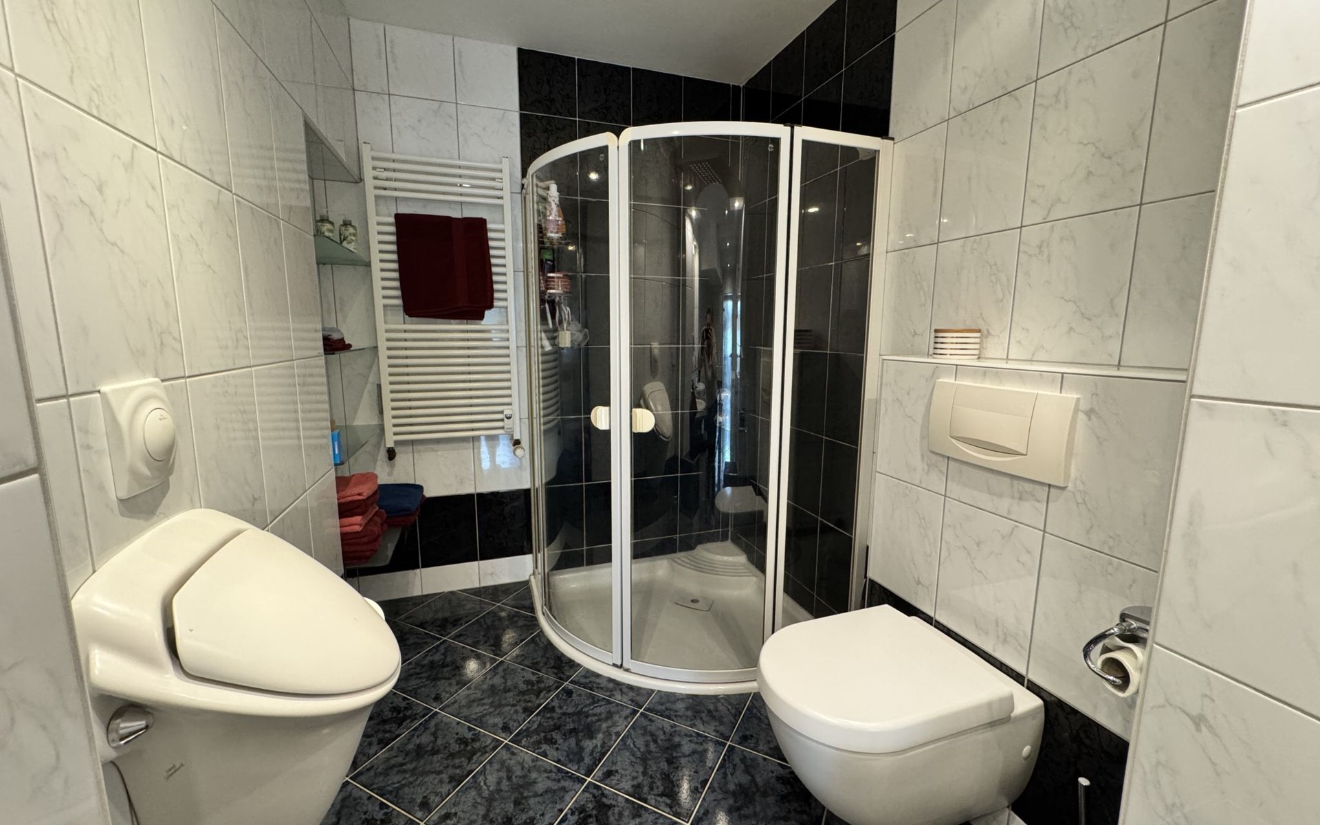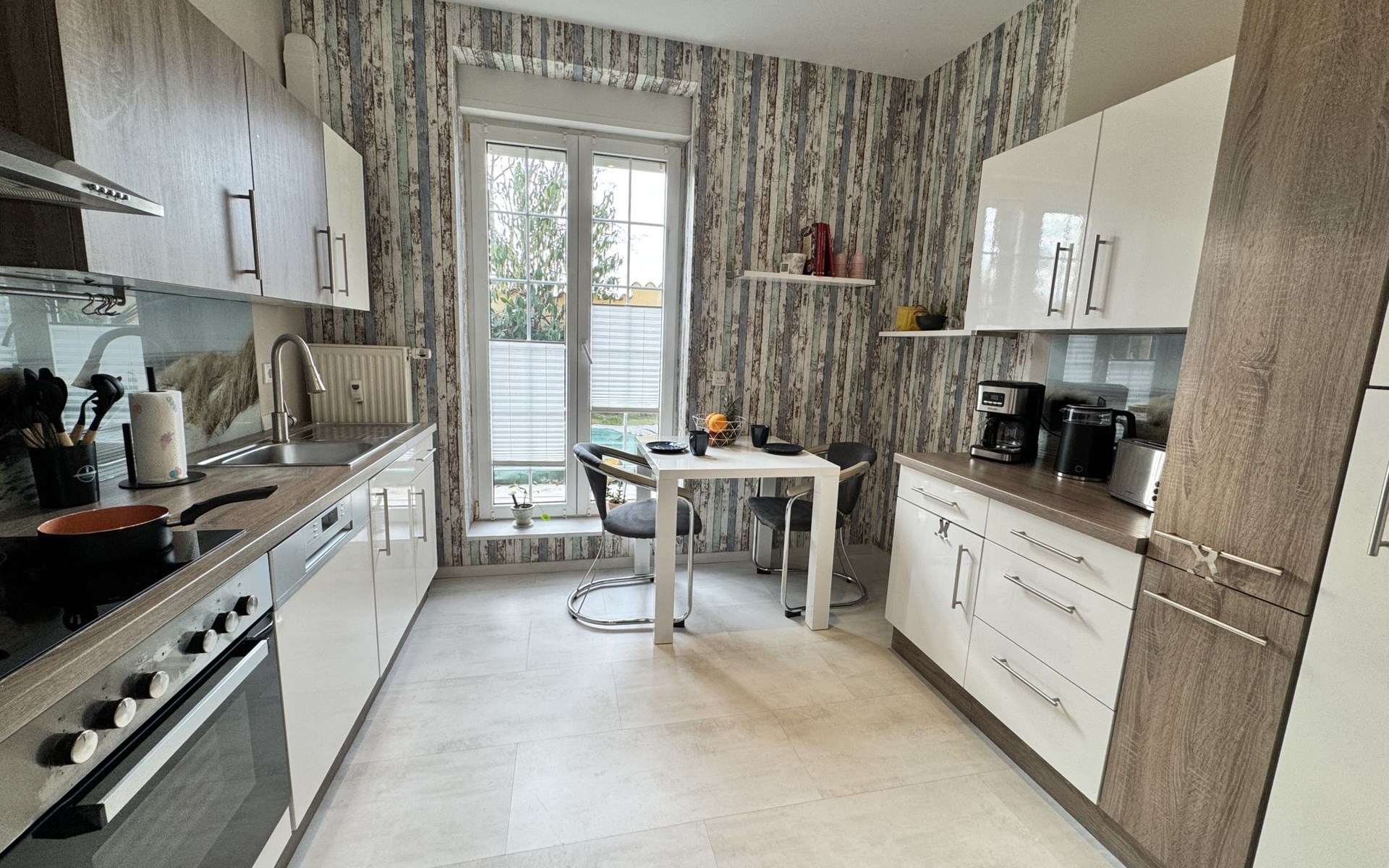 Apartment house. On the outskirts, 1.5 km from the centre, in a quiet position in the residential district. Private: property 100 m2, lawn for sunbathing, pond, parking at the house. Supermarket 200 m, restaurant 400 m, bus stop 50 m, railway station 1.5 km, outdoor swimming pool 2 km, indoor swimming pool 8 km, lake Schiedersee 9 km. Golf course (18 hole) 14 km, tennis 2 km. Please note: the owner lives in the same residence.