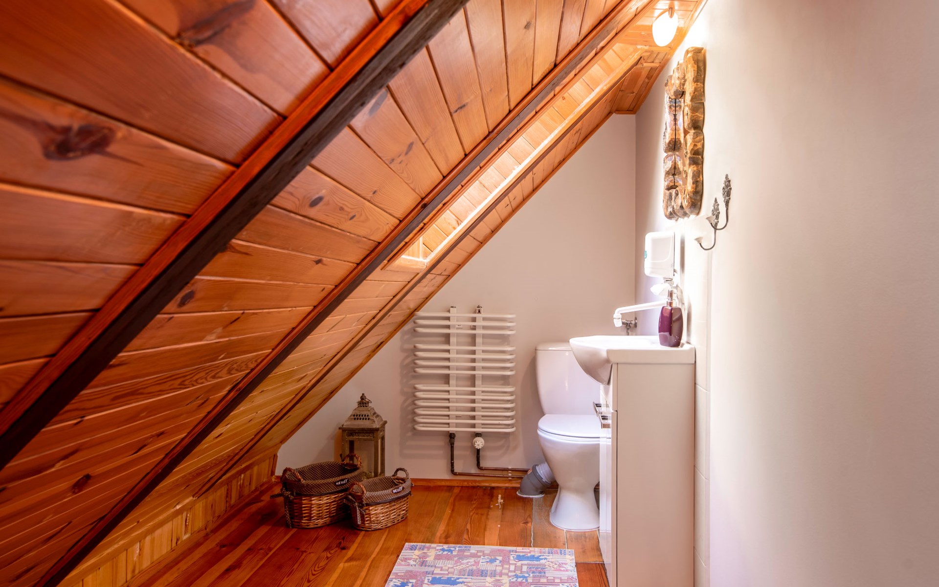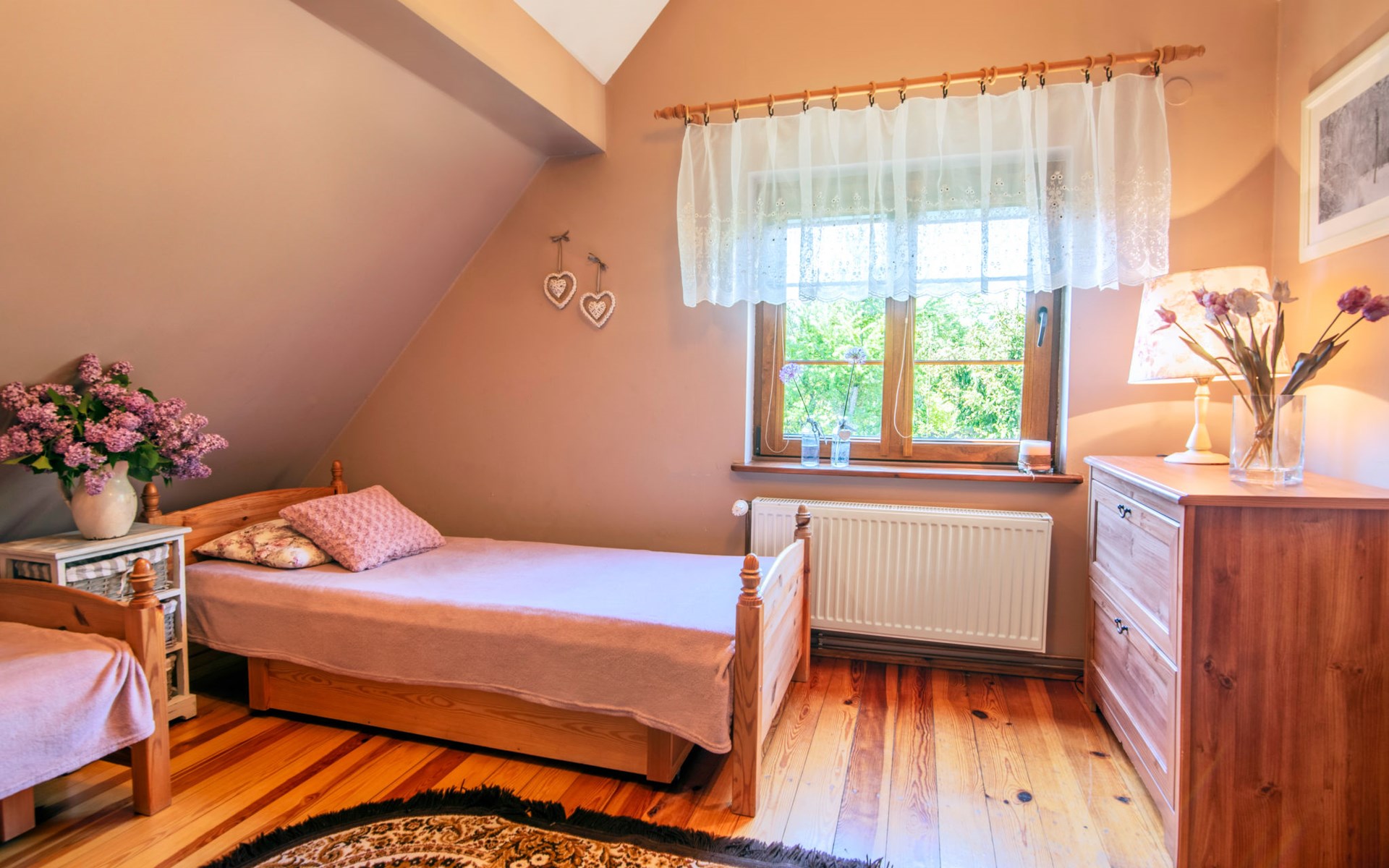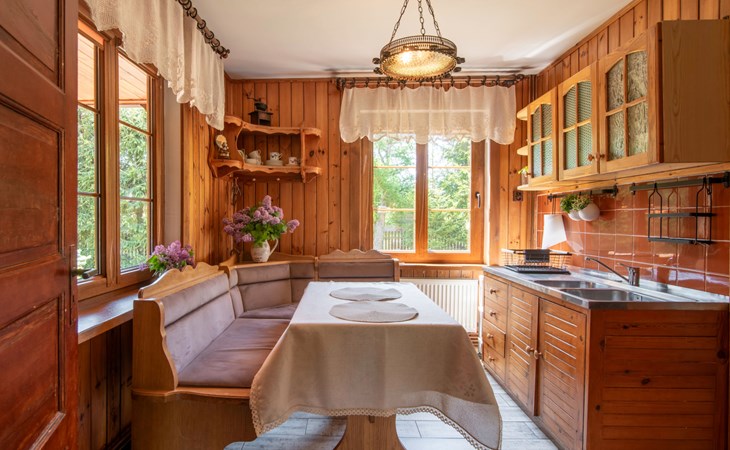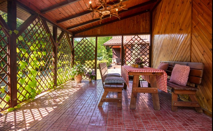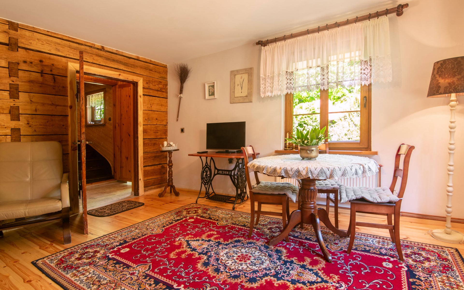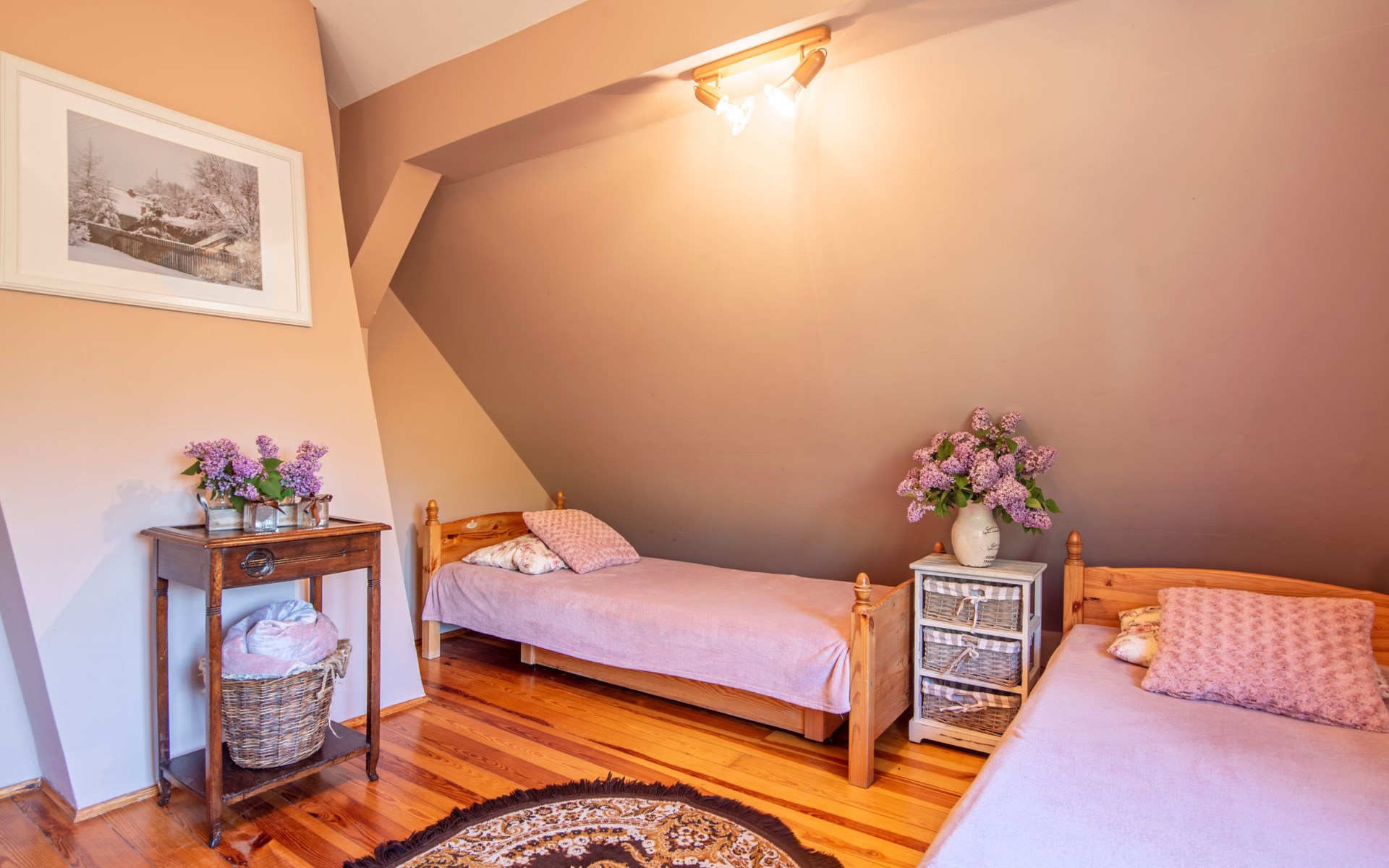 Cosy farmhouse "Szeroki Bór 2", built in 1919, renovated in 1991, surrounded by trees and meadows. In a hamlet, in a quiet, sunny position, along the wooded area, 300 m from the lake, located by a road, in the countryside. Lawn and trees. Private: property 1'500 m2 (fenced), flowers and trees, courtyard. Arbour (12 m2), terrace (5 m2), garden furniture, barbecue, fireplace. In the house: storage room for bicycles. Parking at the house, single garage. Grocery 3 km, shopping centre 4 km, restaurant 4 km, bar 3 km, bus stop 100 m, sandy beach 4 km. Tennis 7 km, riding stable 7 km. Please note: fishing [permit required].