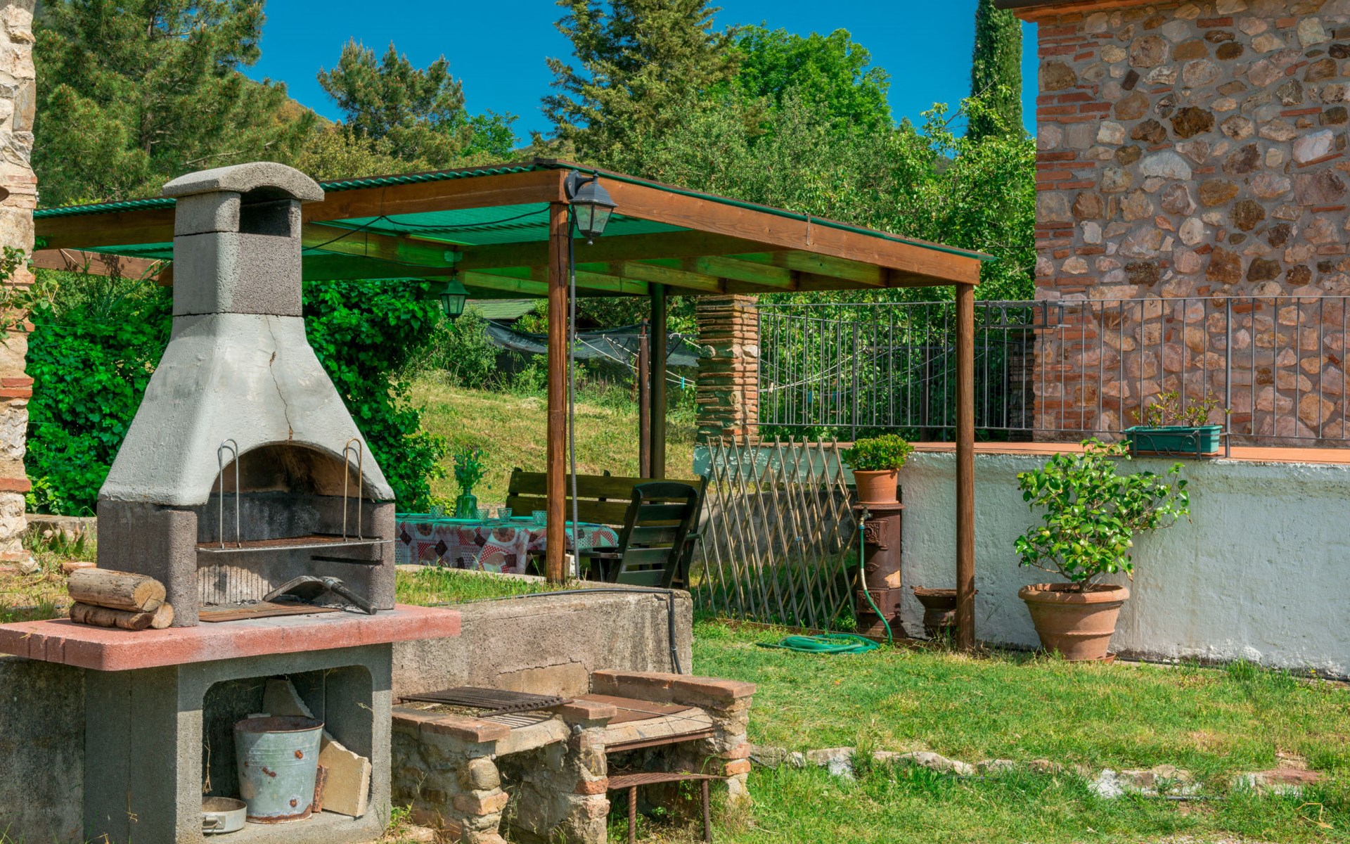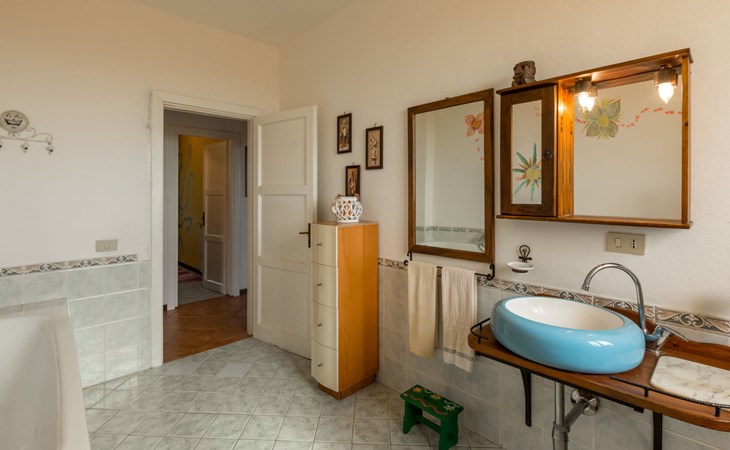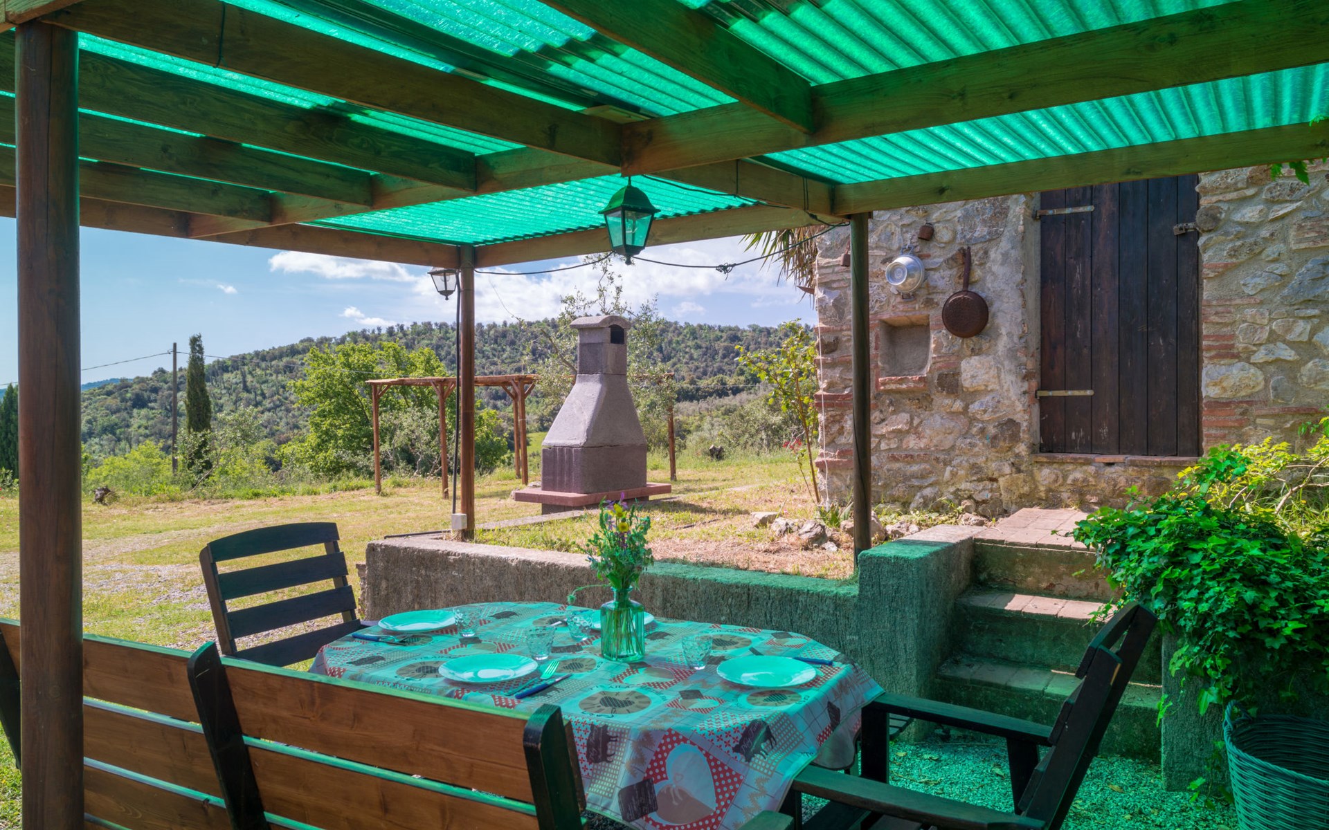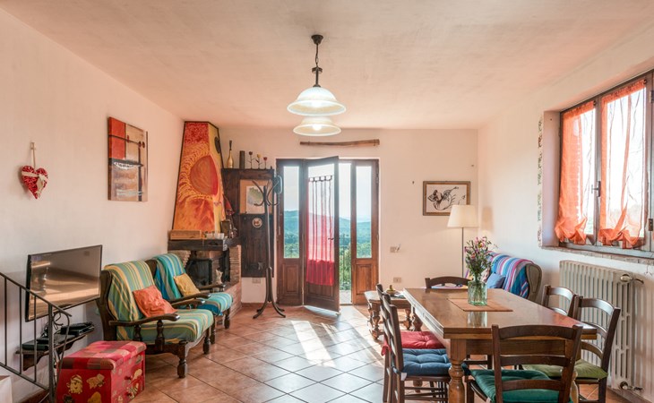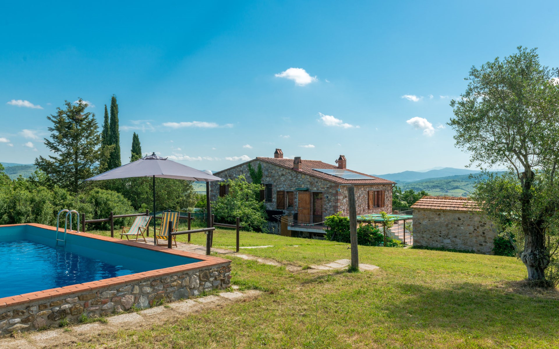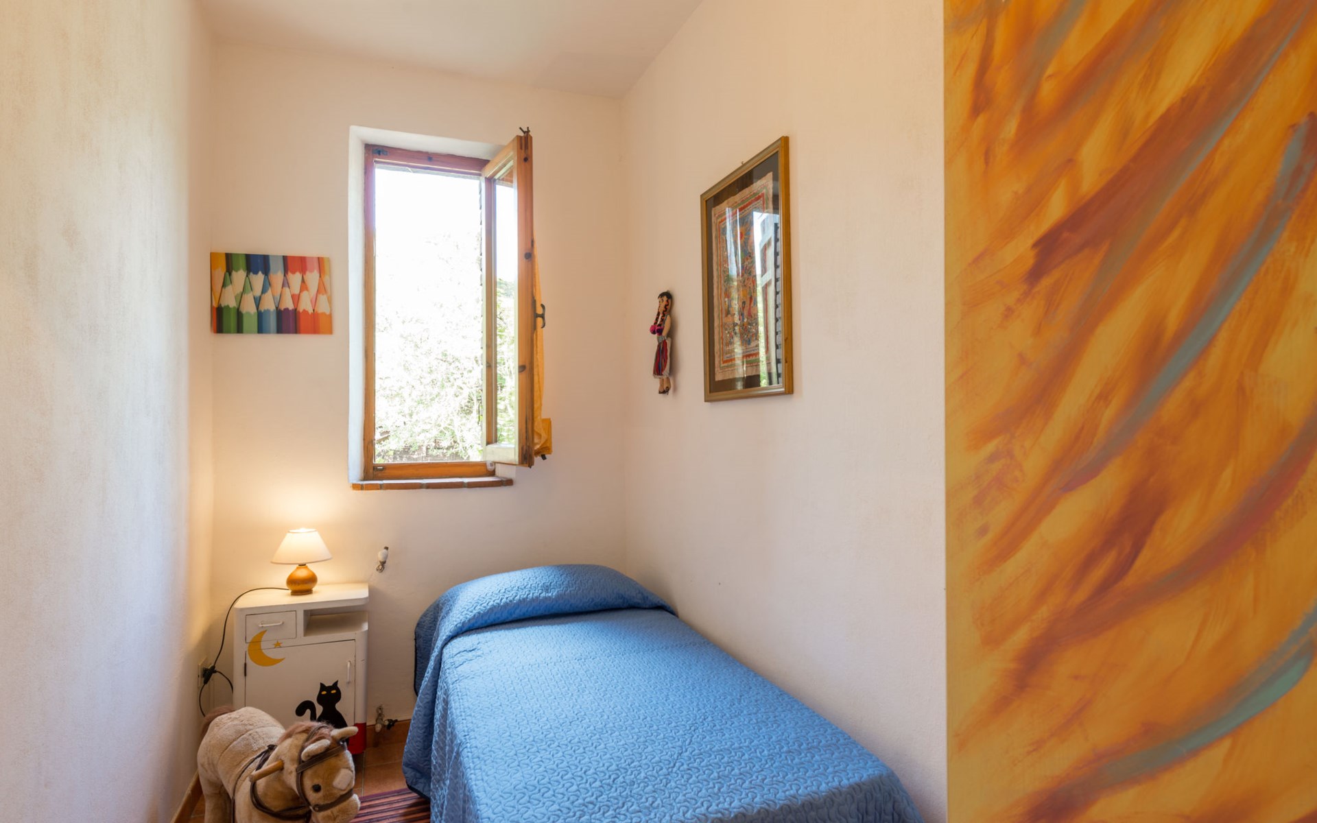 House "Valmarinella", surrounded by trees and meadows. 2 apartments in the property. 2.5 km from the centre of Ravi, 20 km from the centre of Follonica, 30 km from the centre of Grosseto, in a quiet, sunny position, 20 km from the sea, in the countryside. Private: property 7'000 m2 with trees, meadow, beautiful garden to relax, swimming pool (9 x 5 m, seasonal availability: 15.May. - 15.Oct.). Outdoor shower, barbecue. 50 m long motor access (via unmade road). Stepped path (6 steps) to the house. Roofed, parking on the premises. Shop 2.5 km, supermarket 5 km, restaurant 1.7 km, bus stop 200 m, railway station "Follonica" 22 km, ferry "Piombino" 50 km, sandy beach 20 km. Marina 16 km, golf course (18 hole) 29 km. Nearby attractions: Gavorrano 3 km, Scarlino 14 km, Cala Violina 20 km, Catiglione della Pescaia 27 km, Follonica 22 km. Well-known lakes can easily be reached: Accesa 15 km. Hiking paths: Mountain-bike trails 700 m. Two rooms on the lower ground floor with a separate entrance have a different owner and are occasionally used for holiday purposes (without use of the pool).