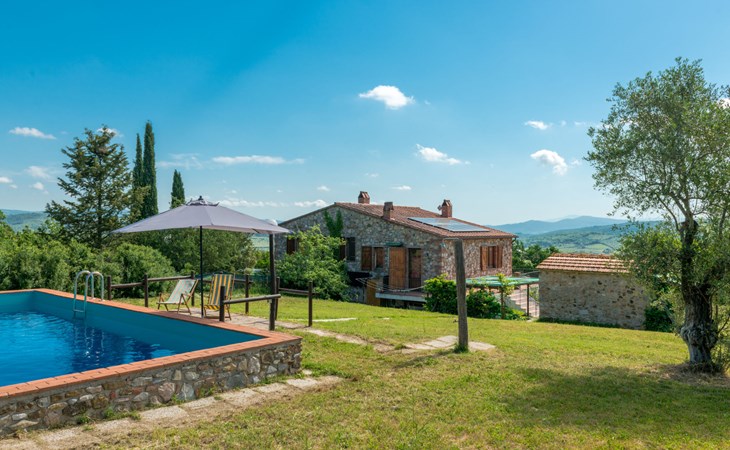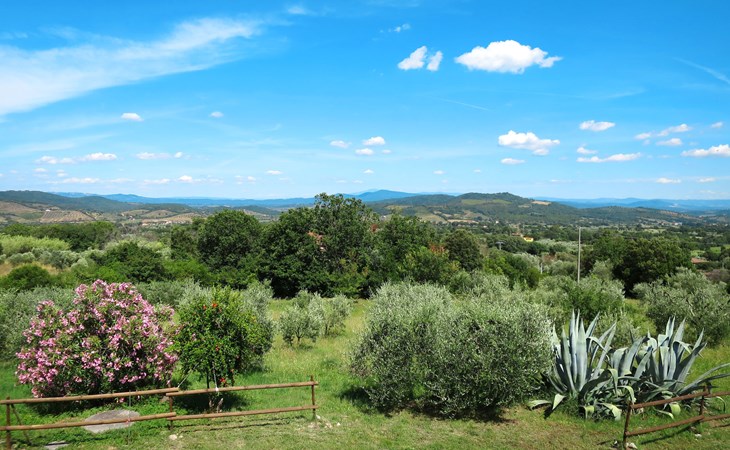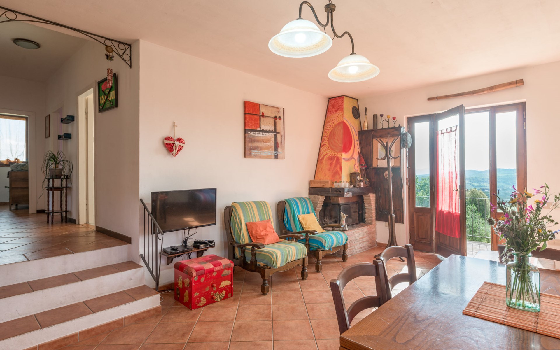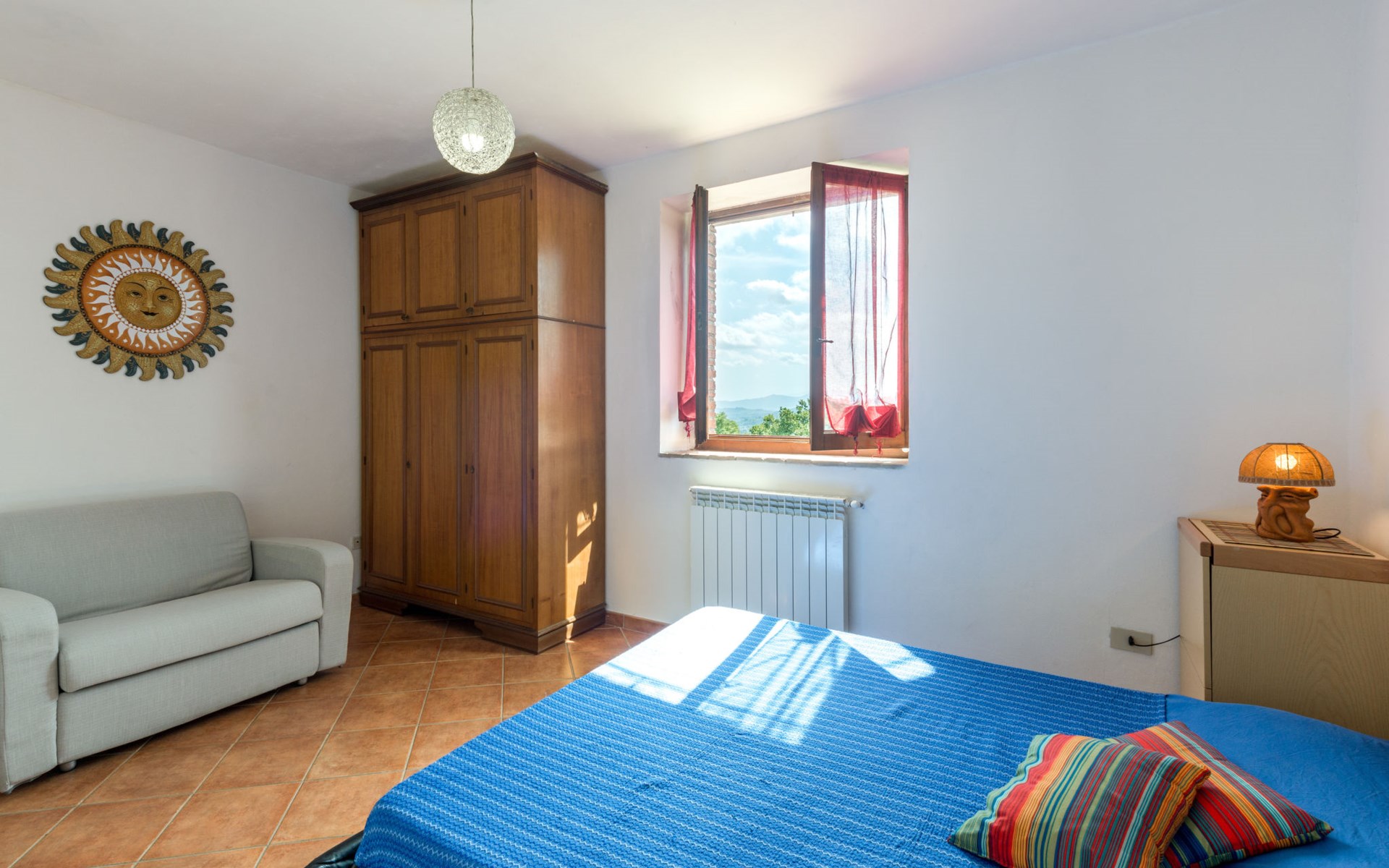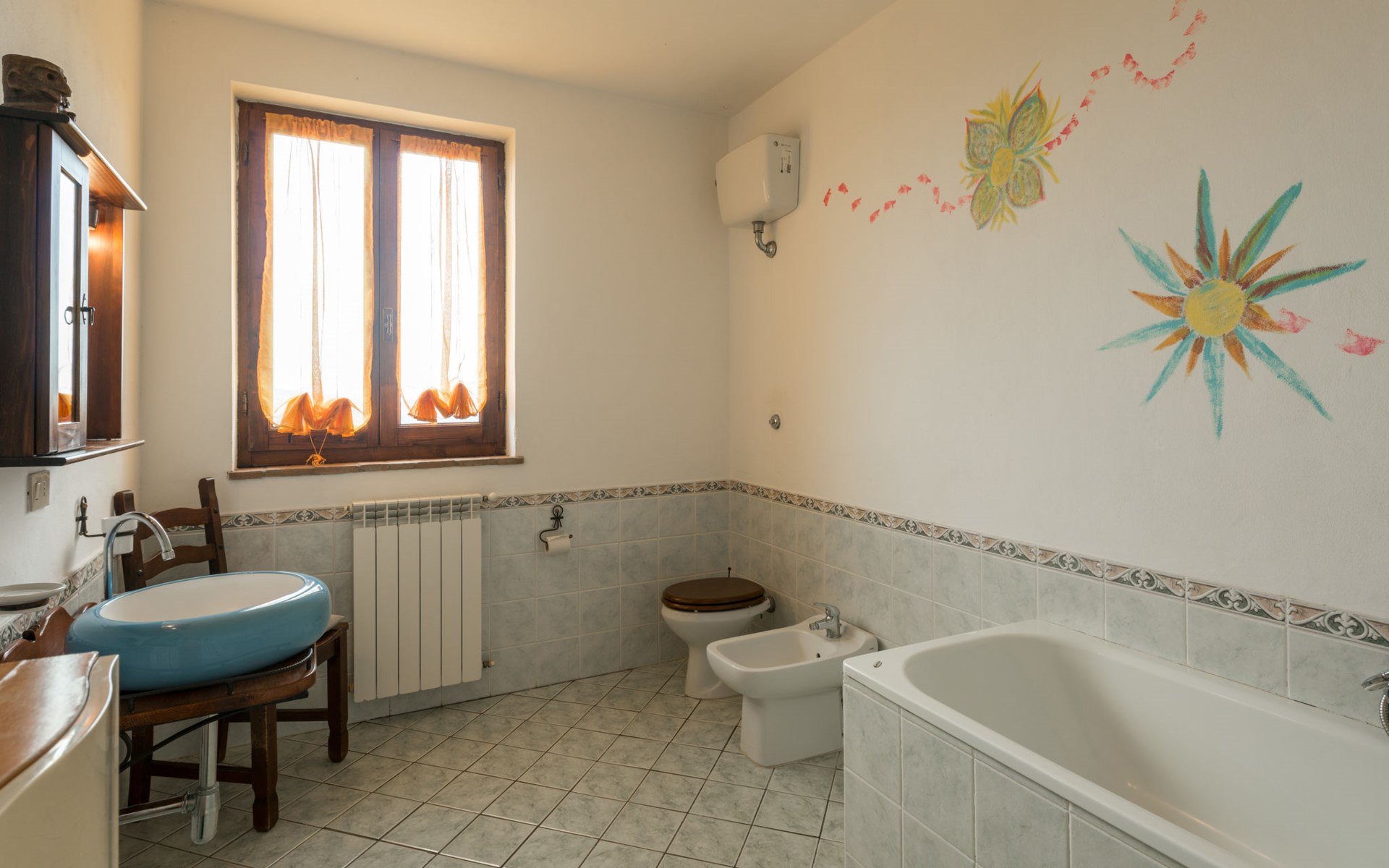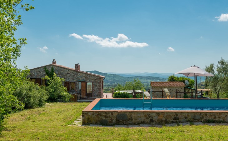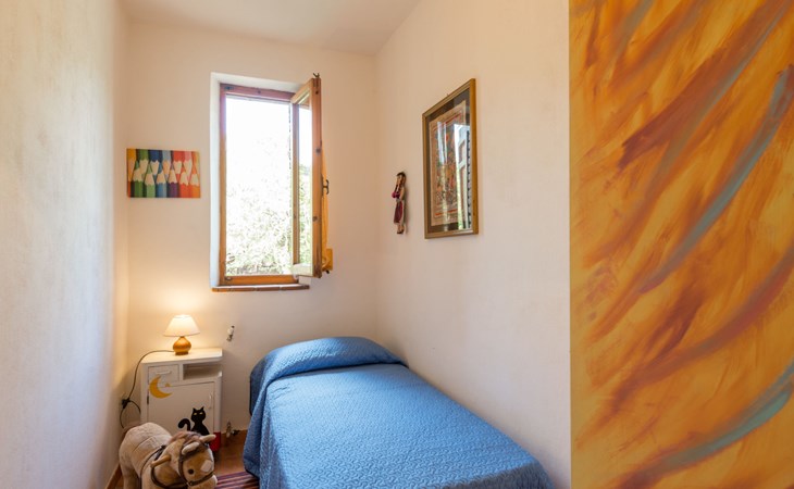 House "Valmarinella", surrounded by trees and meadows. 2 apartments in the property. 2.5 km from the centre of Ravi, 20 km from the centre of Follonica, 30 km from the centre of Grosseto, in a quiet, sunny position, 20 km from the sea, in the countryside. Private: property 7'000 m2 with trees, meadow, beautiful garden to relax, swimming pool (9 x 5 m, seasonal availability: 15.May. - 15.Oct.). Outdoor shower, barbecue. 50 m long motor access (via unmade road). Stepped path (6 steps) to the house. Roofed, parking on the premises. Shop 2.5 km, supermarket 5 km, restaurant 1.7 km, bus stop 200 m, railway station "Follonica" 22 km, ferry "Piombino" 50 km, sandy beach 20 km. Marina 16 km, golf course (18 hole) 29 km. Nearby attractions: Gavorrano 3 km, Scarlino 14 km, Cala Violina 20 km, Catiglione della Pescaia 27 km, Follonica 22 km. Well-known lakes can easily be reached: Accesa 15 km. Hiking paths: Mountain-bike trails 700 m. Two rooms on the lower ground floor with a separate entrance have a different owner and are occasionally used for holiday purposes (without use of the pool).
