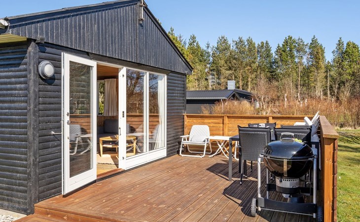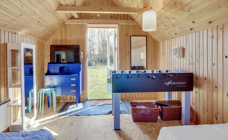 Single-family house, built in 1970. 1.5 km from the sea. Private: property 1'000 m2, well-kept garden. Terrace (20 m2), children's playground (swing). In the house: table football, trampoline, washing machine. Parking at the house. Grocery 3 km. Golf course 5 km. The owner does not accept any youth groups.