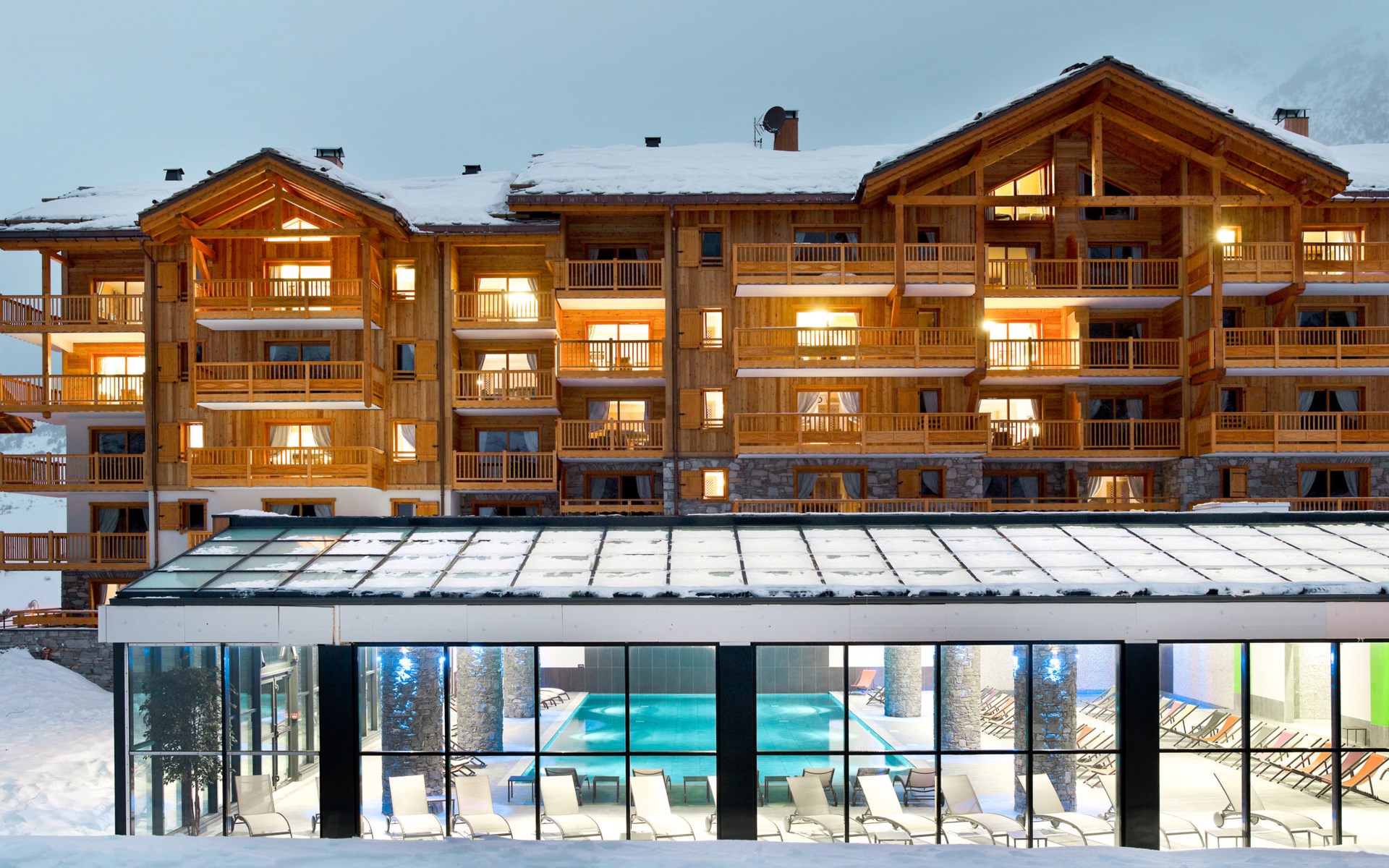 Beautiful, rustic, comfortable residence "CGH Rés&Spa Les Chalets de Flambeau". 117 apartments in the residence. 2.2 km from the centre of Lanslebourg-Mont-Cenis, 1 km from the centre of Lanslevillard, 30 km from the centre of Modane, directly by the skiing area, situated at the foot Arc, in the countryside. For shared use: indoor pool heated (18 x 8 m, seasonal availability: 01.Jan. - 31.Dec.). Children's pool. In the complex: reception, lounge, WiFi, sauna, fitness room, massage (extra). Steam room, hot tub, billiard table, table football, lift, storage room for skis, washing machine, tumble dryer (extra), ski boot dryer. Bread roll service. Storeroom available. Communal covered parking (extra). Dimension: height 220 cm. Supermarket, restaurant 300 m, railway station "Bourg Saint Maurice" 79 km. Walking paths from the house, ski lift, slopes 150 m. Well-known ski regions can easily be reached: Val Cenis Vanoise. Please note: baby equipment on request (included). The photograph shows a typical example.