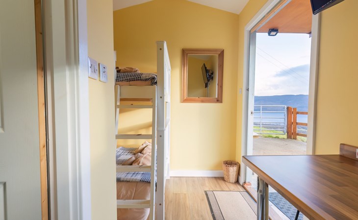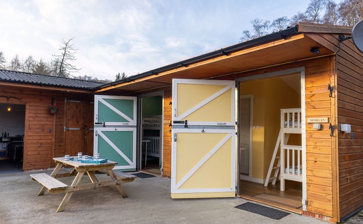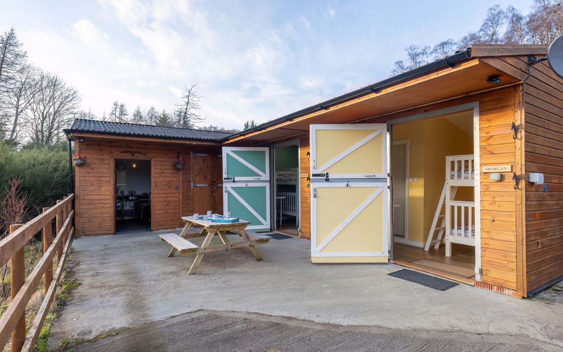 Small, simple, comfortable chalet "Morgan Stable", semi-detached, surrounded by meadows and fields. On the outskirts, 2 km from the centre of Drumnadrochit, in a secluded, quiet position on top of a hill, 2 km from the lake. For shared use: patio, garden furniture. Pre-arrival grocery service. Parking at the house. Shop 2.5 km, grocery 2.5 km, supermarket 20 km, shopping centre 20 km, restaurant 1.5 km, bar 2.5 km, bakery 2.5 km, café 2 km, 2 minute walk to the centre, bus stop 2 km, railway station 20 km. Golf course (18 hole) 20 km, riding stable 35 km. Nearby attractions: Urquhart Castle 5 km, Loch Ness 2 km, Loch Ness Exhibition Centre 2 km, Fort Augustus 30 km, Jacobite Boat Trips 3 km, Culloden Battlefield 33 km. Well-known lakes can easily be reached: Loch Affric 29 km, Loch Meiklie 9 km. Hiking paths: Great Glen Way 1 km, Abriachan Forest 10 km, Glen Affric 29 km. Please note: car recommended. Suitable for families.