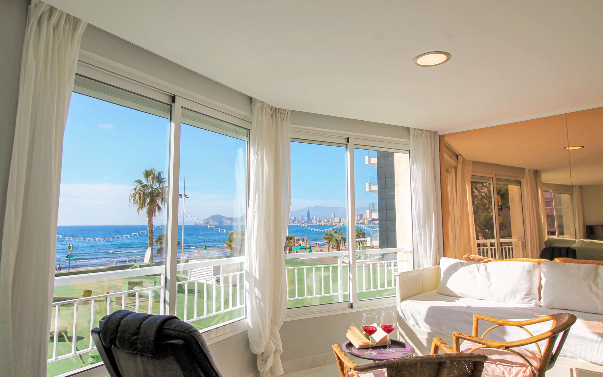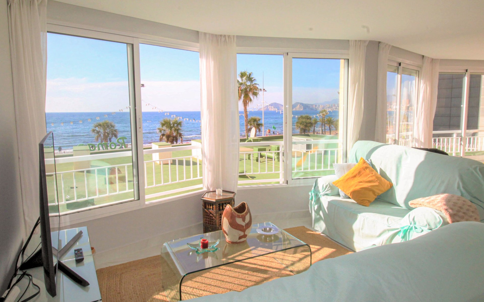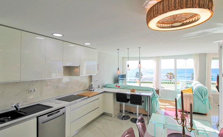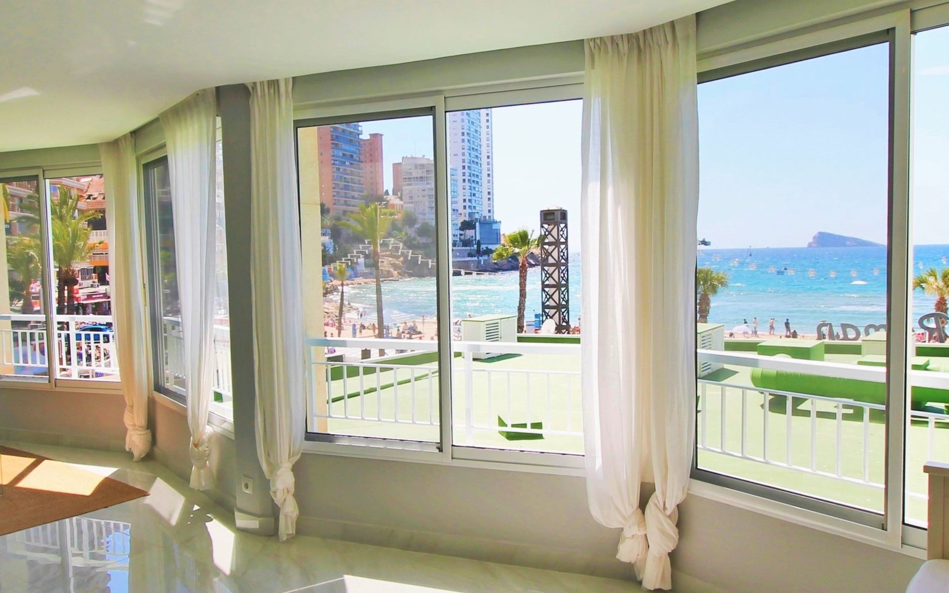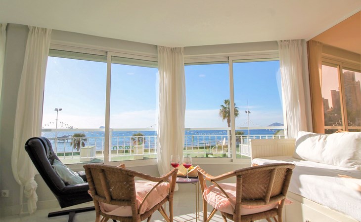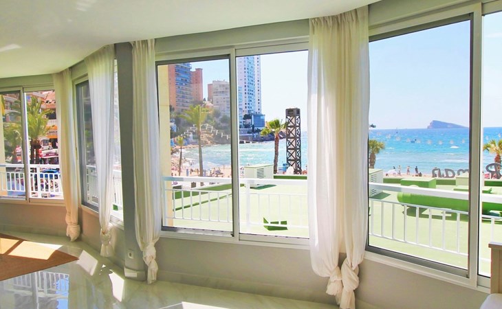 Playa de Levante: Large, comfortable apartment block "Vistas sobre el mar", 19 storeys. In the resort Rincon de Loix, in the district Playa de Levante, in a busy, sunny position, in the heart of the city, 20 m from the sea, from the beach, road to cross. For shared use: property (fenced), swimming pool (5 x 8 m, depth 90 - 170 cm, seasonal availability: 01.Jan. - 31.Dec.). Outdoor shower. In the house: lift. Public parking. Supermarket 30 m, restaurant 20 m, bar 10 m, bus stop "Benidorm Urbano" 100 m, railway station "Benidorm" 5 km. Golf course (18 hole) 7 km, walking paths from the house 300 m. Nearby attractions: Aqualandia 2 km, Mundomar 2 km, Terra Mitica 9 km, Terranatura 9 km, Alicante 44 km, Aeropuerto Alicante 58 km. Please note: baby equipment on request. Groups of teenagers on request only. 24hr guard. Neighbourhood highly sensitive to noise. Quietness and good behaviour expected.
