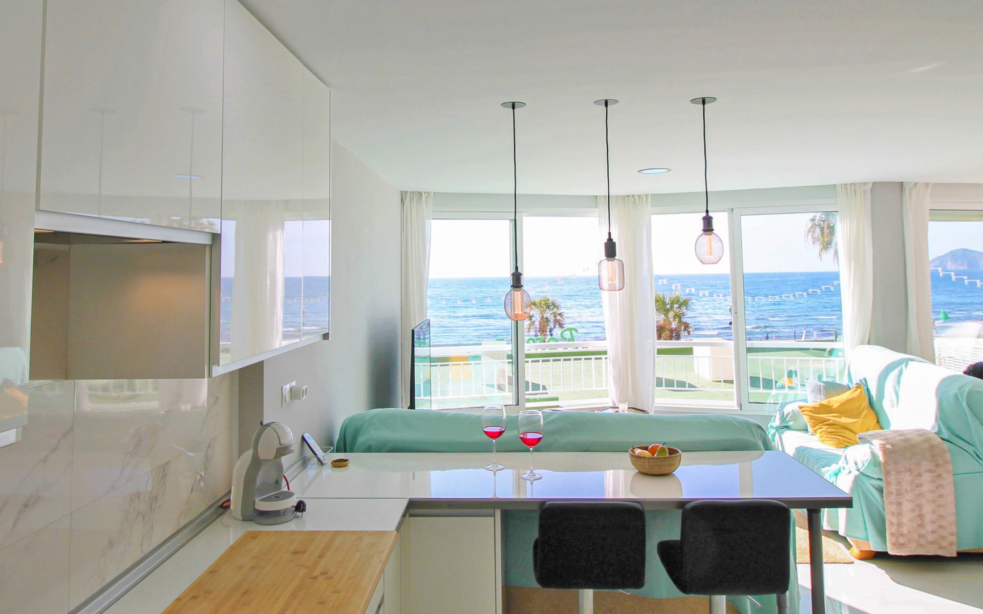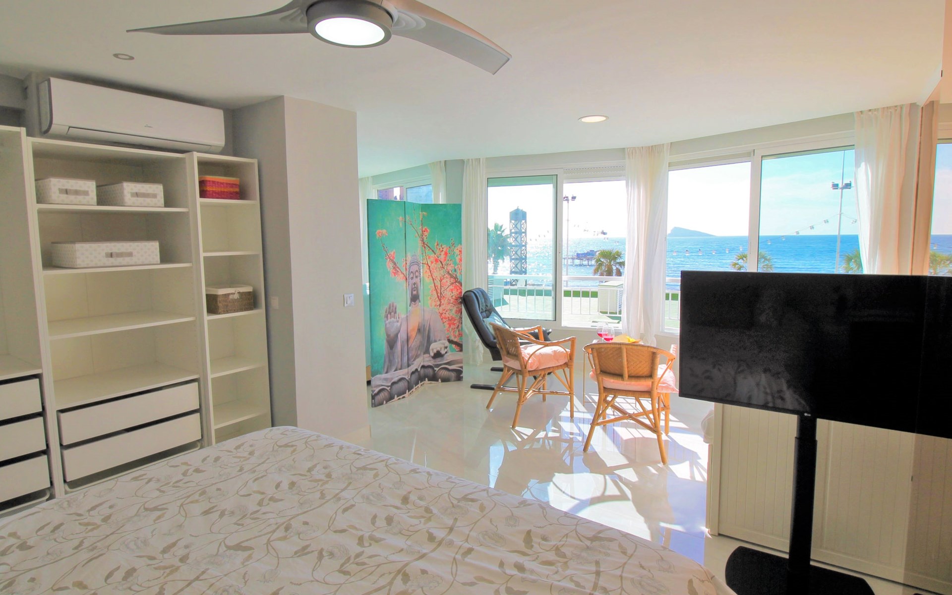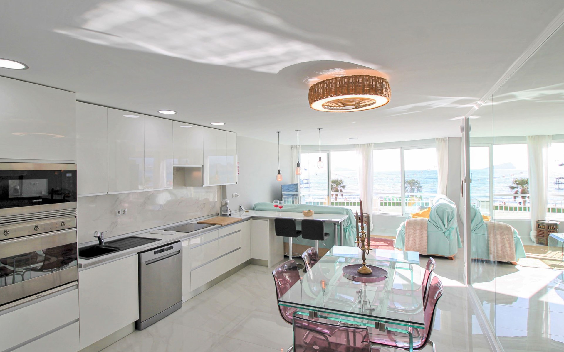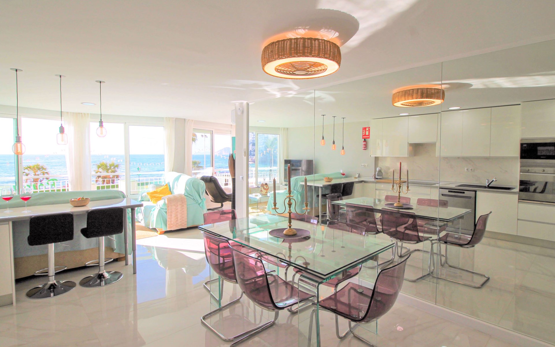 Playa de Levante: Large, comfortable apartment block "Vistas sobre el mar", 19 storeys. In the resort Rincon de Loix, in the district Playa de Levante, in a busy, sunny position, in the heart of the city, 20 m from the sea, from the beach, road to cross. For shared use: property (fenced), swimming pool (5 x 8 m, depth 90 - 170 cm, seasonal availability: 01.Jan. - 31.Dec.). Outdoor shower. In the house: lift. Public parking. Supermarket 30 m, restaurant 20 m, bar 10 m, bus stop "Benidorm Urbano" 100 m, railway station "Benidorm" 5 km. Golf course (18 hole) 7 km, walking paths from the house 300 m. Nearby attractions: Aqualandia 2 km, Mundomar 2 km, Terra Mitica 9 km, Terranatura 9 km, Alicante 44 km, Aeropuerto Alicante 58 km. Please note: baby equipment on request. Groups of teenagers on request only. 24hr guard. Neighbourhood highly sensitive to noise. Quietness and good behaviour expected.