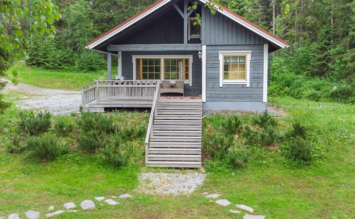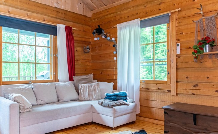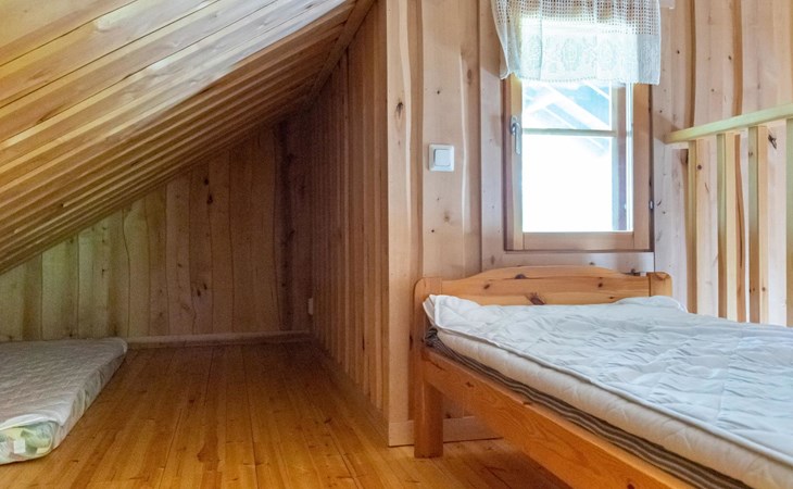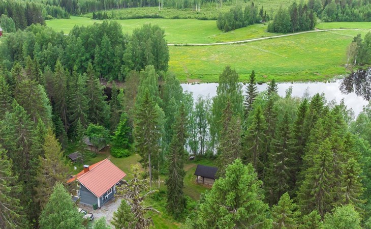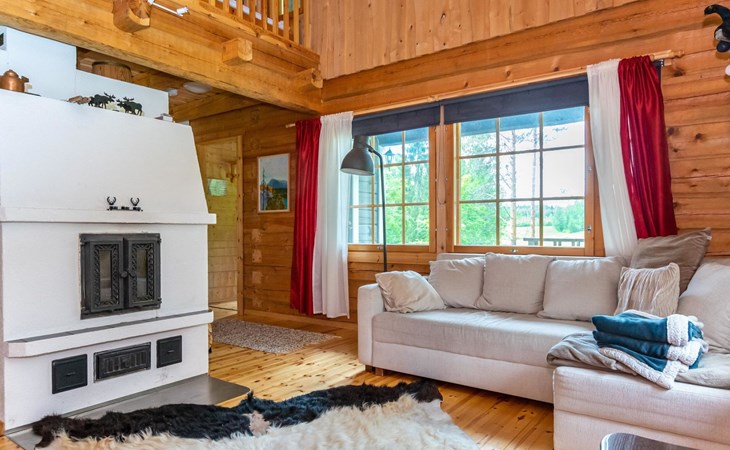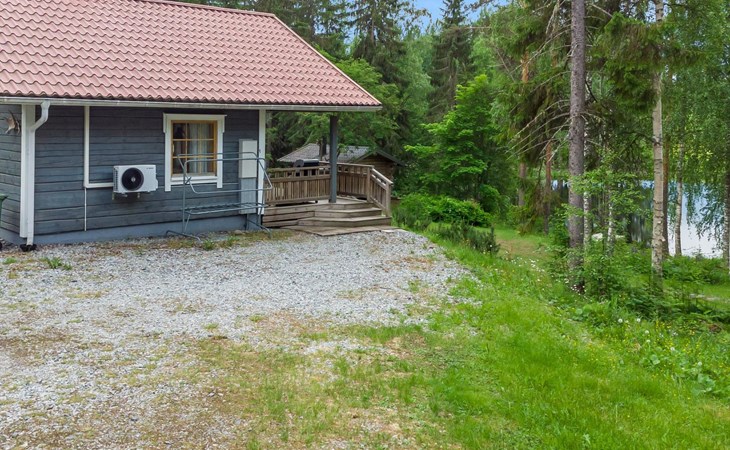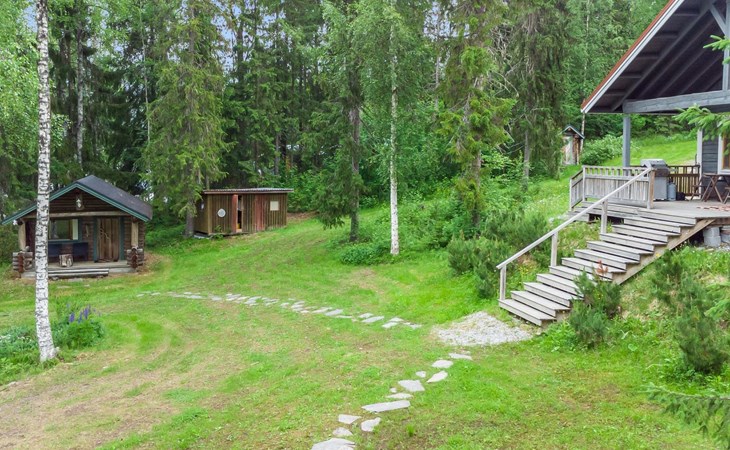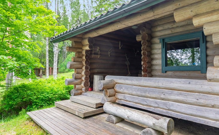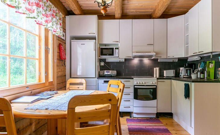 23 km northeast of Iisalmi, River Matkusjoki 35 m, log cabin (2018), living room with TV, heat-storing fireplace, sofa bed that can be extended to a 140x200 cm bed for two. WC with shower. One bed under the stairs. Well-equipped kitchen and spacious dining area. In the loft, there is one bed and two 80x200 cm mattresses on the floor. The yard's outbuilding has a double bed. The outbuilding includes an electric heater, so it can be used for accommodation in winter as well.