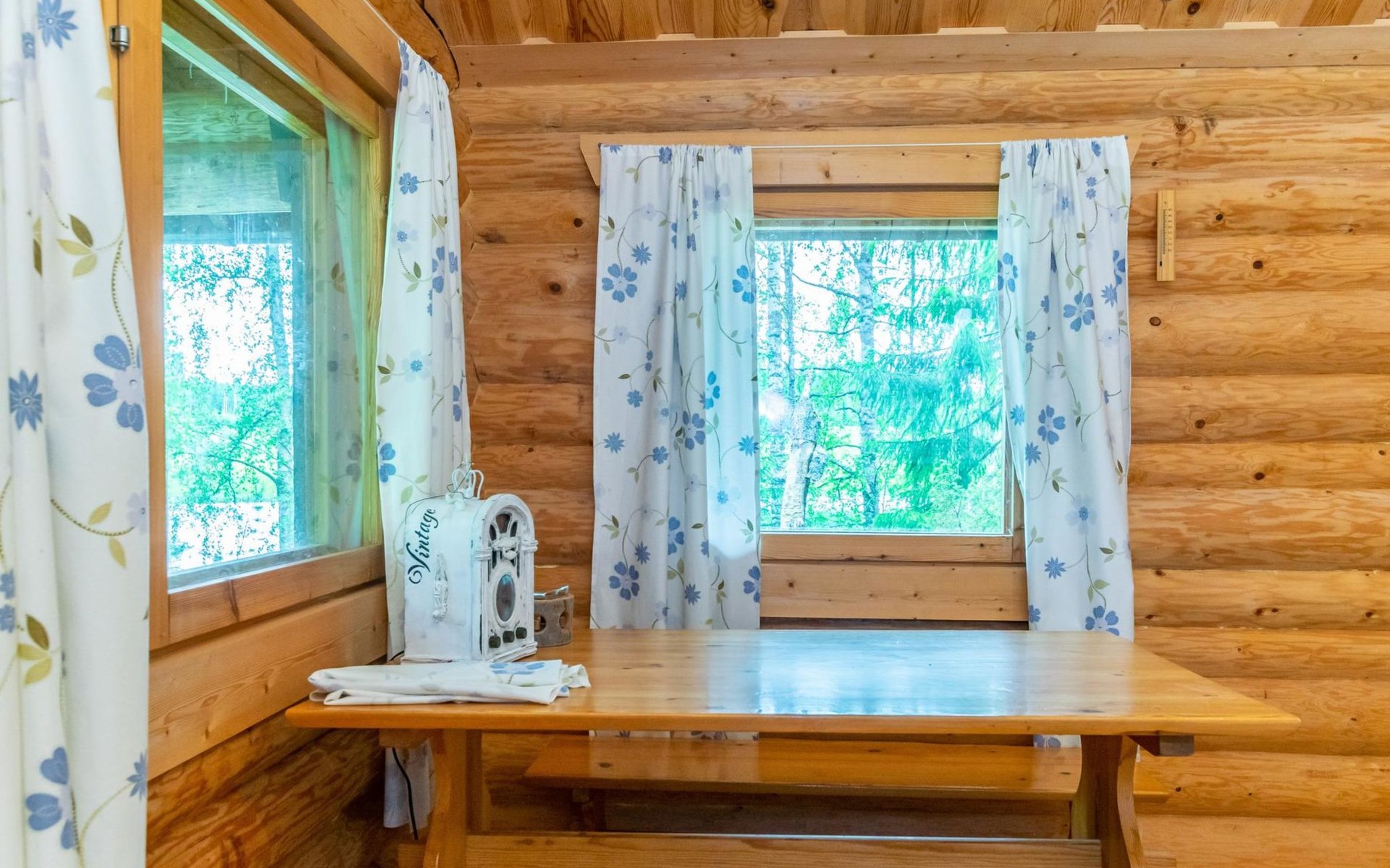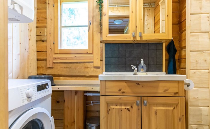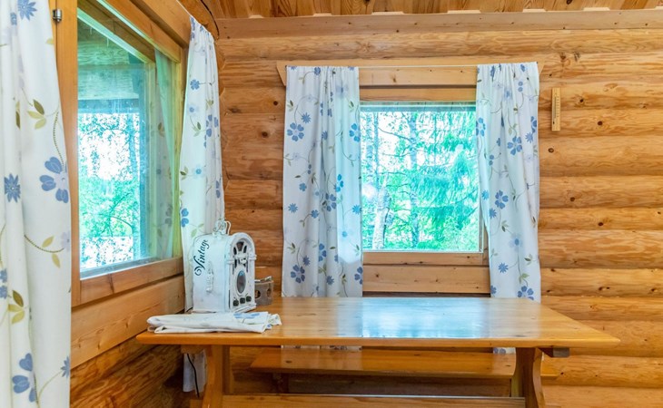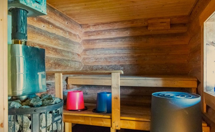 The riverside sauna has a wood-burning stove. Cold tap water is available year-round. There is a water cauldron in the sauna for heating the washing water.