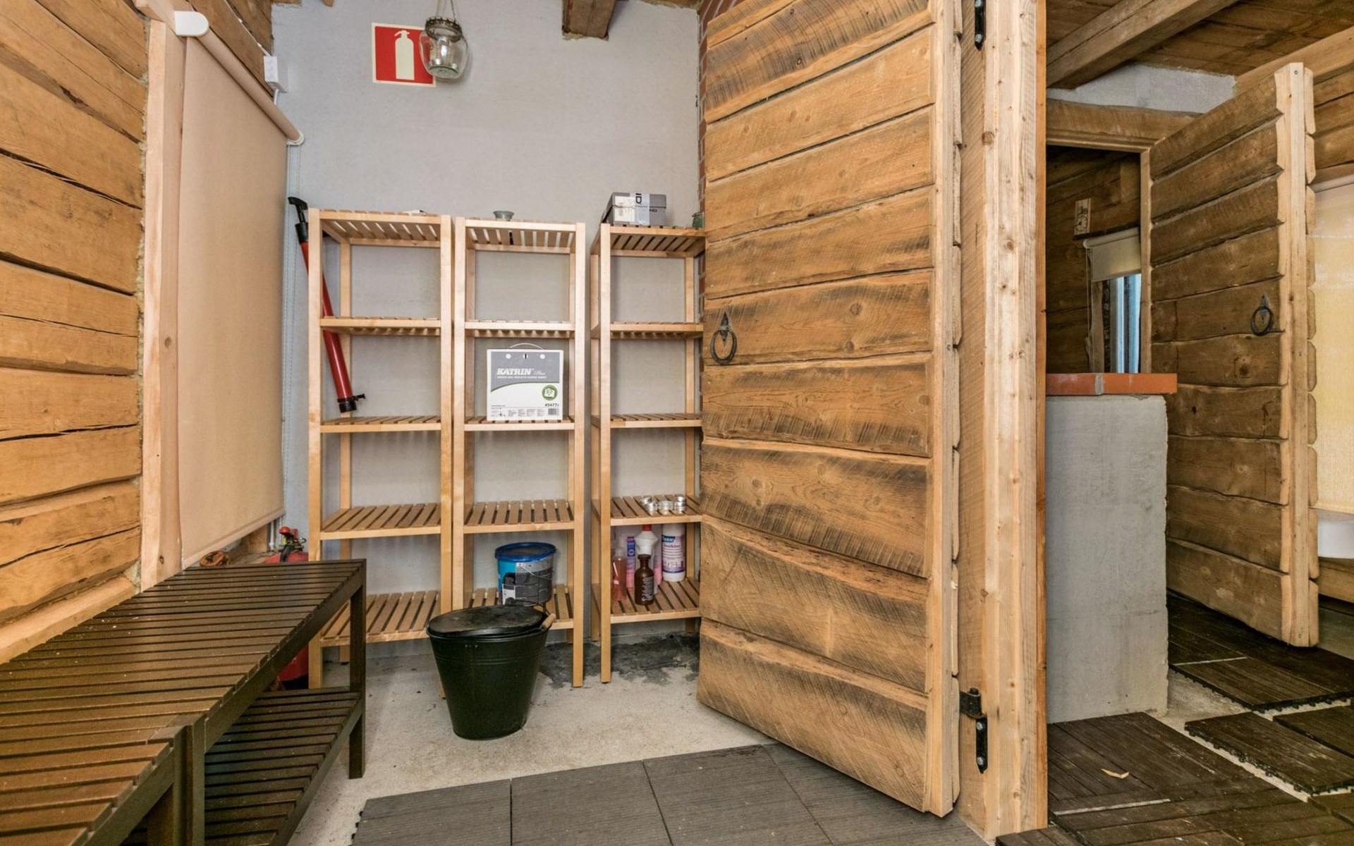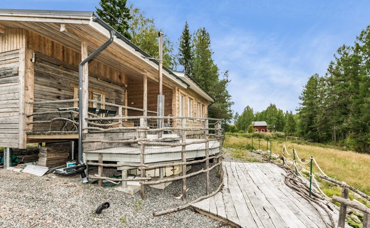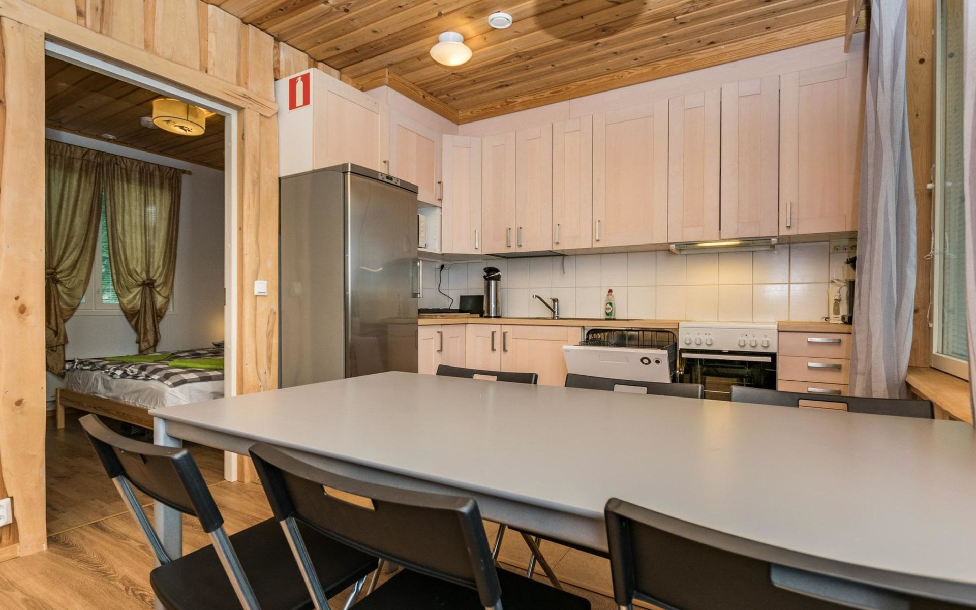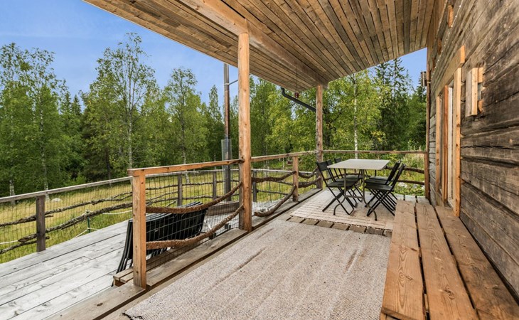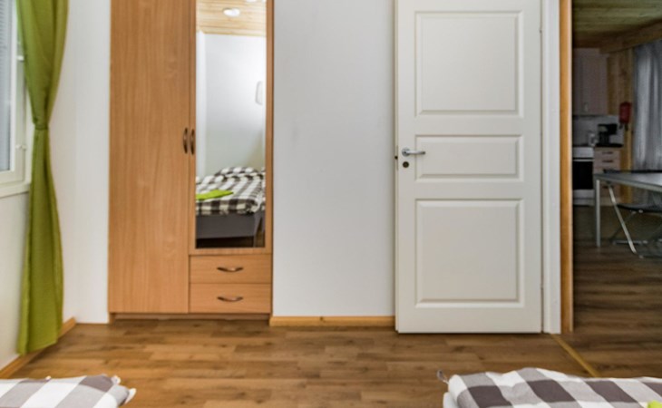 Log panel faced cabin 2012, living room/kitchen, a living room with heat reserving fireplace, bedroom 1 double bed, bedroom 2 two beds, WC with shower. Sauna, washroom and a separate dressing room with own entrance.