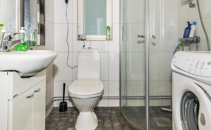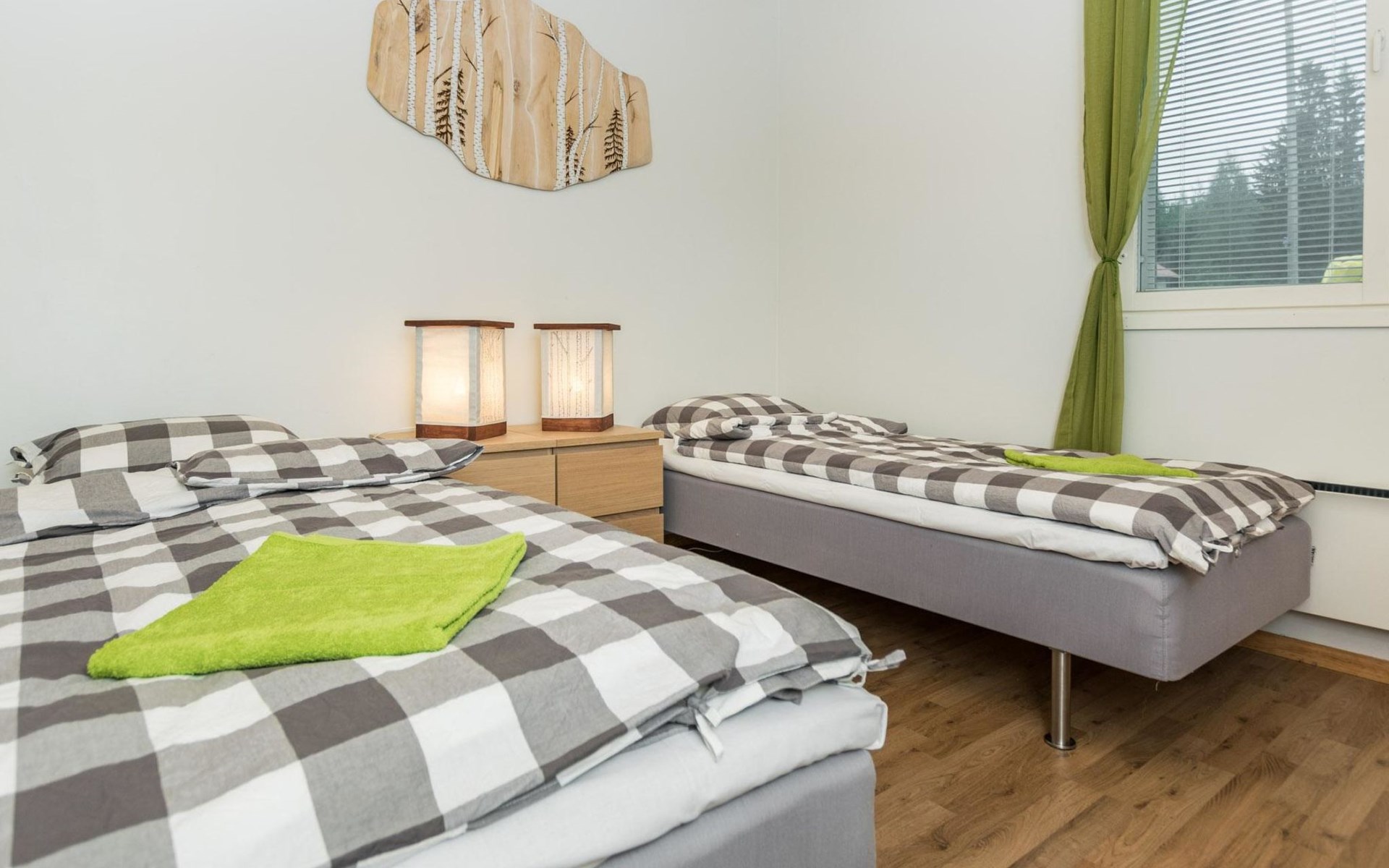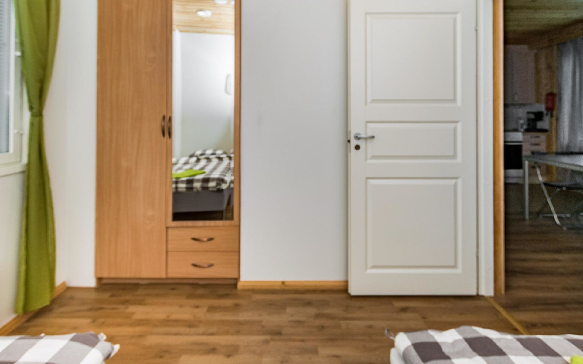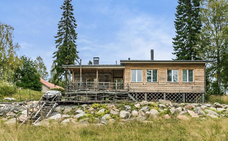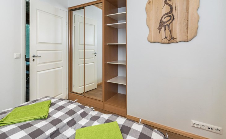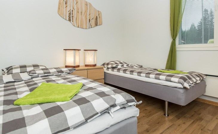 Log panel faced cabin 2012, living room/kitchen, a living room with heat reserving fireplace, bedroom 1 double bed, bedroom 2 two beds, WC with shower. Sauna, washroom and a separate dressing room with own entrance.