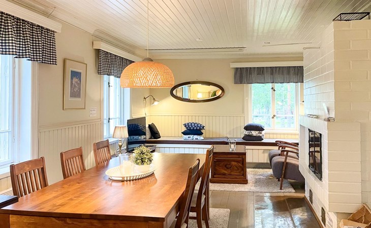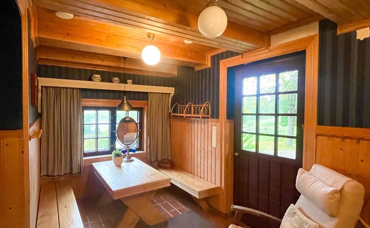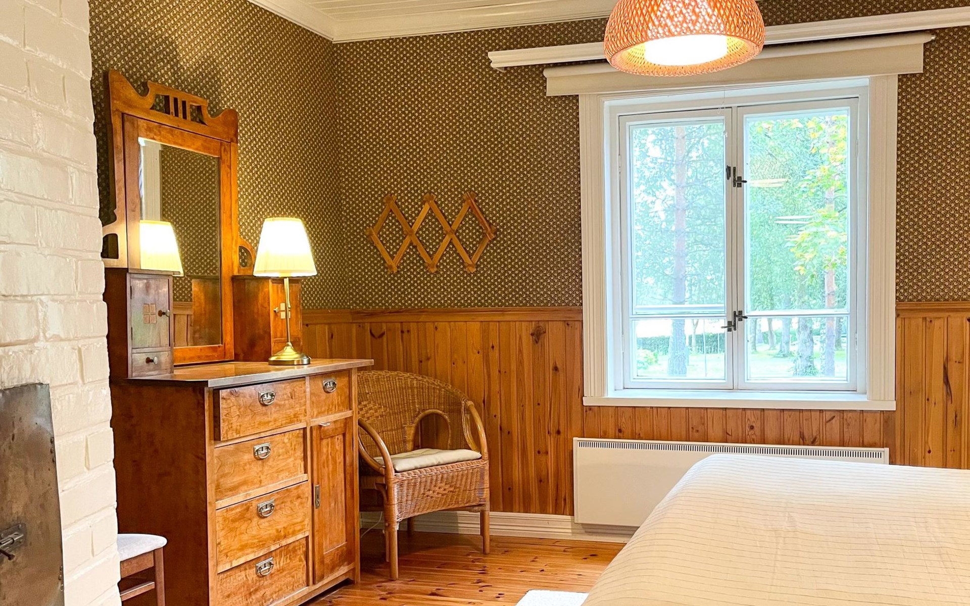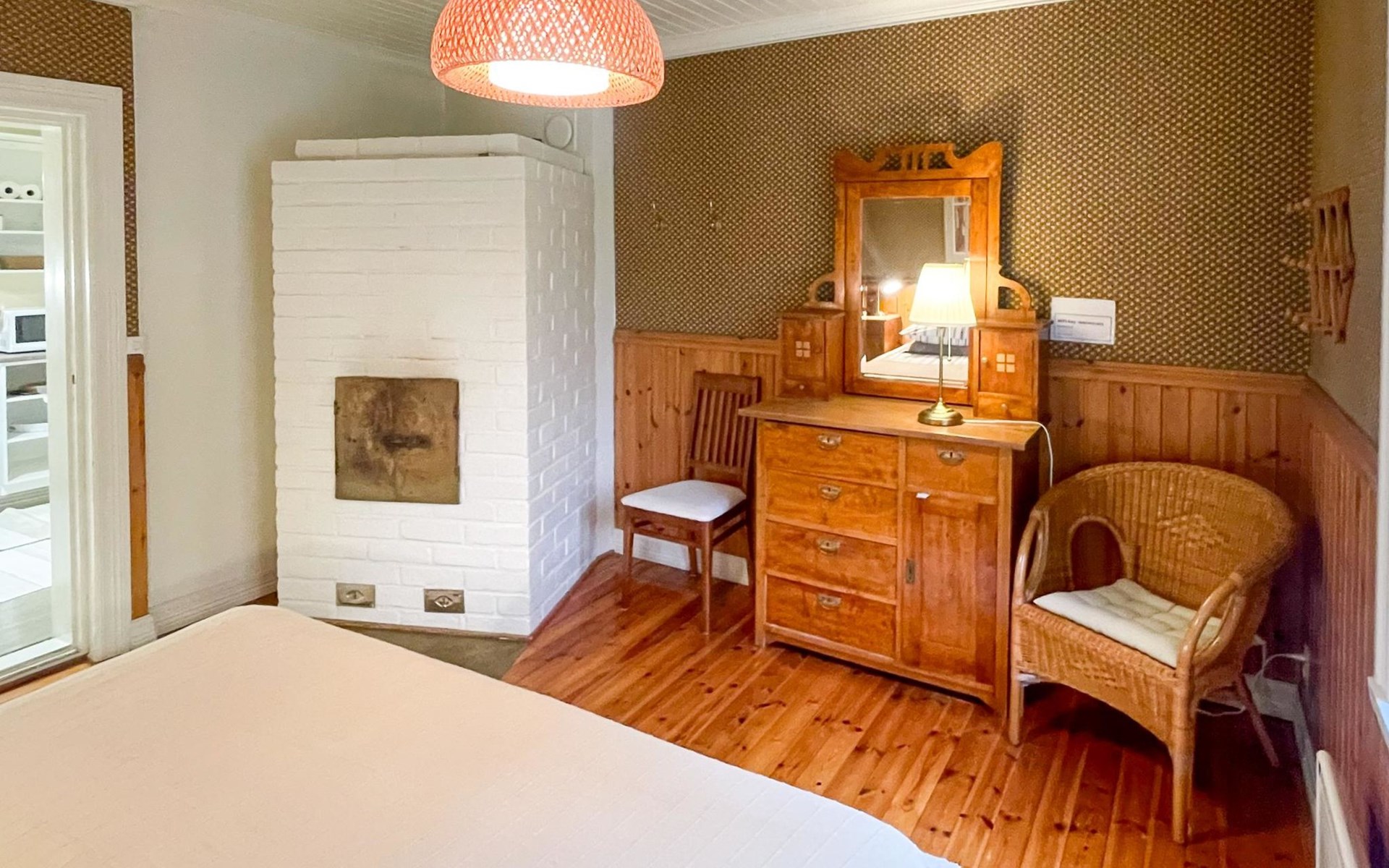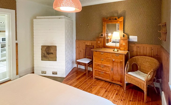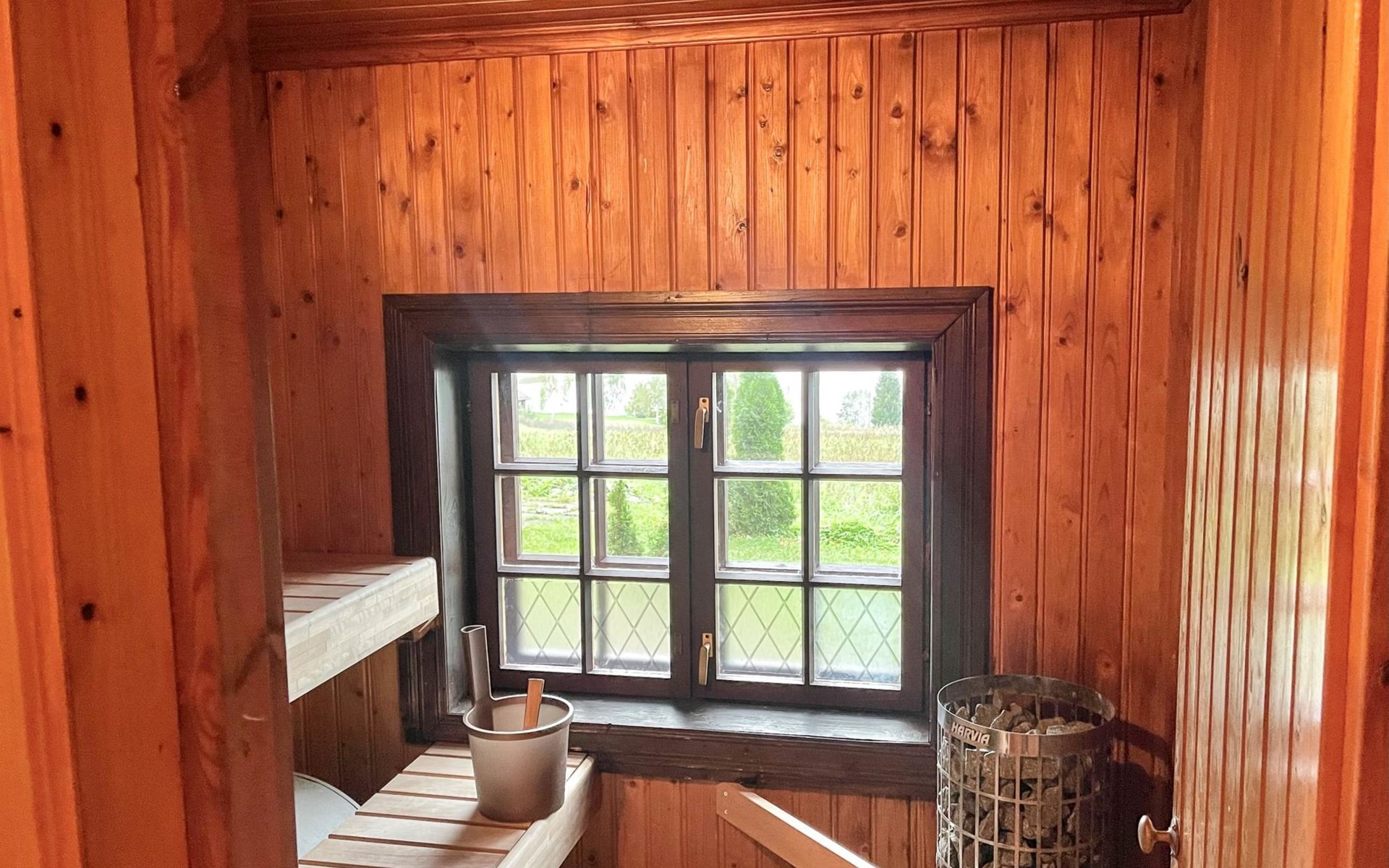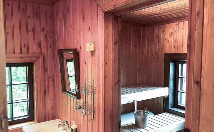 High standard former stewards house near owner's manor, renovated 1978, kitchen, bedroom with 2 beds, living room with 2 extra beds, bathroom with toilet and shower. Neighbour in the same building (431) with private entrance and yard. Own separate sauna 10 m (electric stove), washroom with shower, dressing room. Nice view to the lake!