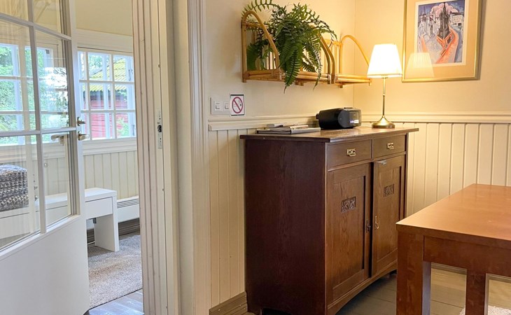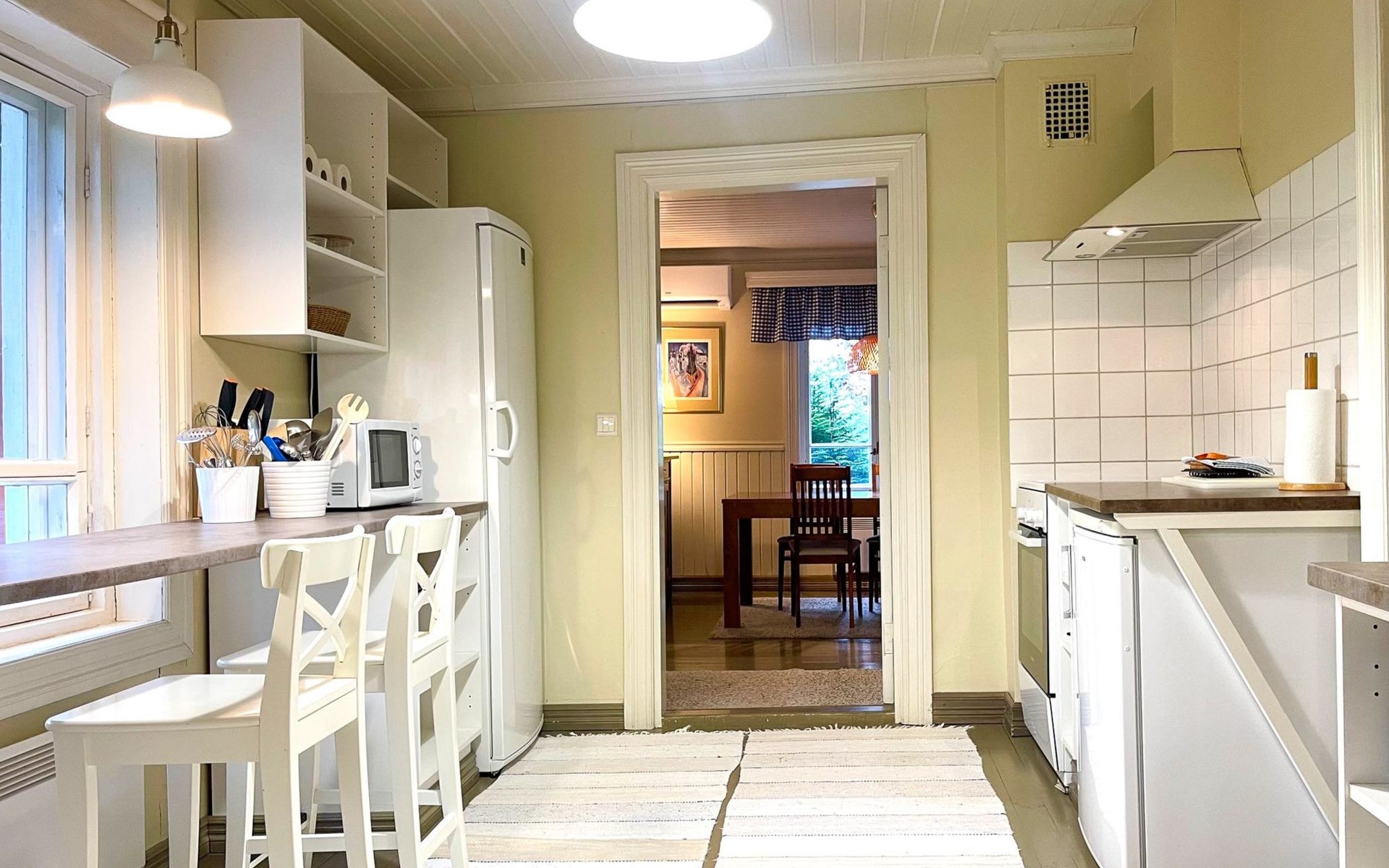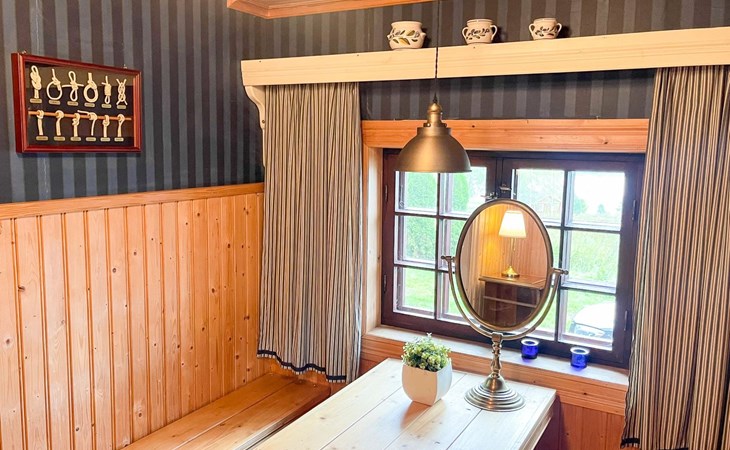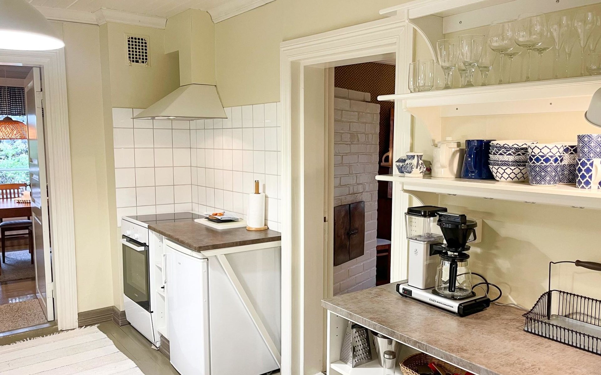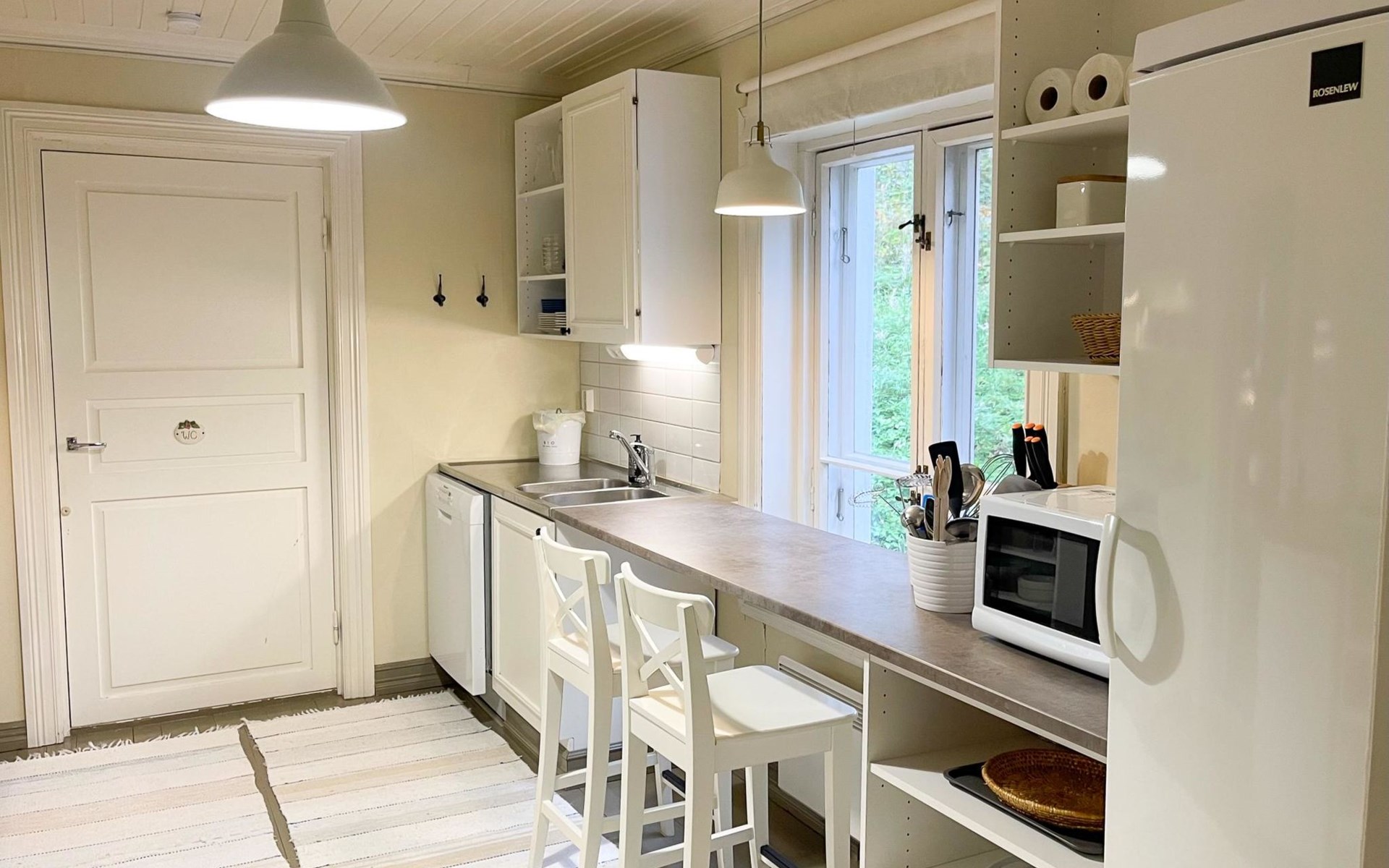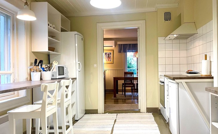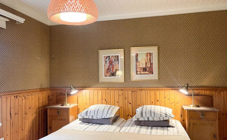 High standard former stewards house near owner's manor, renovated 1978, kitchen, bedroom with 2 beds, living room with 2 extra beds, bathroom with toilet and shower. Neighbour in the same building (431) with private entrance and yard. Own separate sauna 10 m (electric stove), washroom with shower, dressing room. Nice view to the lake!