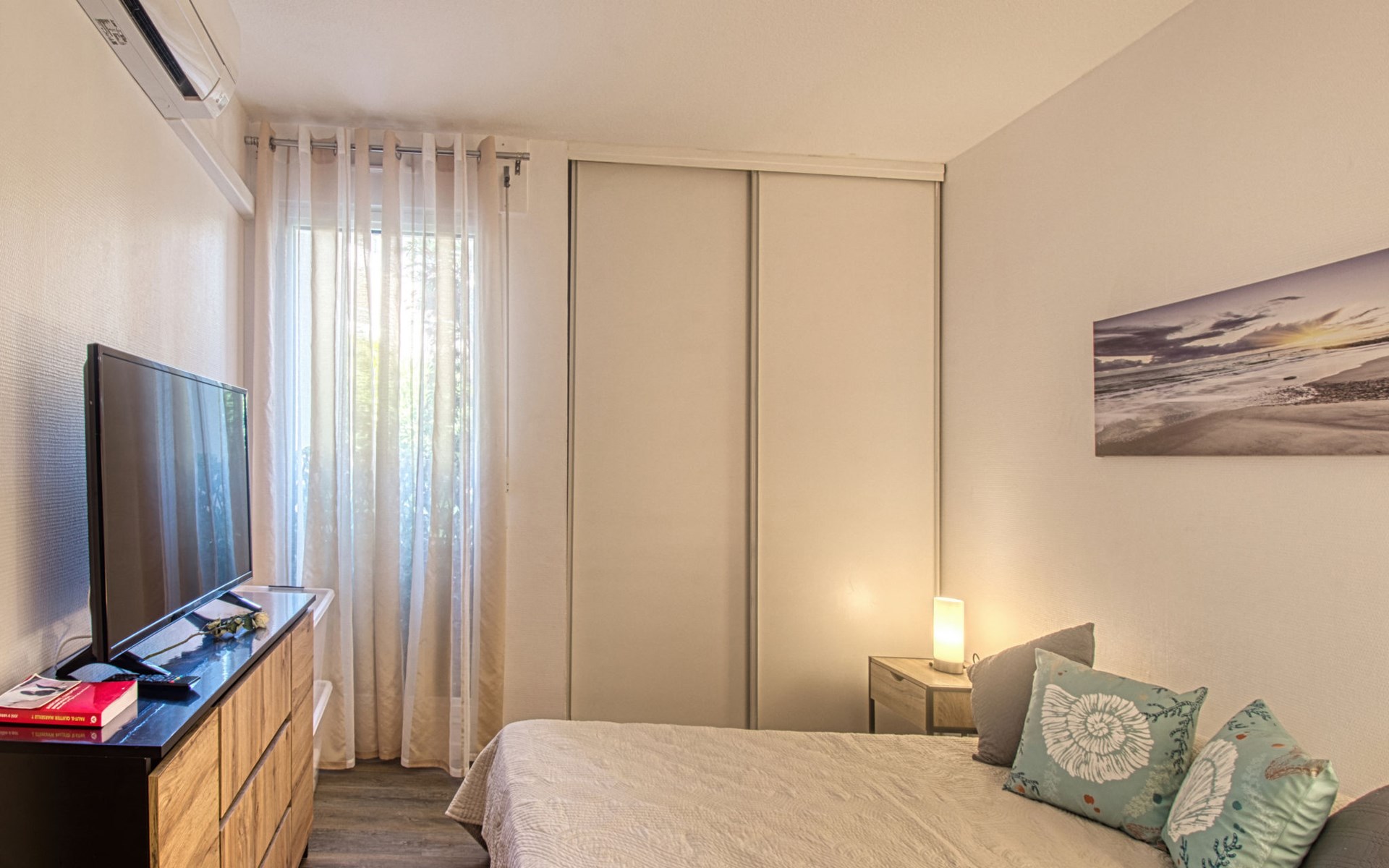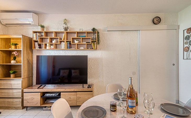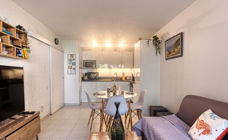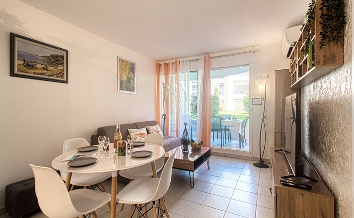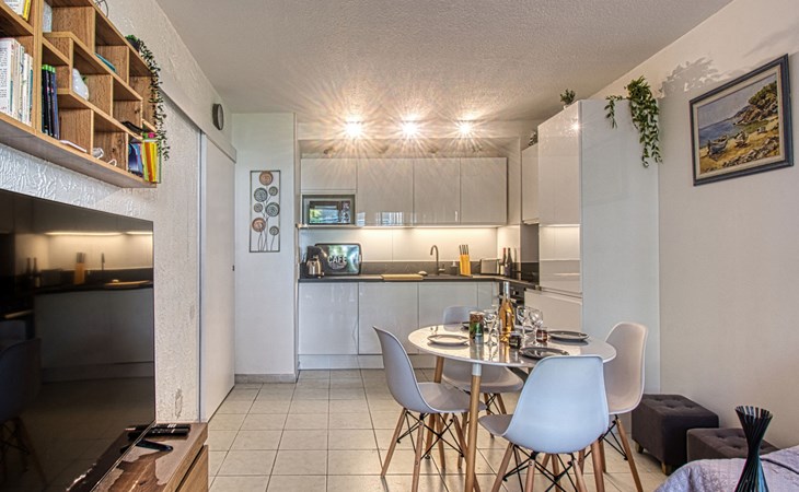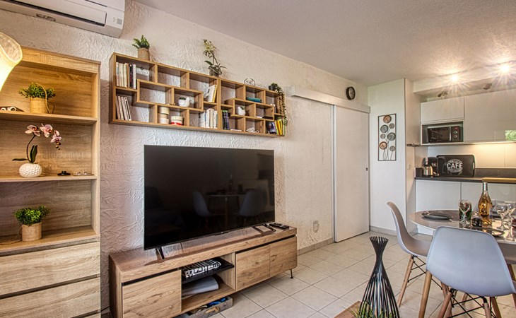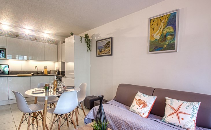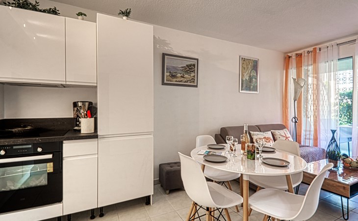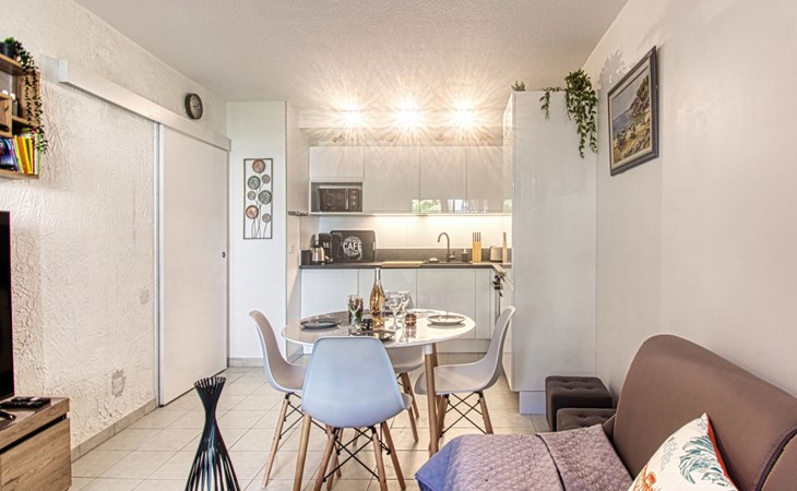 Port Fréjus: Residence "Le Cesarée". 200 m from the sea, 300 m from the beach. For shared use: swimming pool angular (10 x 20 m, depth 110 - 180 cm, seasonal availability: 15.May. - 15.Oct.) with internal staircase. Public parking on the road. Shop 500 m, supermarket 1 km, restaurant 500 m, bus stop "Fréjus Port OUEST" 60 m, railway station "saint-Raphaël Valescure" 2 km, sandy beach 500 m, diving center 250 m. Sports harbour 50 m, golf course (18 hole) 7 km. Nearby attractions: Base Nature 500 m, Cannes 40 km, Saint-Tropez 40 km, Nice 70 km, Gorges du verdon 90 km. Well-known lakes can easily be reached: Sainte-Croix 90 km. Hiking paths: Estérel 8 km. The keys‘ handover takes place by the agency Interhome in Port Fréjus.