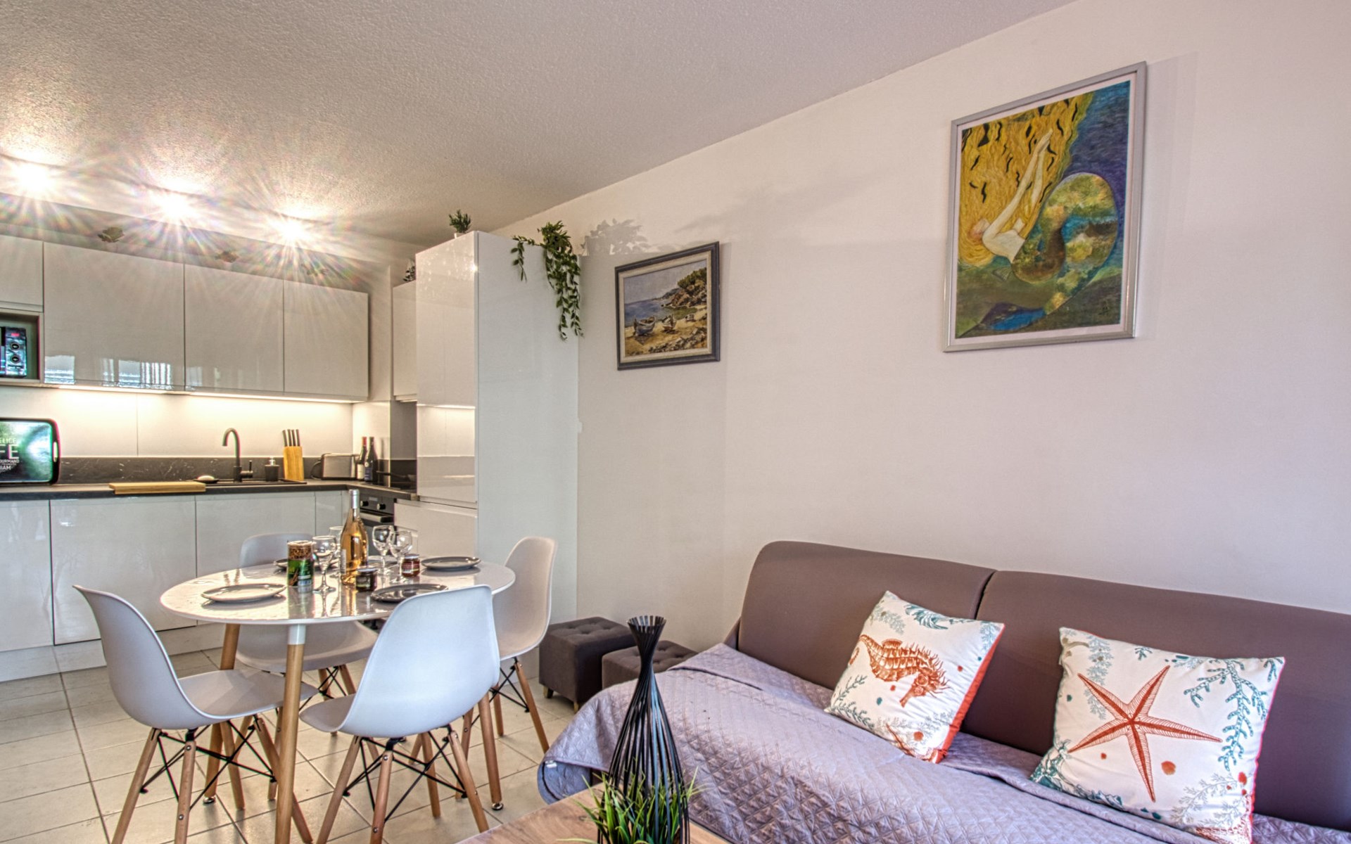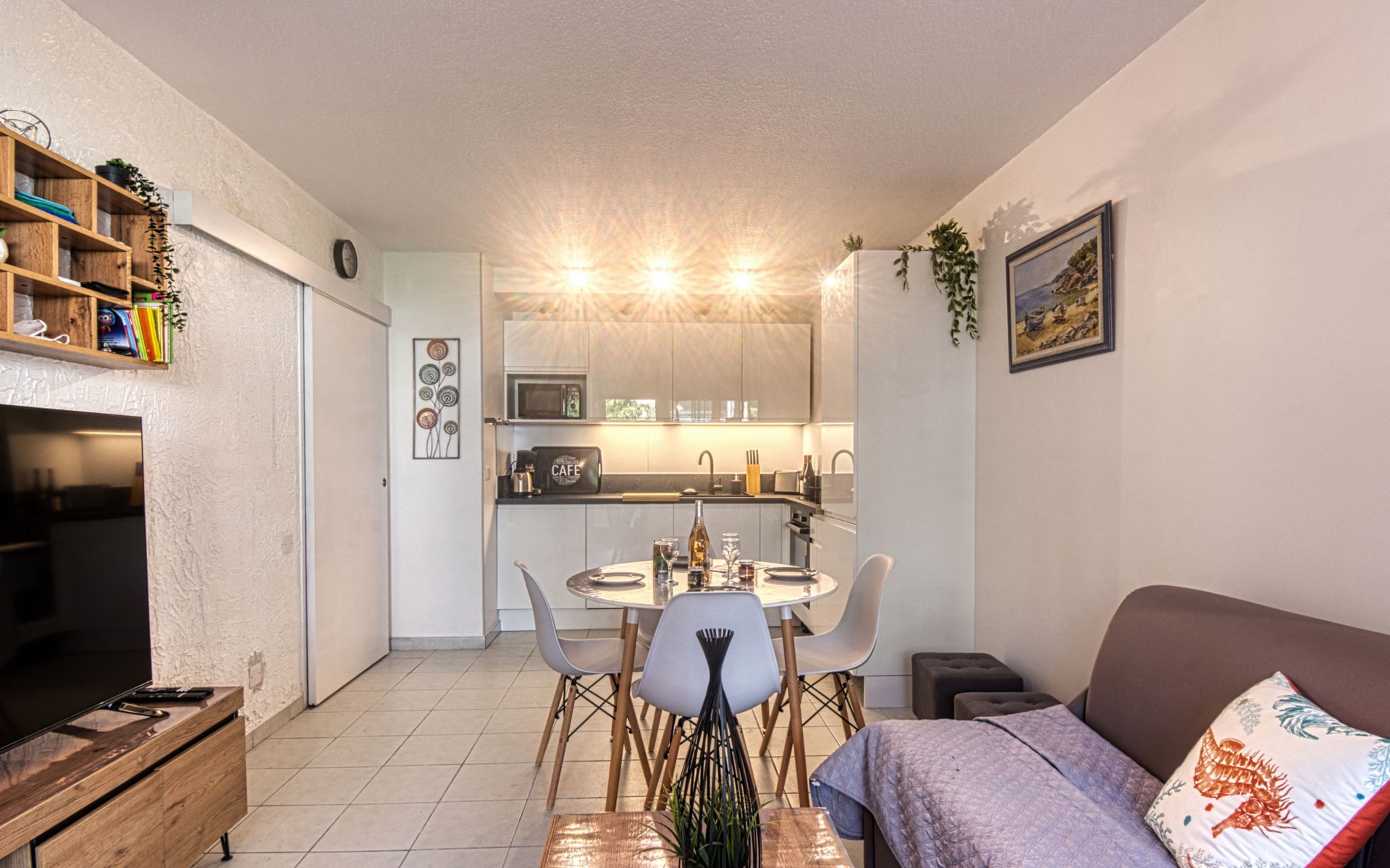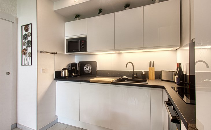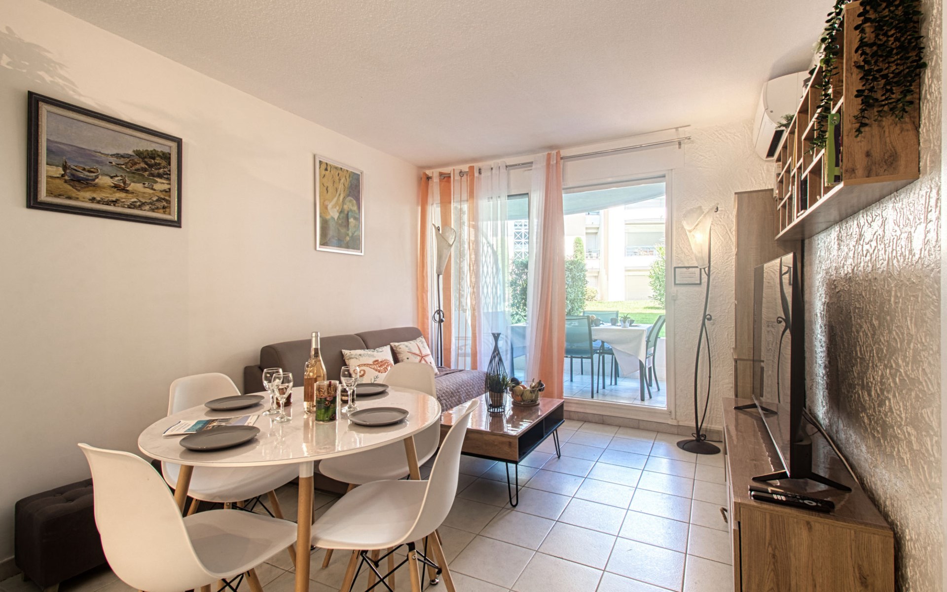 Port Fréjus: Residence "Le Cesarée". 200 m from the sea, 300 m from the beach. For shared use: swimming pool angular (10 x 20 m, depth 110 - 180 cm, seasonal availability: 15.May. - 15.Oct.) with internal staircase. Public parking on the road. Shop 500 m, supermarket 1 km, restaurant 500 m, bus stop "Fréjus Port OUEST" 60 m, railway station "saint-Raphaël Valescure" 2 km, sandy beach 500 m, diving center 250 m. Sports harbour 50 m, golf course (18 hole) 7 km. Nearby attractions: Base Nature 500 m, Cannes 40 km, Saint-Tropez 40 km, Nice 70 km, Gorges du verdon 90 km. Well-known lakes can easily be reached: Sainte-Croix 90 km. Hiking paths: Estérel 8 km. The keys‘ handover takes place by the agency Interhome in Port Fréjus.