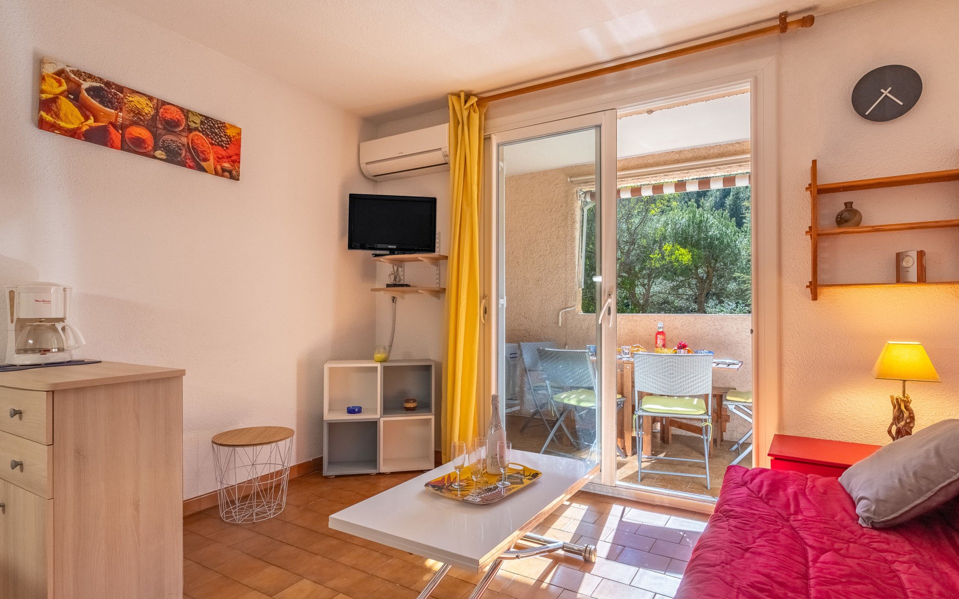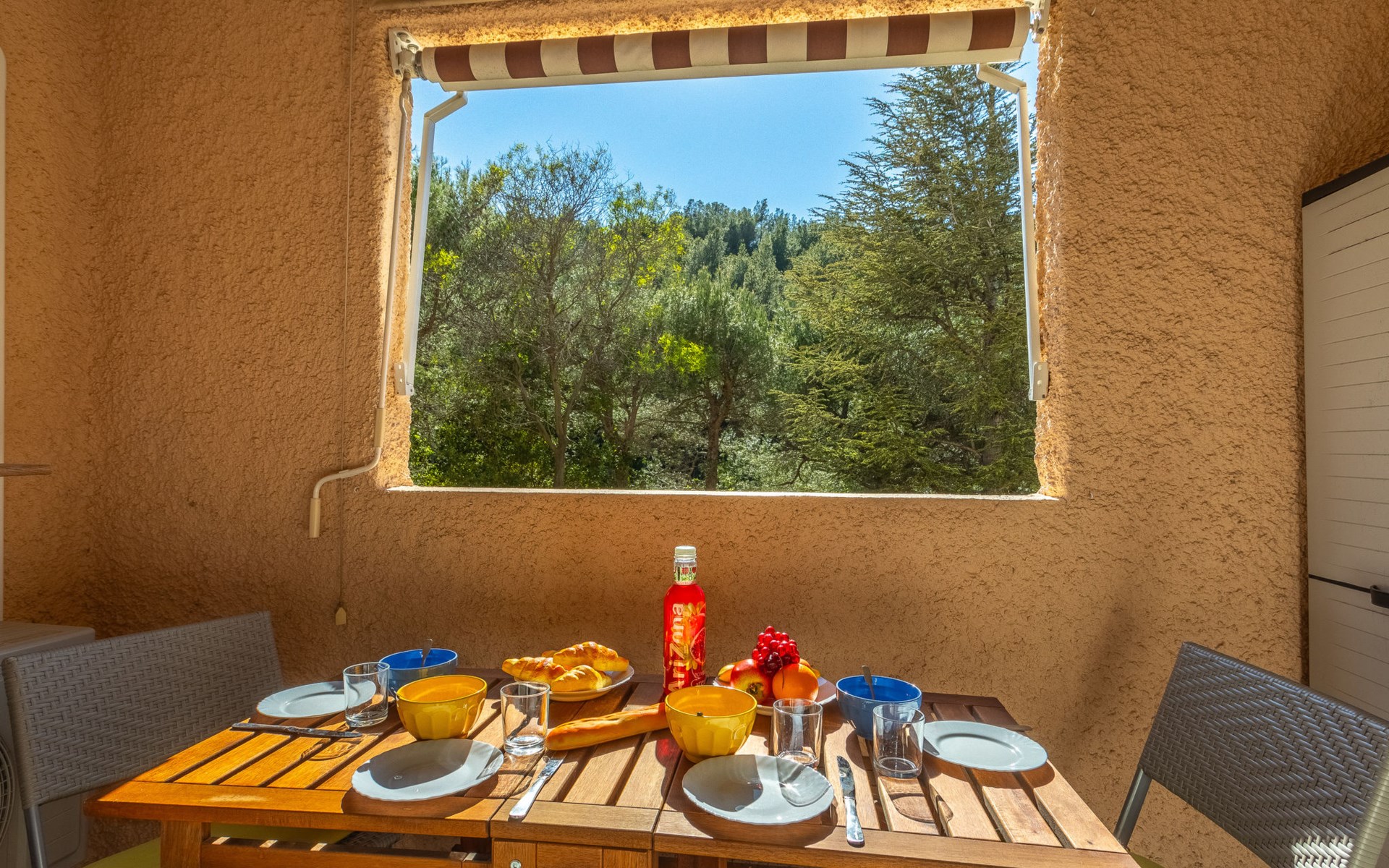 Small residence "Hauts de la Madrague", surrounded by trees. In the resort 2 km from the centre of Saint Cyr, in a quiet, sunny position on top of a hill, 400 m from the sea. Public parking 100 m extra. Grocery 200 m, restaurant 300 m, bus stop "Le Viguier" 2.2 km, railway station "Saint Cyr les Lecques-La Cadière" 3.3 km, sandy beach, shingle beach 400 m. Sports harbour 400 m, golf course (18 hole) 4 km. Nearby attractions: Aqualand 3 km. Hiking paths: Sainte Baume, Sainte Victoire, Calanques Port-Cros, Porquerolles, Ile verte, Embiez, Figuerolles, Cassis. Please note: there are many steps in the residence.