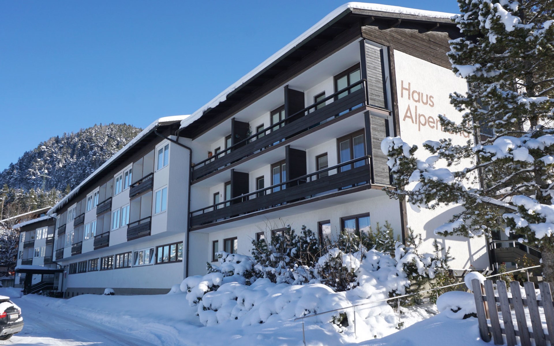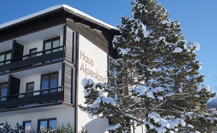 Seefeld: Child friendly, cosy apartment block "Alpenland". 600 m from the centre, in a quiet, sunny position, 1.2 km from the lake, 400 m from the skiing area. For shared use: large, well-kept garden, lawn for sunbathing, indoor pool heated (13 x 6 m). Children's playground. In the house: lounge, sauna, lift, storage room for bicycles, storage room for skis, central heating system. Motor access to the house. Parking at the house. Grocery 600 m, restaurant 100 m, bakery 400 m, pedestrian zone 600 m, 5 minute walk to the centre, bus stop 30 m, railway station 600 m, outdoor swimming pool 1 km, indoor swimming pool 1 km, public bathing area 1.5 km, bathing lake "Wildsee" 1.2 km. Golf course (18 hole) 1.5 km, indoor tennis centre 1 km, sports centre 1 km, gondola lift 400 m, skisport facilities, ski bus stop 30 m, ski school, children's ski school. Well-known ski regions can easily be reached: Rosshütte 400 m, Geigenbühel 400 m, Gschwandkopf 2 km. Please note: ski bus (free of charge). Additional accommodations can be booked. WLAN only in the entrance area, in the hall and in the lounge (next to the indoor pool) available. Attention: From ca mid-April - ca end-May and in November is due to revision no indoor pool / sauna area available.