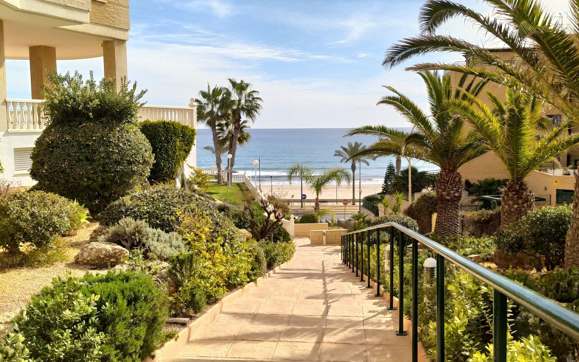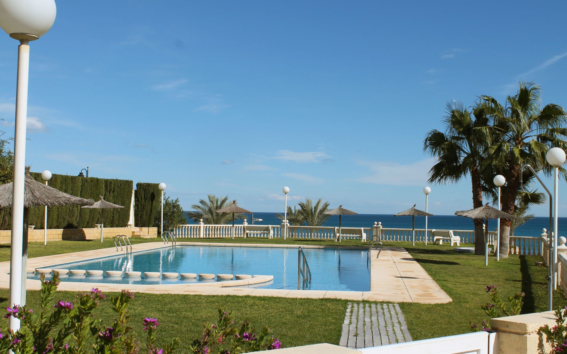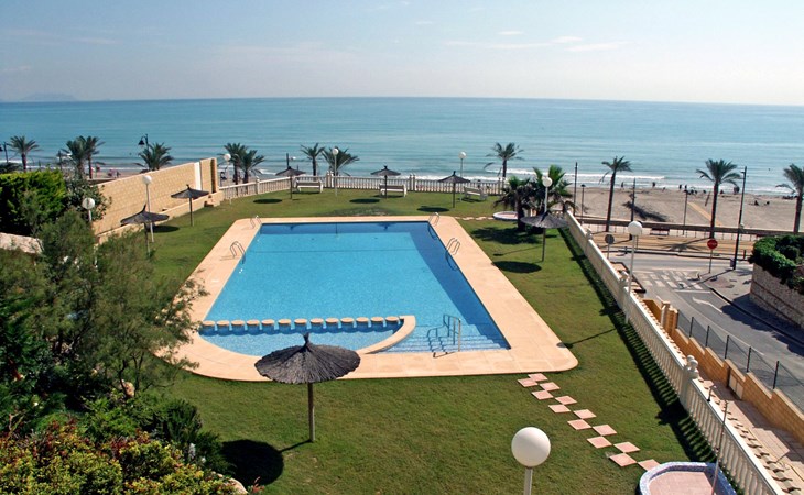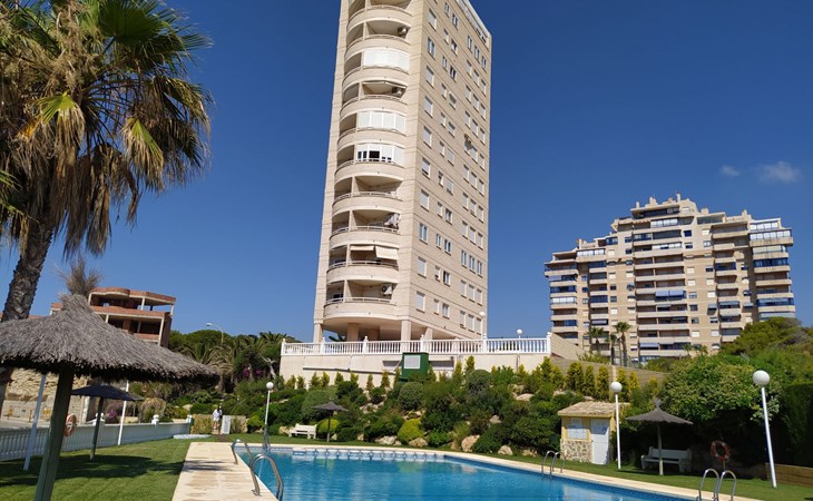 Muchavista 2 km from El Campello: Very large, comfortable apartment block "Urbaeuropa", 10 storeys. On the outskirts, 2 km from the centre of El Campello, in a quiet, sunny position, 100 m from the sea, 100 m from the beach. For shared use: property (fenced), terraced garden with lawn and plants, swimming pool angular (5 x 15 m, depth 30 - 190 cm, seasonal availability: 01.Jan. - 31.Dec.) with internal staircase. Children's pool, outdoor shower, tennis (extra), children's playground (slide, swing). In the house: lift. Roofed, parking. Supermarket 2 km, shopping centre 1 km, restaurant 200 m, bar 200 m, railway station "Les Llances" 700 m, sandy beach "Muchavists" 100 m. Sports harbour 4 km, golf course (18 hole) 3 km. Nearby attractions: Aqualandia Benidorm 30 km, Mundomar Benidorm 30 km, Terra Mitica Benidorm 30 km, Altea 40 km, Alicante 14 km, Aeropuerto Alicnte 24 m. Please note: baby equipment on request. The owner does not accept any youth groups. The keys‘ handover takes place by the agency Interhome in Benidorm, 37 km. Neighbourhood highly sensitive to noise. Quietness and good behaviour expected.