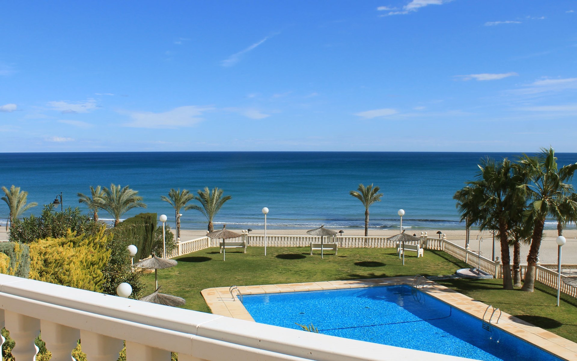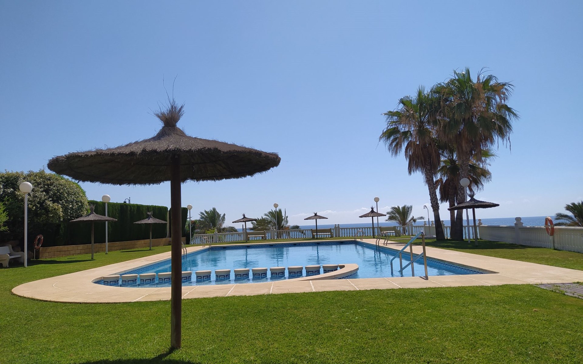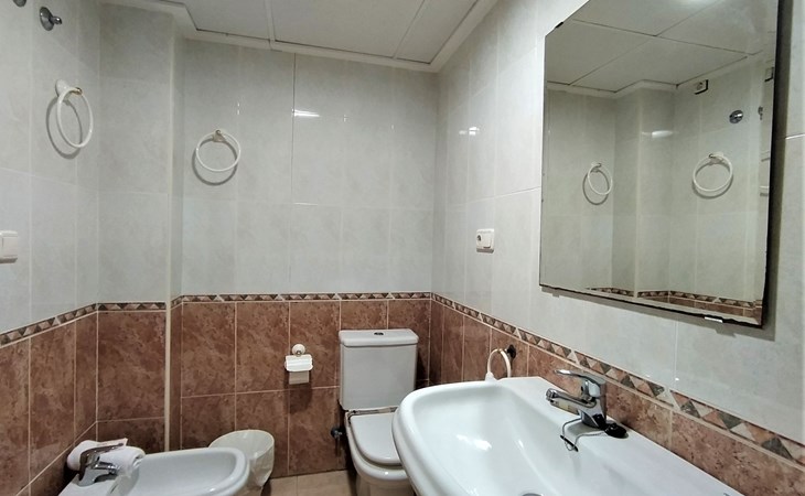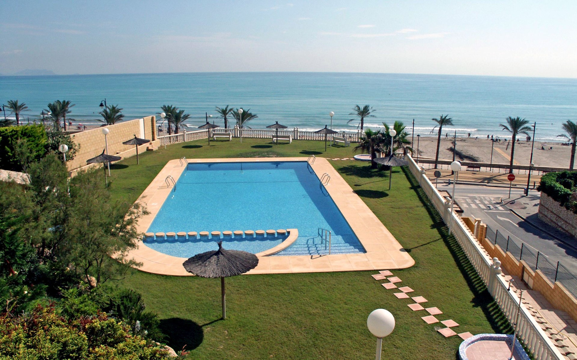 Muchavista 2 km from El Campello: Very large, comfortable apartment block "Urbaeuropa", 10 storeys. On the outskirts, 2 km from the centre of El Campello, in a quiet, sunny position, 100 m from the sea, 100 m from the beach. For shared use: property (fenced), terraced garden with lawn and plants, swimming pool angular (5 x 15 m, depth 30 - 190 cm, seasonal availability: 01.Jan. - 31.Dec.) with internal staircase. Children's pool, outdoor shower, tennis (extra), children's playground (slide, swing). In the house: lift. Roofed, parking. Supermarket 2 km, shopping centre 1 km, restaurant 200 m, bar 200 m, railway station "Les Llances" 700 m, sandy beach "Muchavists" 100 m. Sports harbour 4 km, golf course (18 hole) 3 km. Nearby attractions: Aqualandia Benidorm 30 km, Mundomar Benidorm 30 km, Terra Mitica Benidorm 30 km, Altea 40 km, Alicante 14 km, Aeropuerto Alicnte 24 m. Please note: baby equipment on request. The owner does not accept any youth groups. The keys‘ handover takes place by the agency Interhome in Benidorm, 37 km. Neighbourhood highly sensitive to noise. Quietness and good behaviour expected.