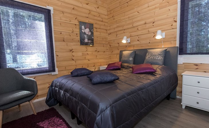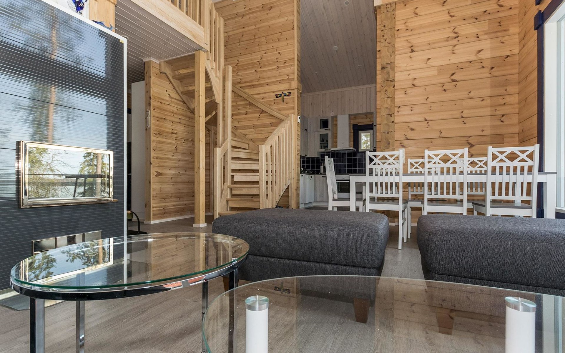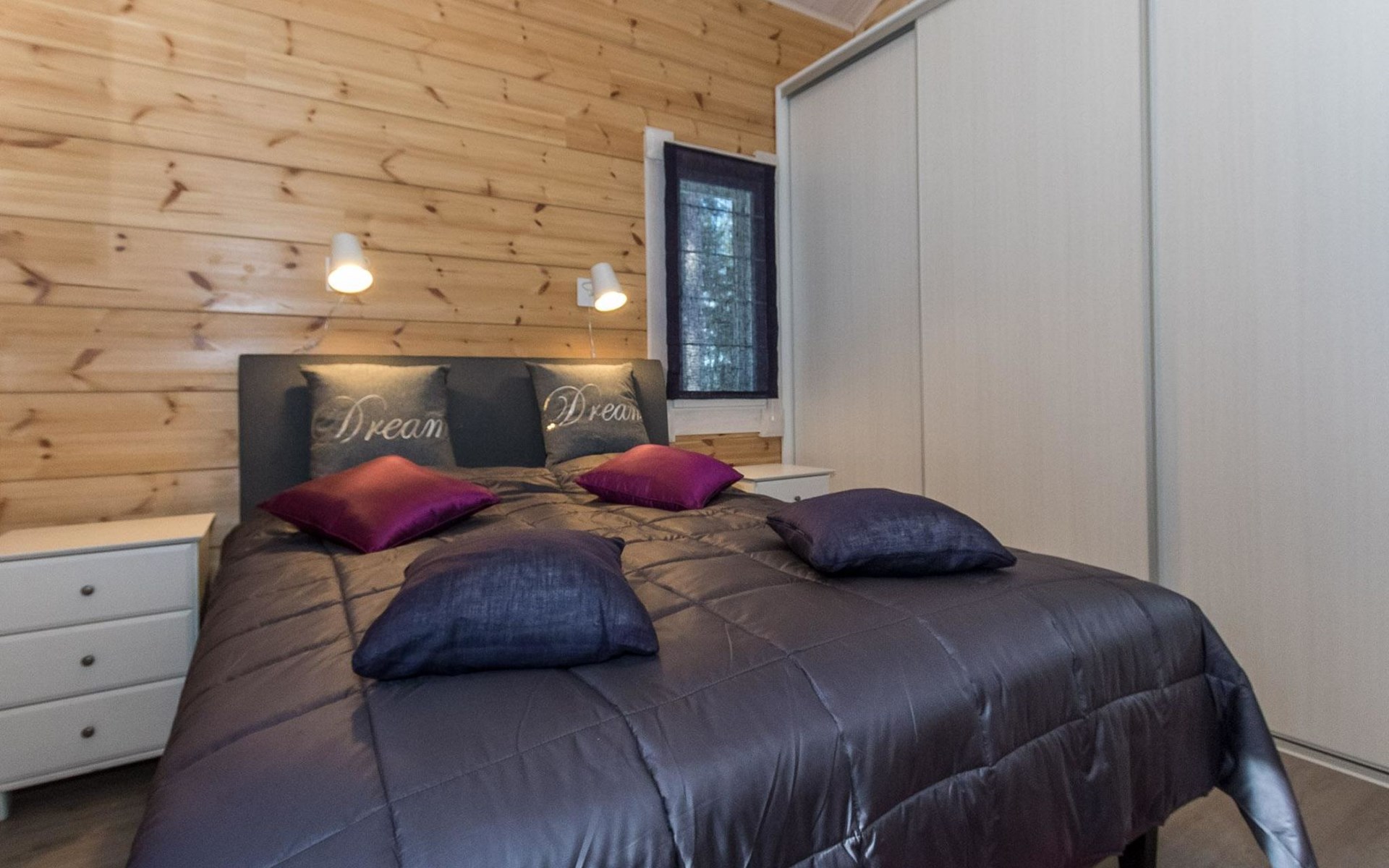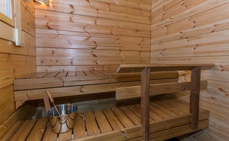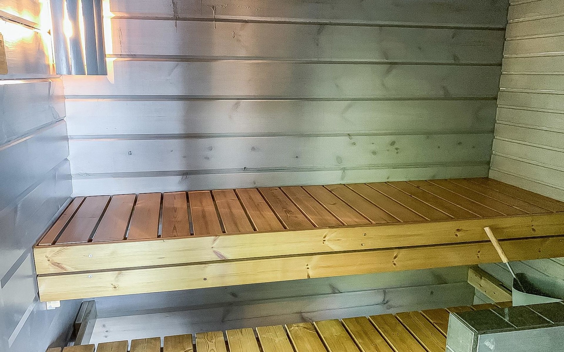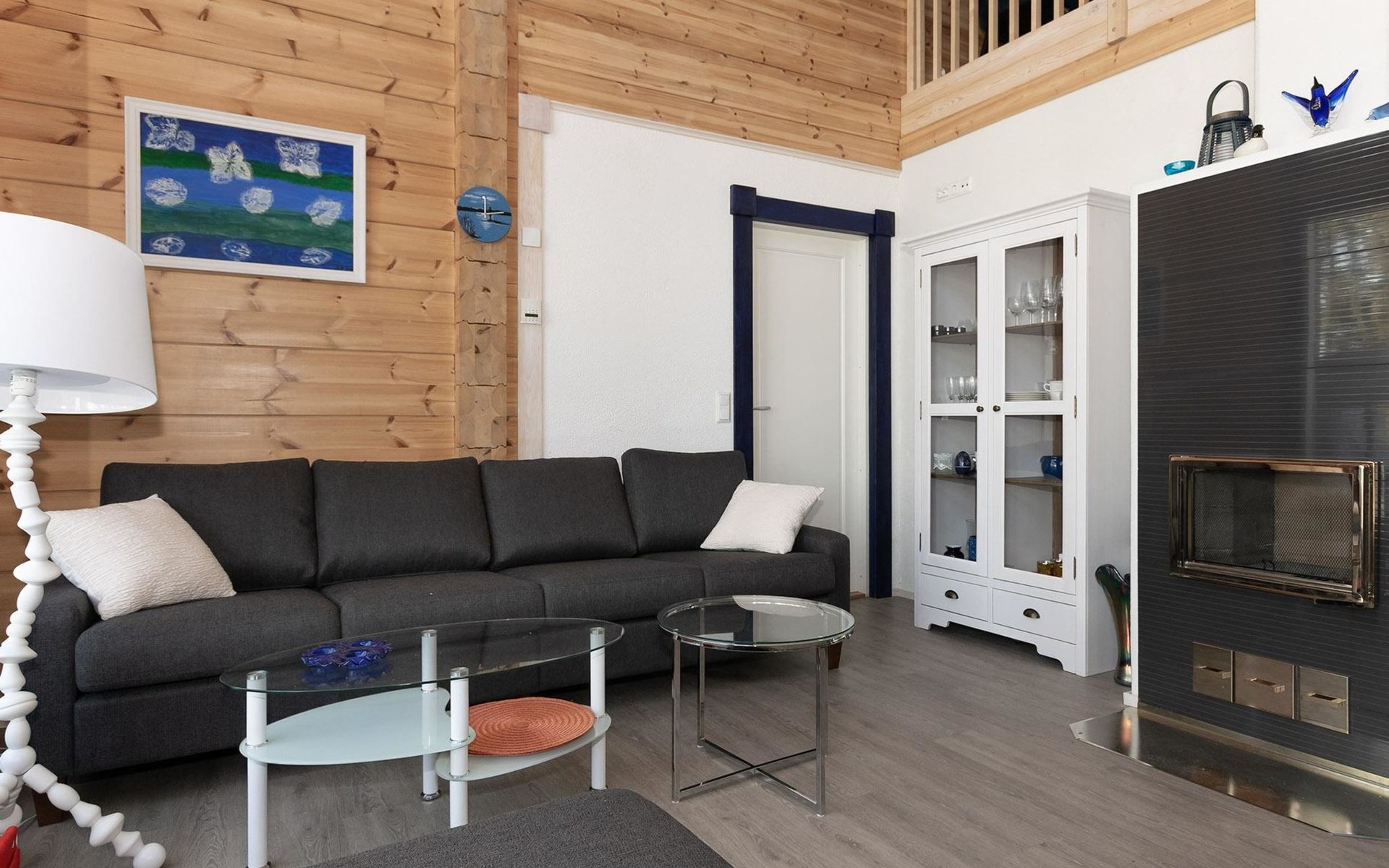 Laminated log cabin 2019, living room, living room/kitchen, bedroom 1: double bed, bedroom 2: two beds, WC, sauna, washroom (electric sauna stove), two beds in the loft, child safety gate at the top of the stairs.