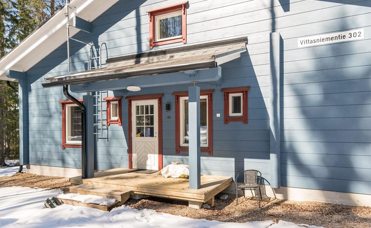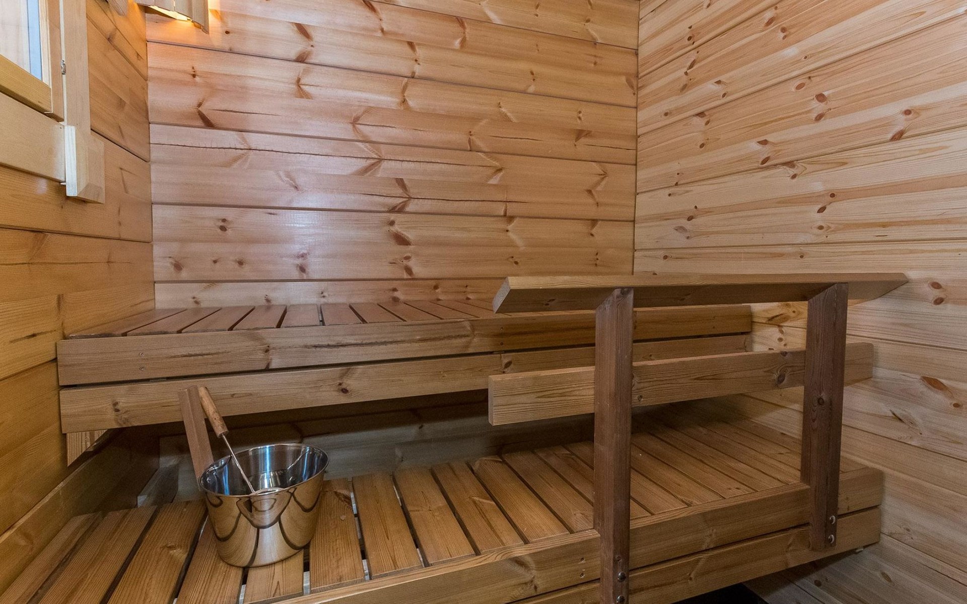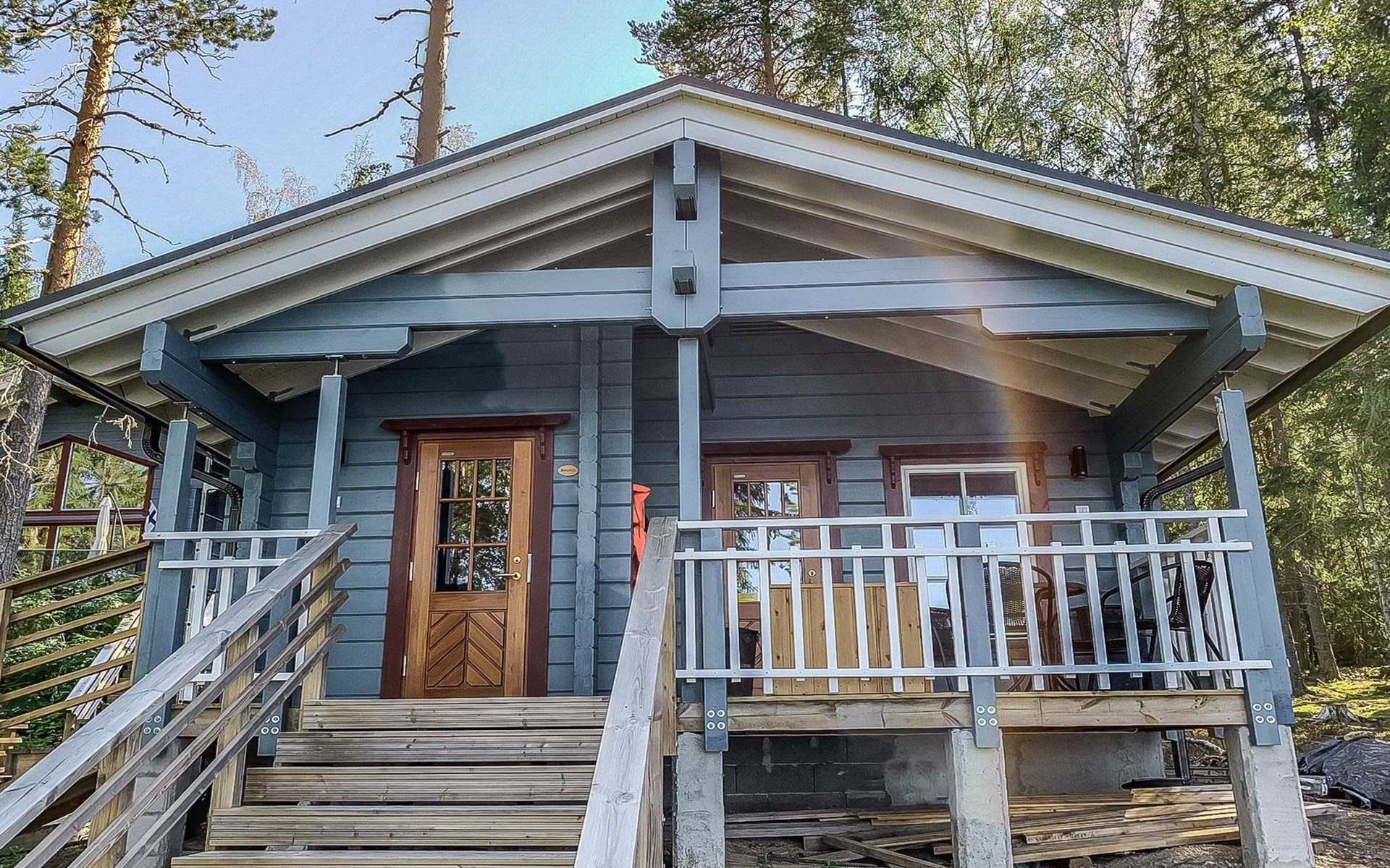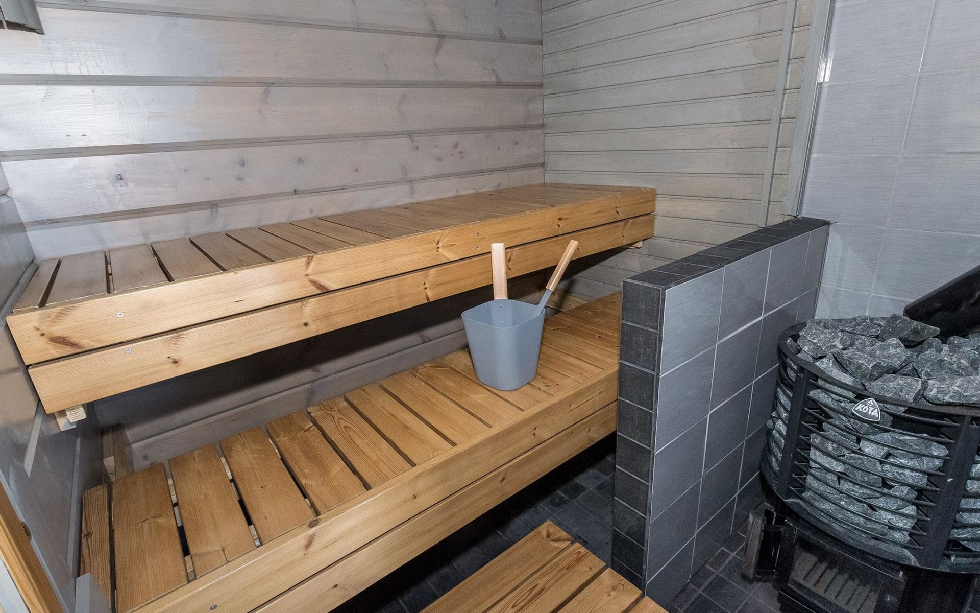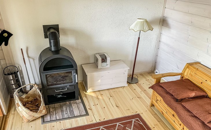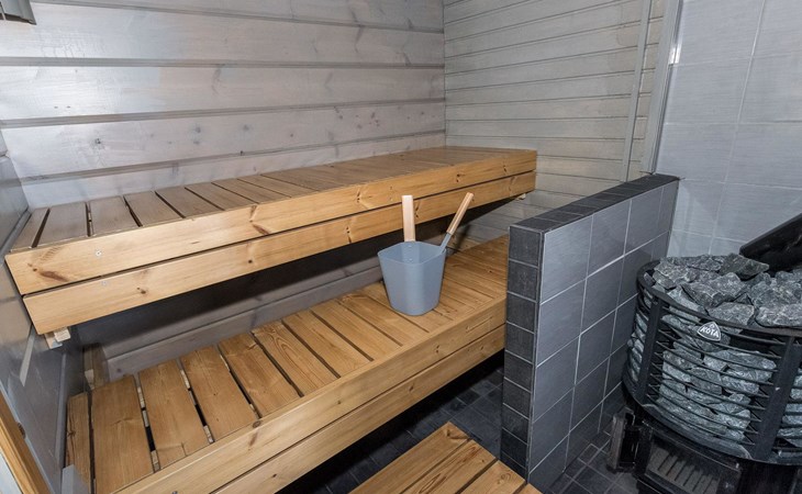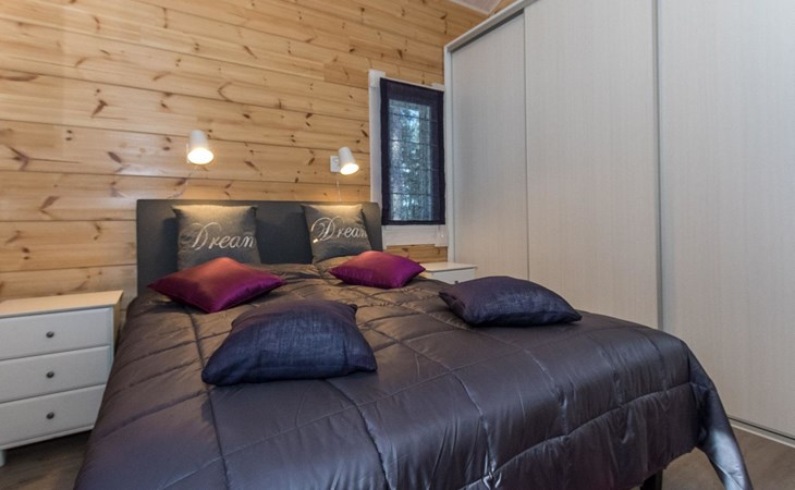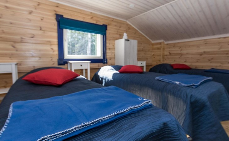 Laminated log cabin 2019, living room, living room/kitchen, bedroom 1: double bed, bedroom 2: two beds, WC, sauna, washroom (electric sauna stove), two beds in the loft, child safety gate at the top of the stairs.