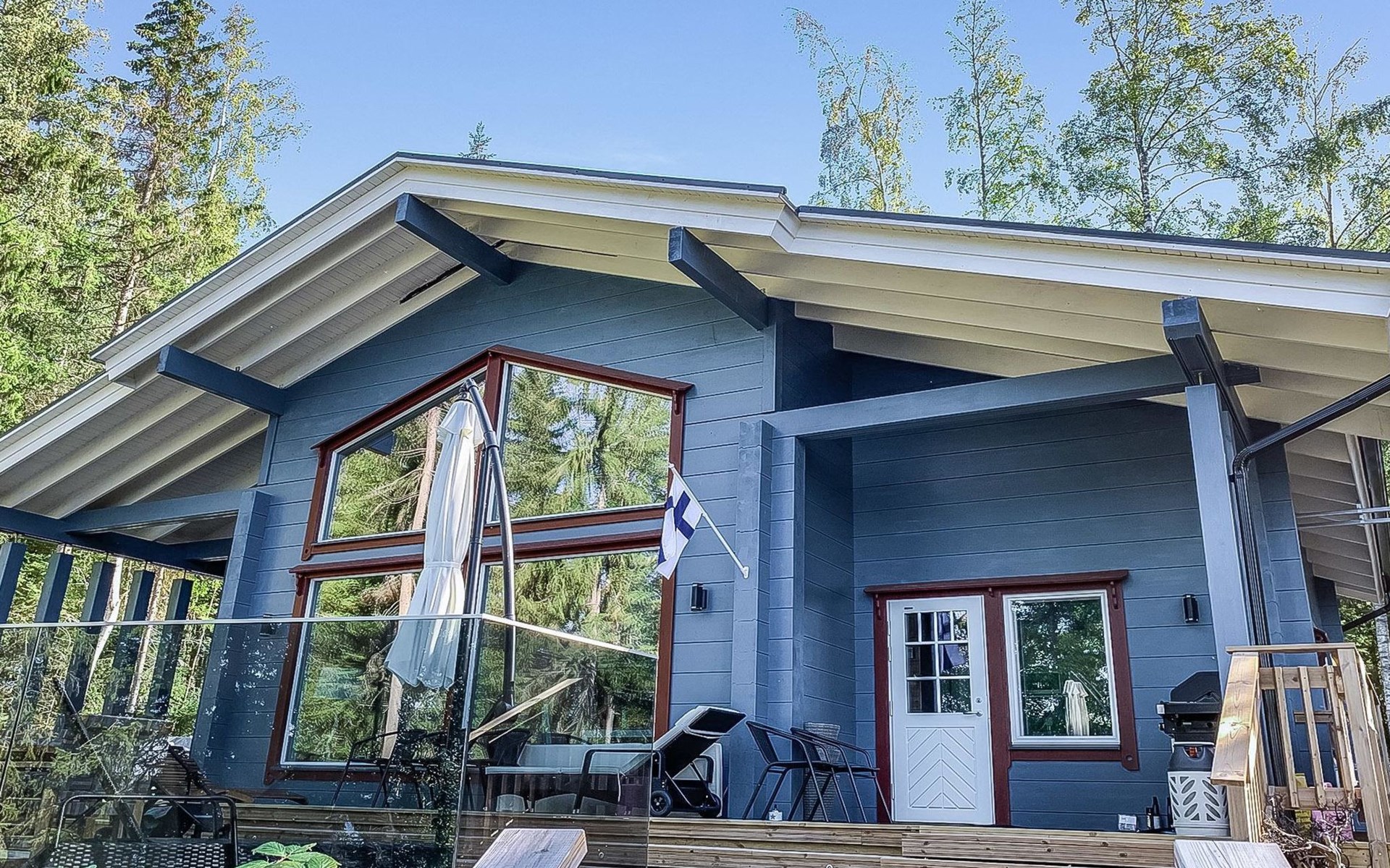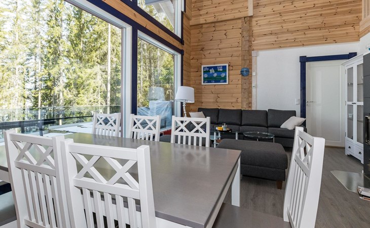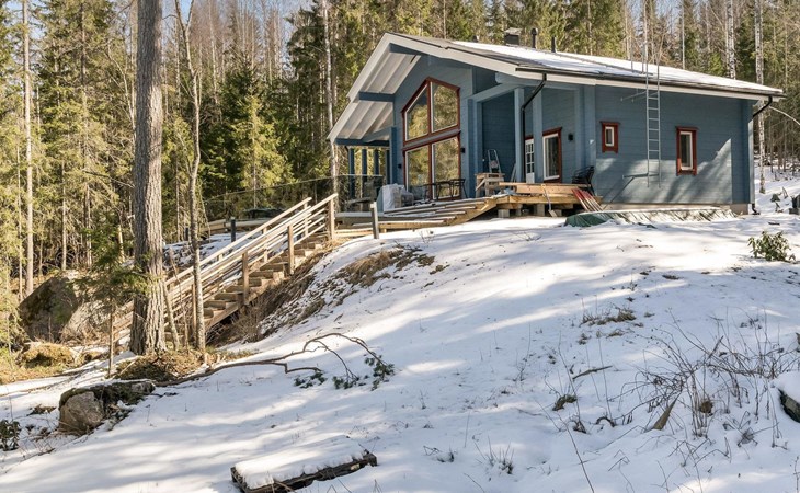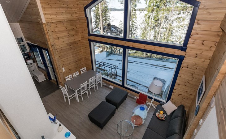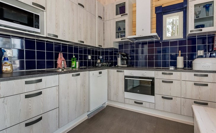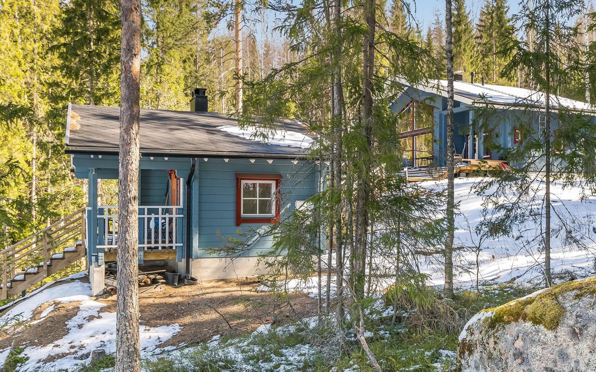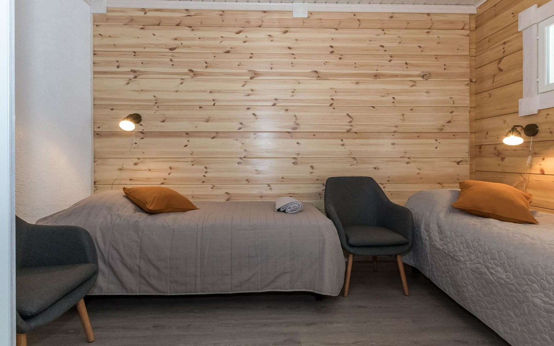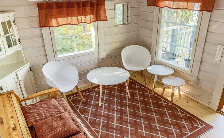 Laminated log cabin 2019, living room, living room/kitchen, bedroom 1: double bed, bedroom 2: two beds, WC, sauna, washroom (electric sauna stove), two beds in the loft, child safety gate at the top of the stairs.
