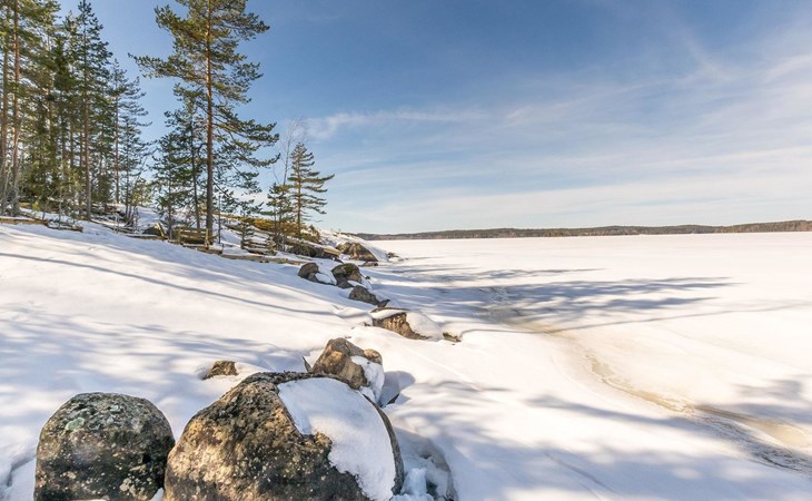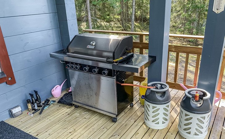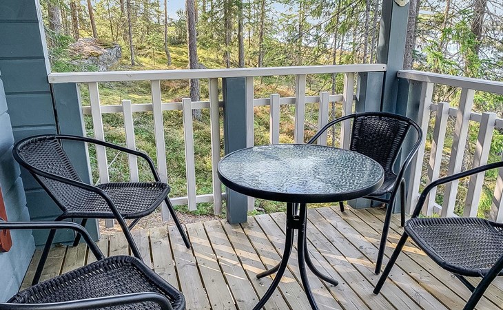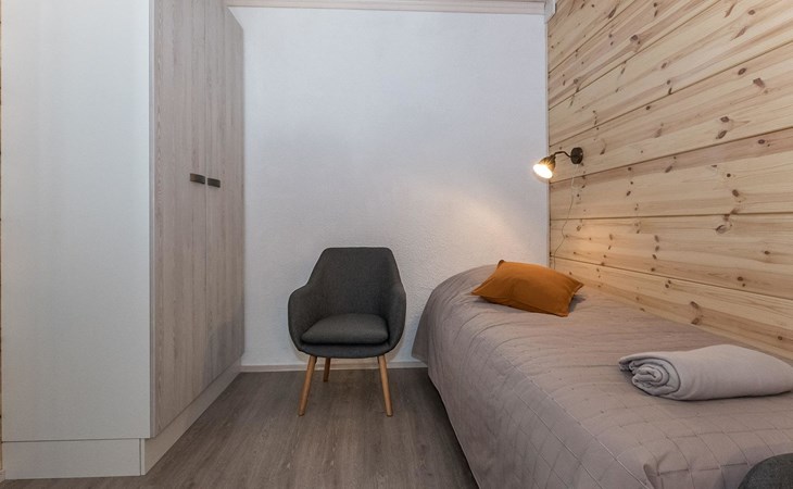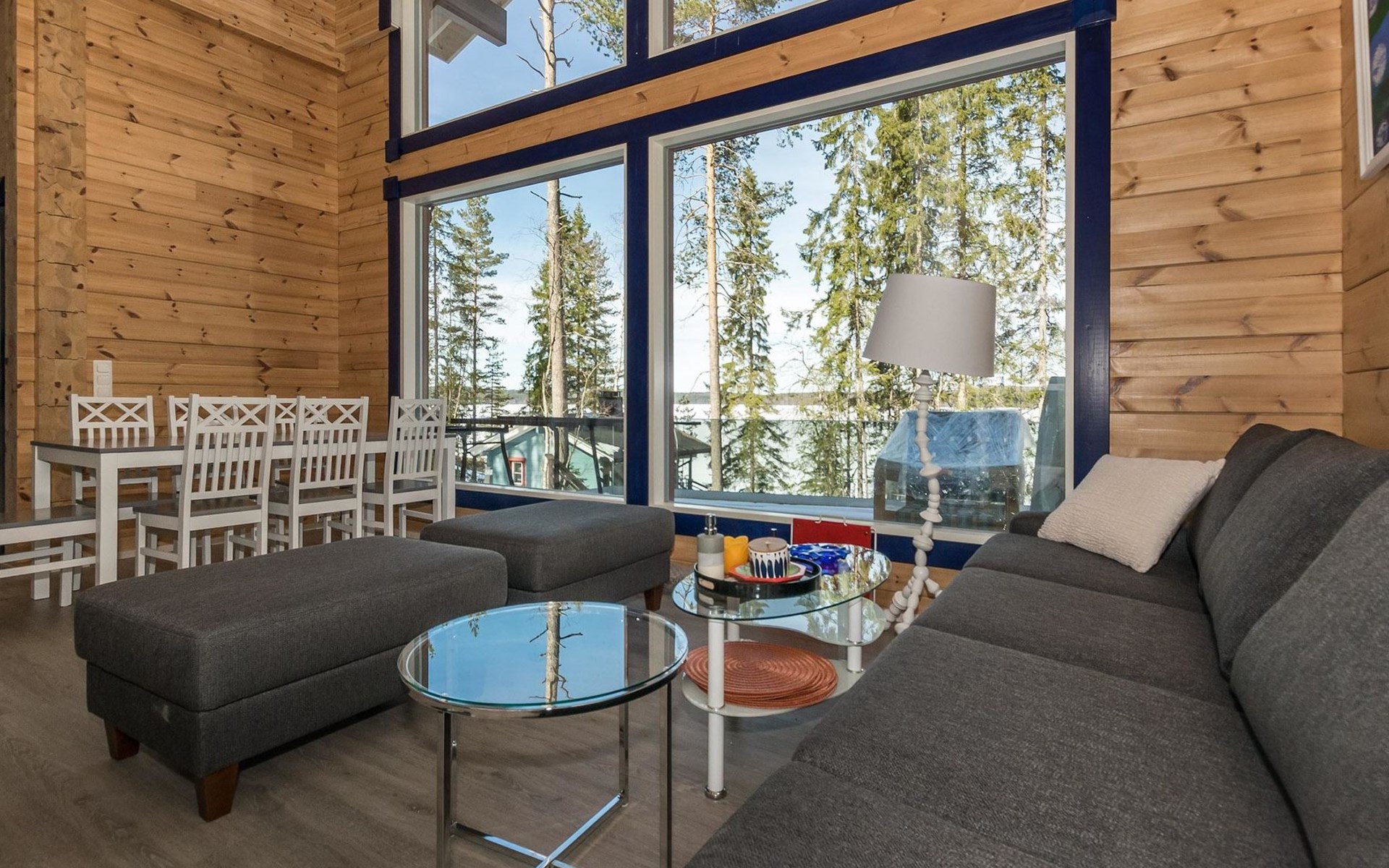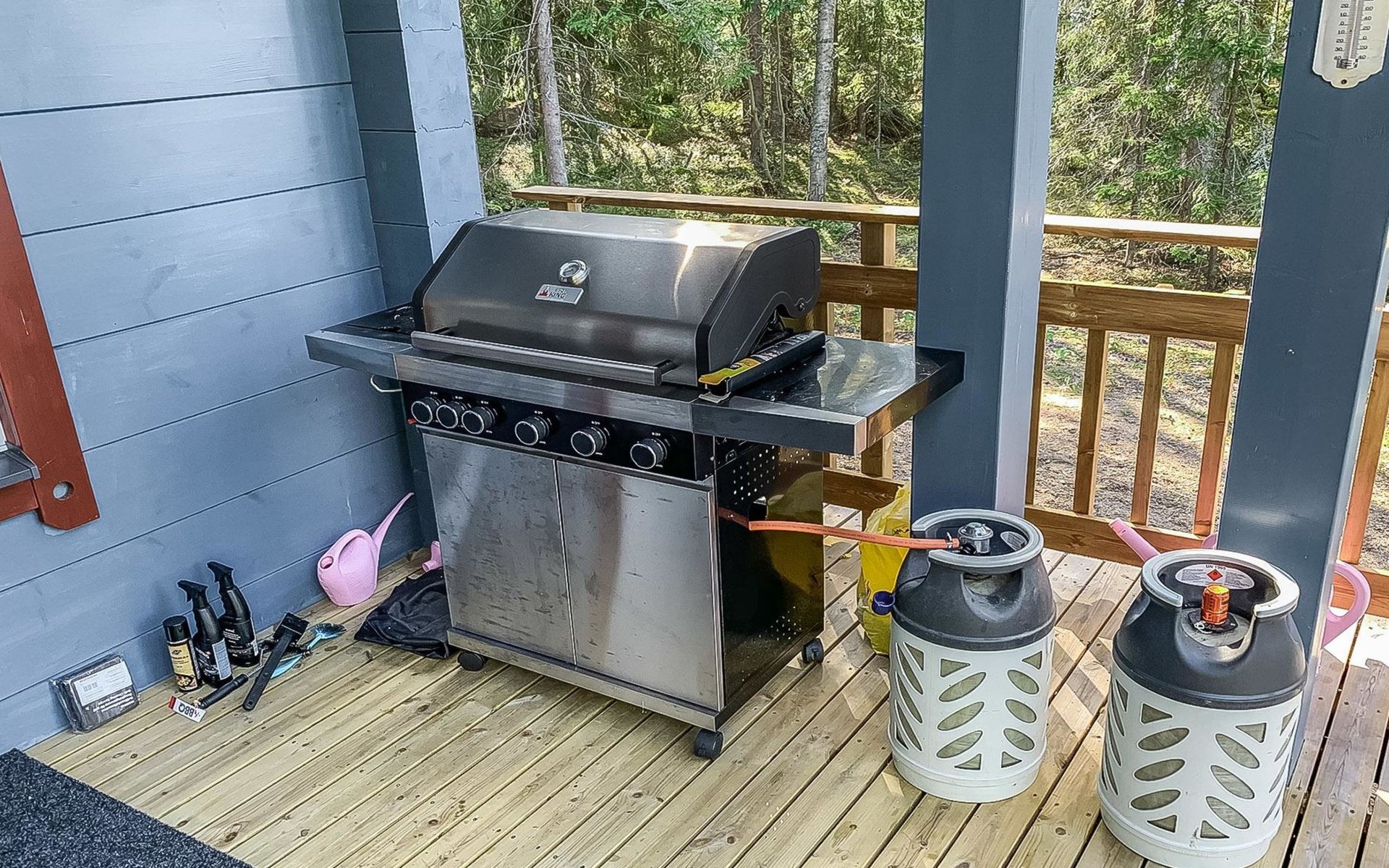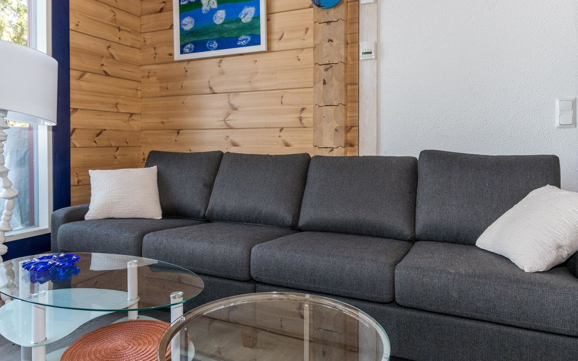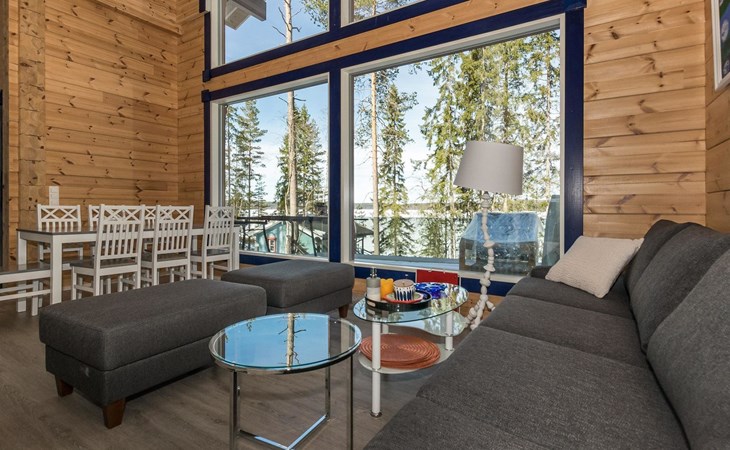Laminated log cabin 2019, living room, living room/kitchen, bedroom 1: double bed, bedroom 2: two beds, WC, sauna, washroom (electric sauna stove), two beds in the loft, child safety gate at the top of the stairs.