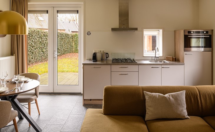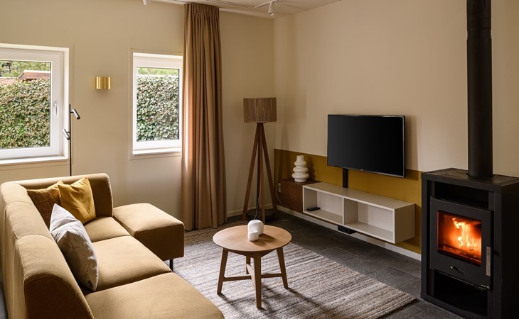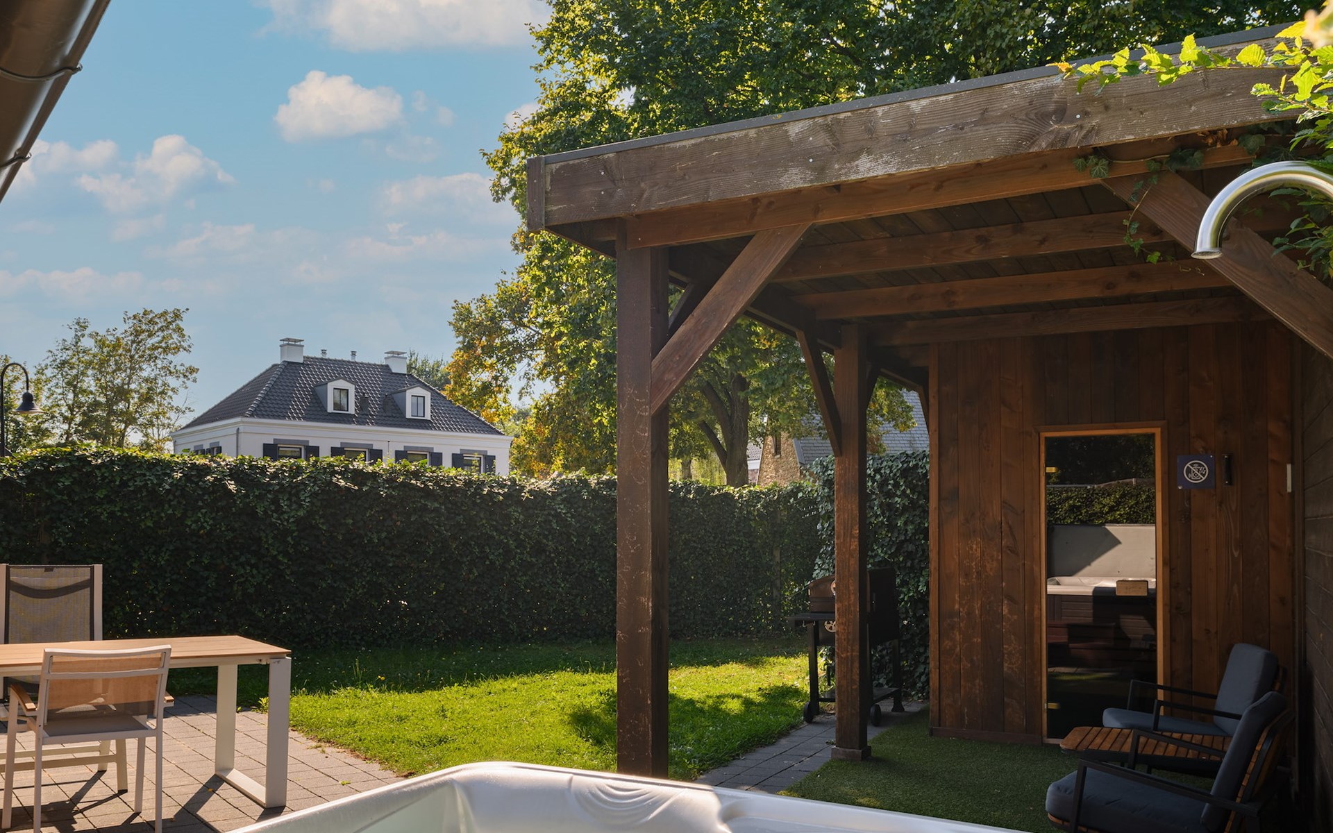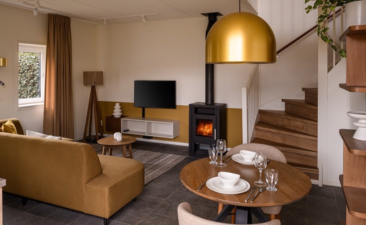 Are you looking to book a holiday home for 2 people with your own wellness facilities? Then look no further than this luxury wellness accommodation at Dormio Resort Maastricht Aqua Wellness is a semi-detached holiday home for 2 people with 1 bedroom, 1 bathroom, providing guests with a usable area of approximately 53m2. The accommodation is located on the edge of the resort. Aqua Wellness has a stylish living/dining room with a wood-burning stove. The open-plan kitchen is equipped with luxury built-in appliances, including a dishwasher, combi-oven and a Nespresso machine. From the lounge, patio doors open onto the garden with a partly covered spacious patio. For optimal relaxation, the garden is equipped with an outdoor sauna, outdoor hot tub, garden shower, lounge set and barbecue. On the first floor, there is a bedroom with a bathroom, with a shower, washbasin and toilet. There is also a separate toilet on t he ground floor. The accommodation has a spacious indoor storage room and comes with 1 parking space. You can also enjoy free WiFi during your stay. Pets are not allowed in this accommodation.
