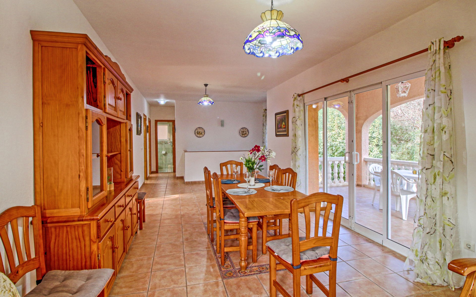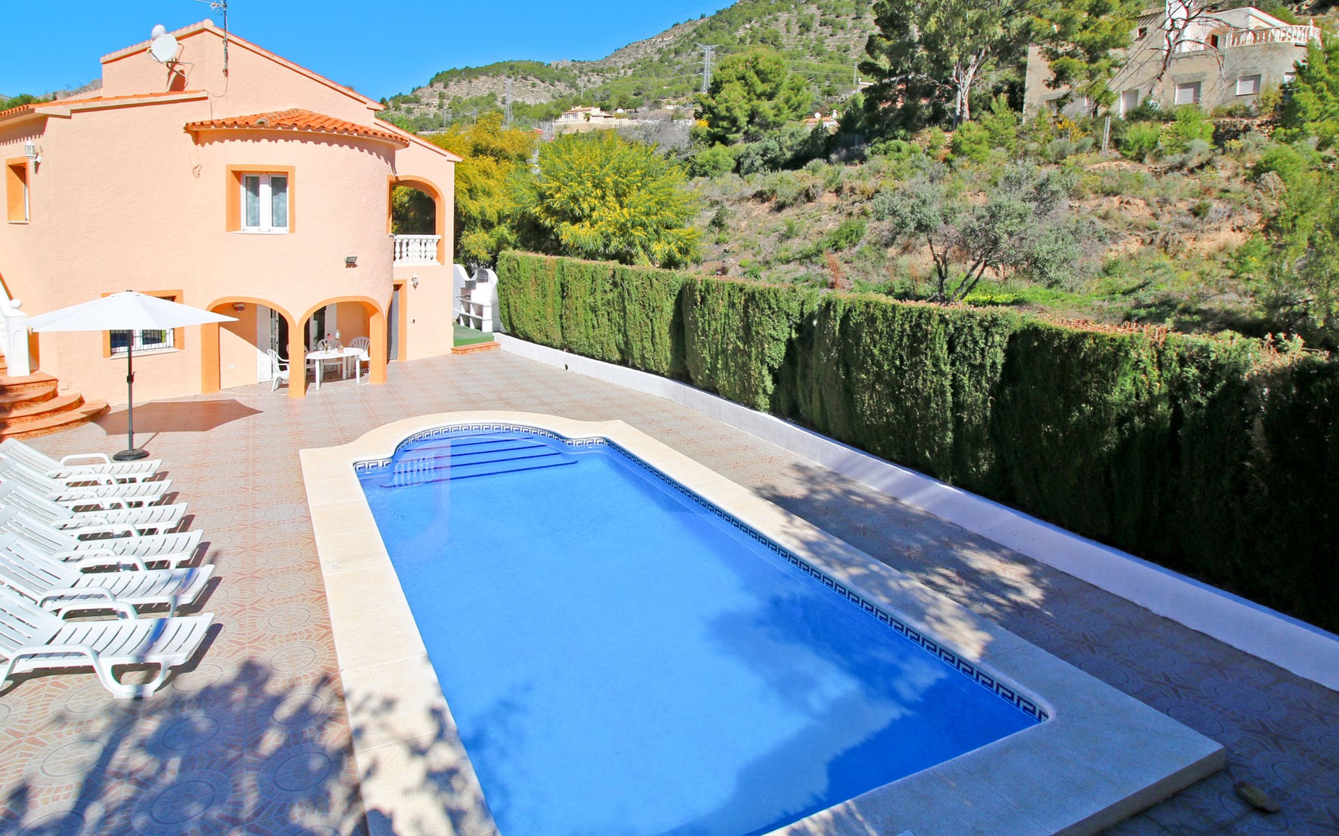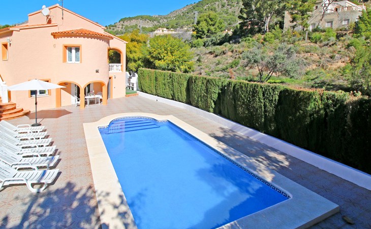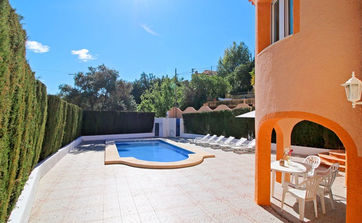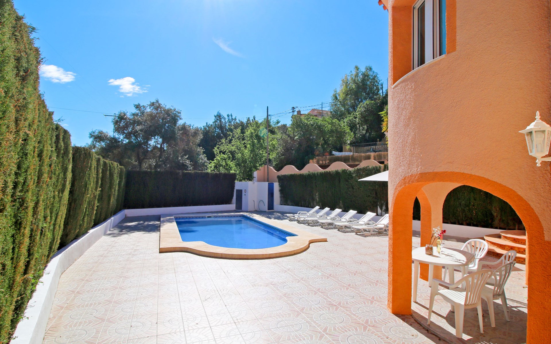 Large, comfortable villa "Maria", 2 storeys. In the district of Maryvilla 4 km from the centre of Calpe, 60 km from the centre of Alicante, 120 km from the centre of Valencia, in the residential district, 900 m from the sea, 1.5 km from the beach. Private: property 640 m2 (fenced) with wildlife garden and trees, swimming pool (8 x 4 m, seasonal availability: 01.Jan. - 31.Dec.). Outdoor shower, parking (for 3 cars) on the premises. Supermarket 3 km, bus stop 2.7 km, sandy beach "Puerto Blanco" 1.5 km. Nearby attractions: Parque de atracciones Terra Mítica 35 km, Parque acuático Aqualandia 25 km. Hiking paths: Parque natural Peñon de Ifach 6 km. Please note: car recommended. Suitable for families.