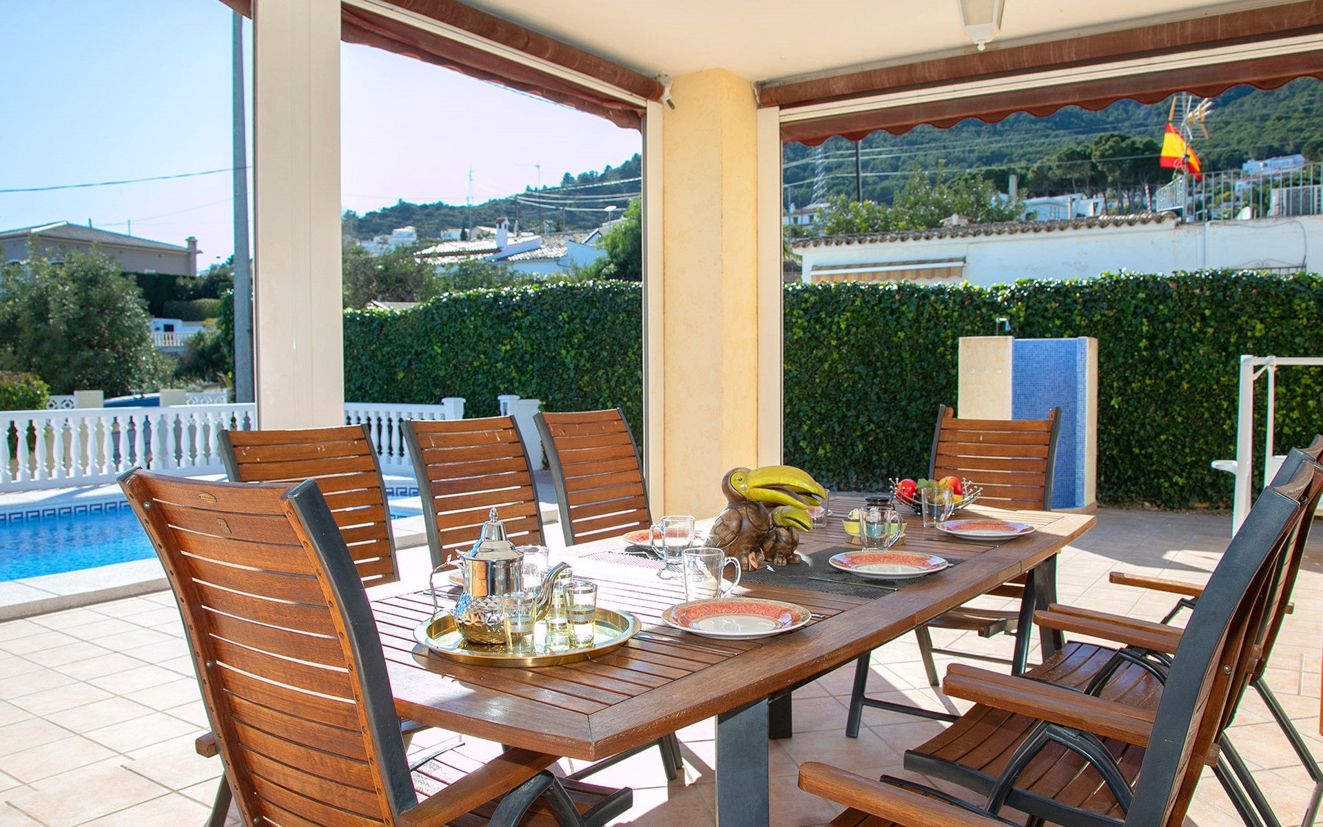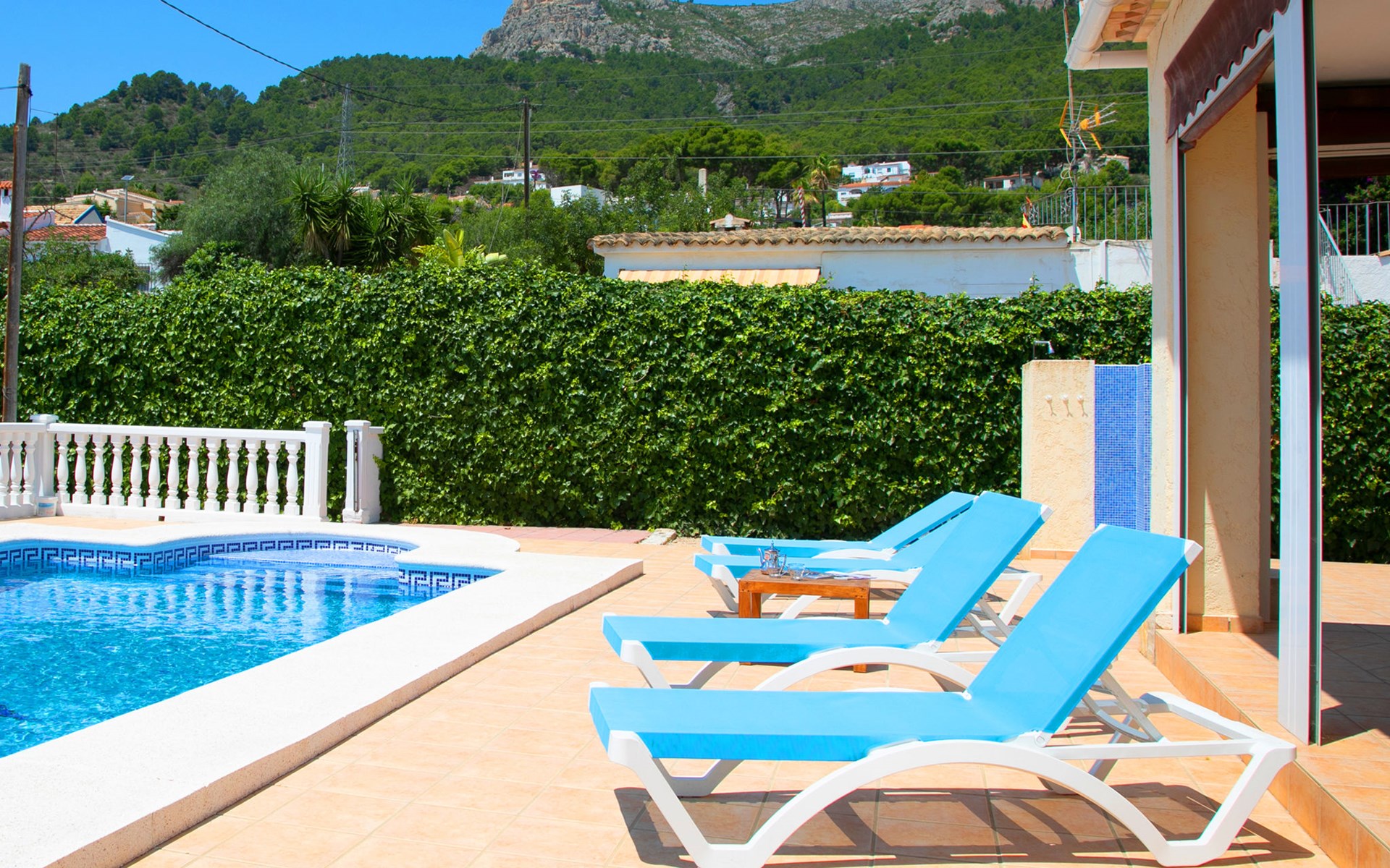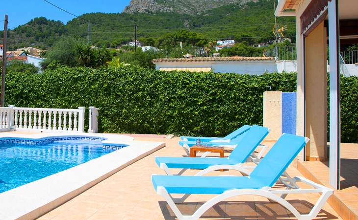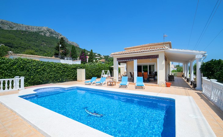 Beautiful villa "Mediterrane", 2 storeys. 2 km from the centre of Calpe, in a quiet, sunny position residential area (villas), traffic calmed area, 2.5 km from the sea, 2.5 km from the beach. Private: property (fenced), swimming pool (10 x 4 m, seasonal availability: 01.Jan. - 31.Dec.). Outdoor shower, terrace, barbecue. Grocery 1.4 km, supermarket 1.4 km, bus stop "Parada Bus" 160 m, railway station "Estacion Tren Calp" 160 m, sandy beach "Playa Arenal" 2.5 km. Sports harbour 4.6 km, marina 4.6 km, golf course (9 hole) 14 km. Nearby attractions: Aqualandia, Mundomar, Terra MÃtica, Terra Natura, Benidorm Palace (Benidorm), Les Fonts de l'Algar, Castillo de Guadalest. Object suitable for. The owner does not accept any youth groups.