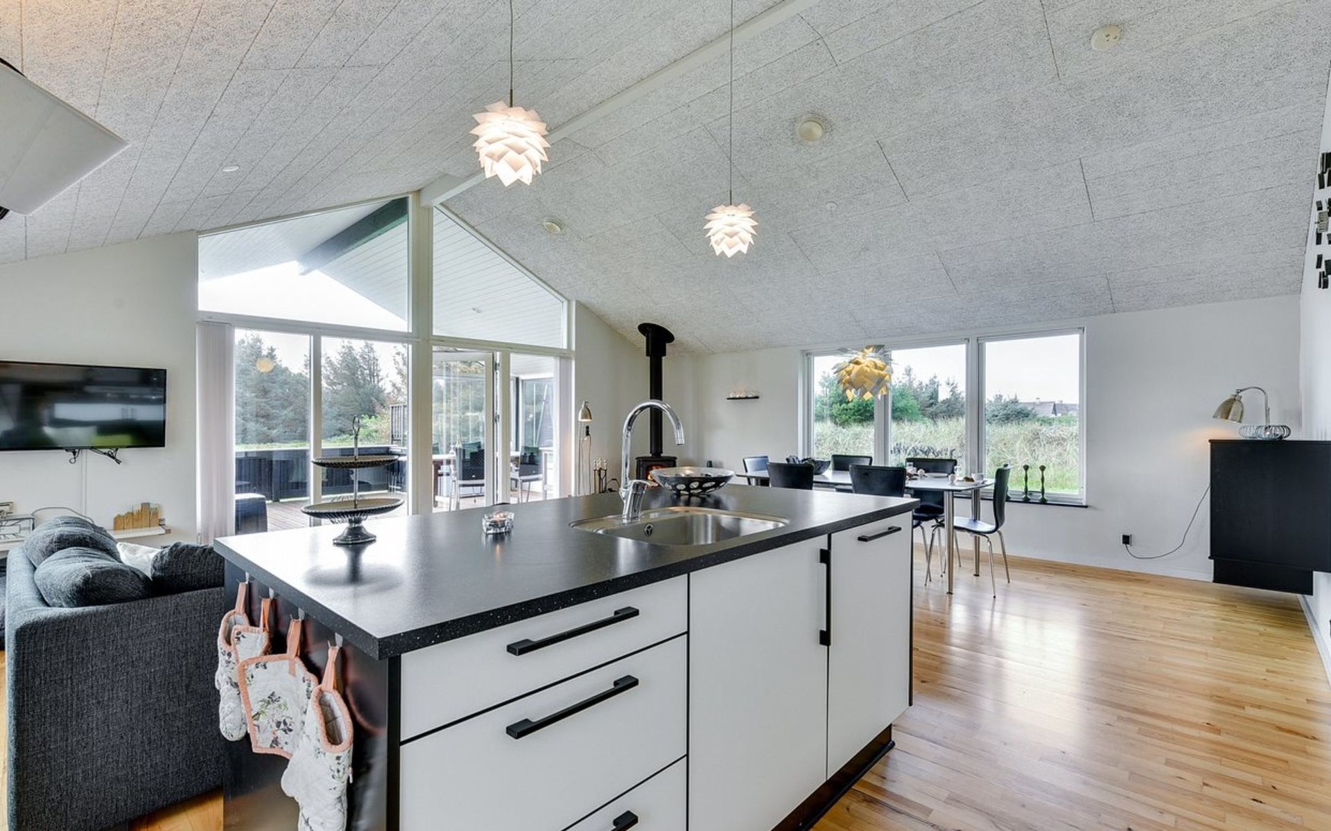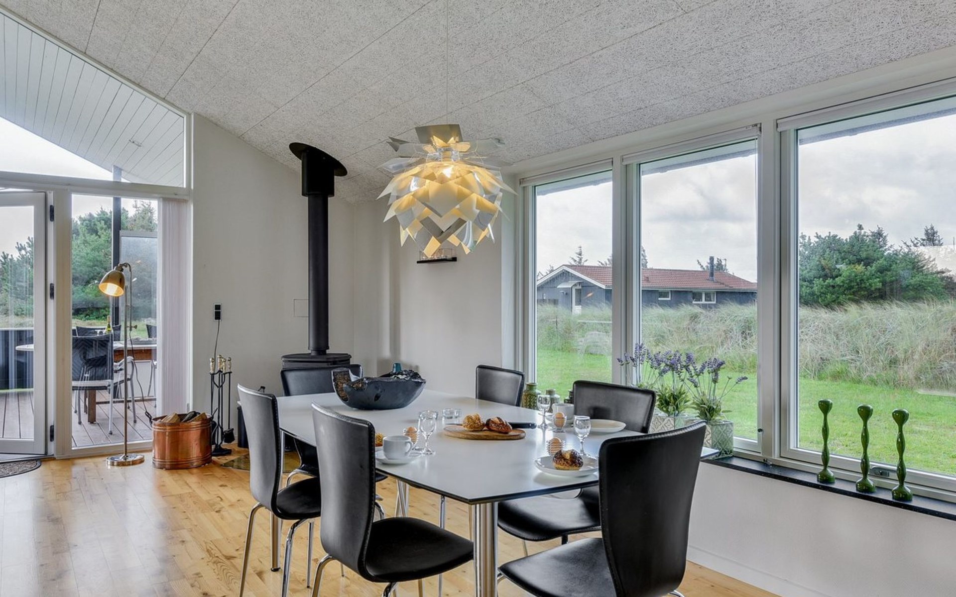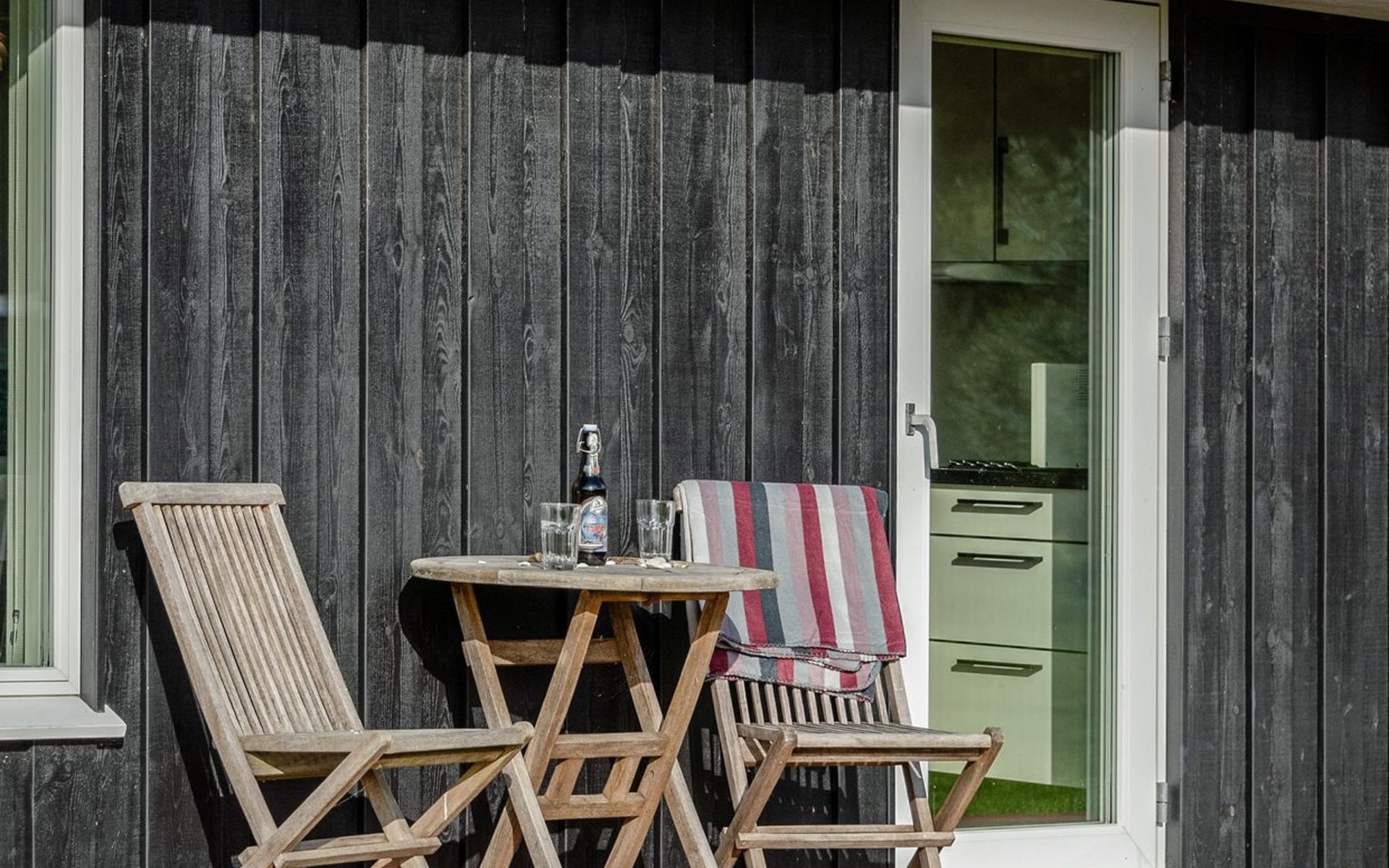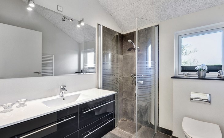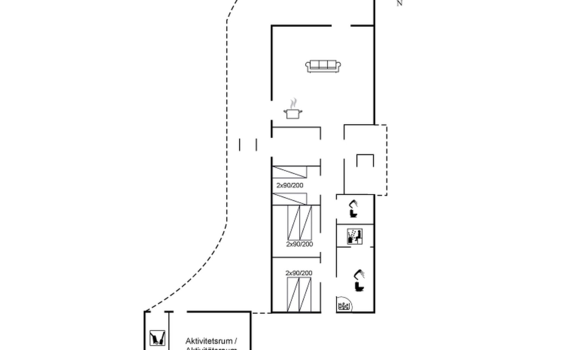 Single-family house, built in 2013. 600 m from the sea. Private: property 2'250 m2. Outdoor shower, terrace (90 m2), barbecue, fireplace, children's playground (slide, swing). In the house: sauna, table football, trampoline, washing machine, tumble dryer. Parking at the house. E-charging station. Grocery 1.5 km. The owner does not accept any youth groups.