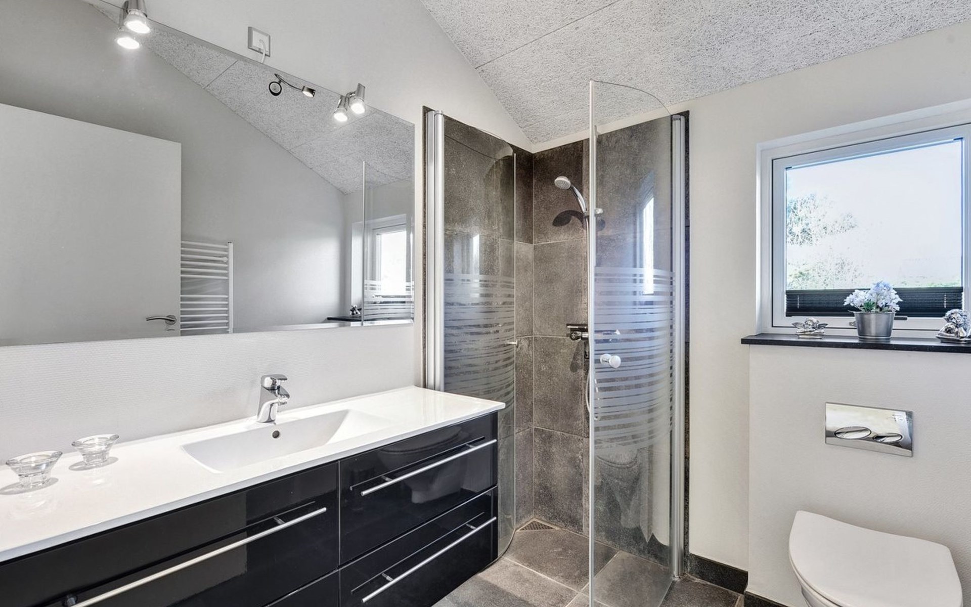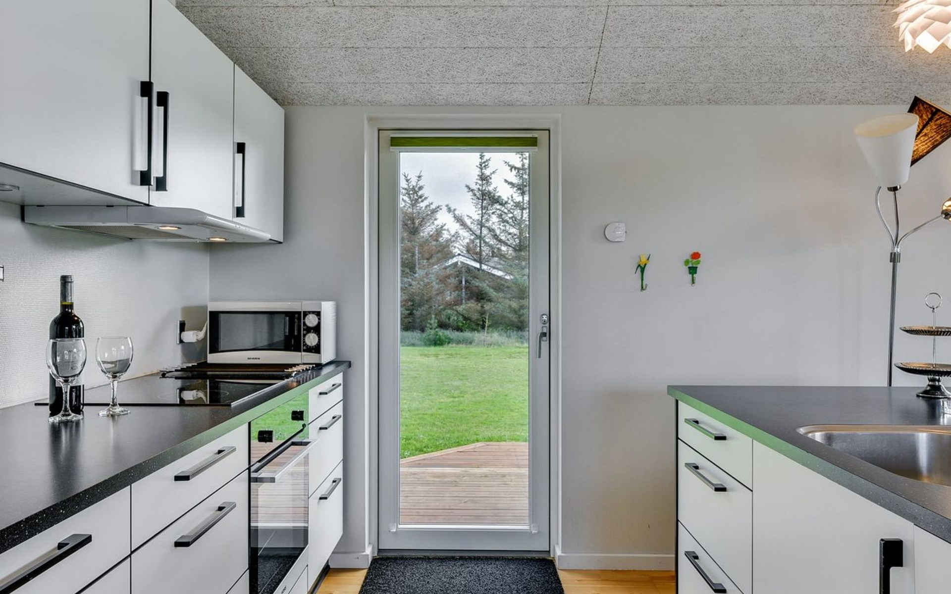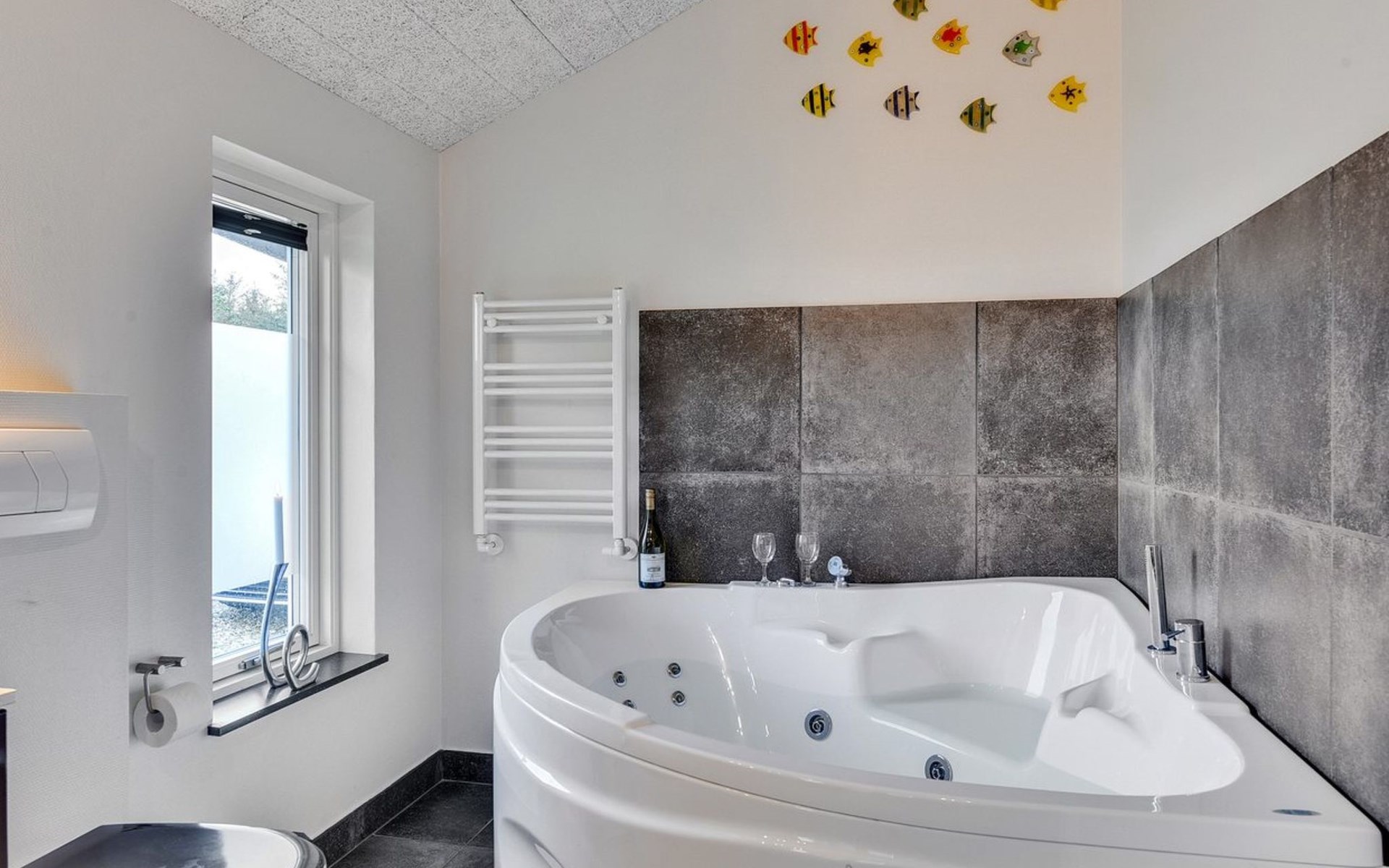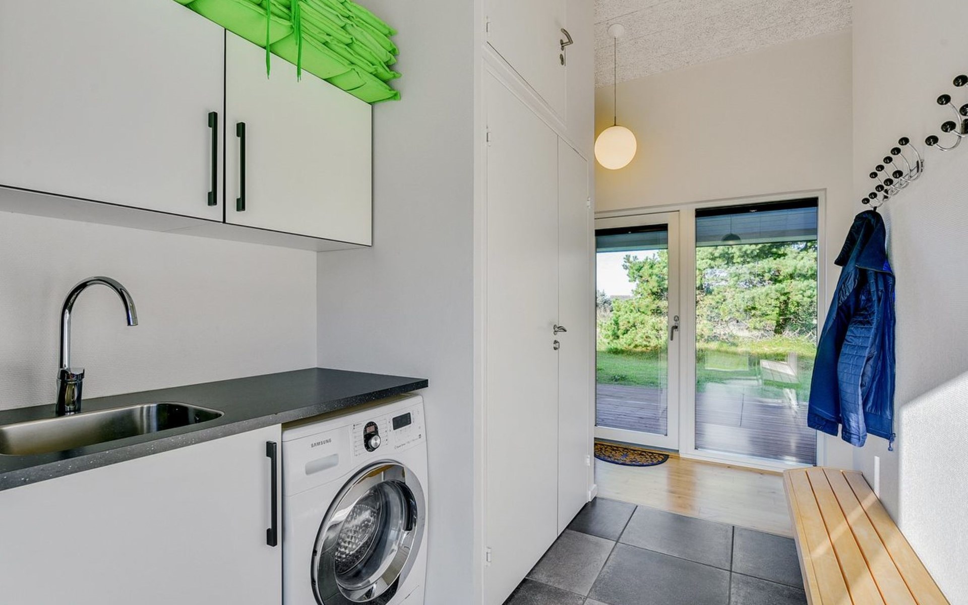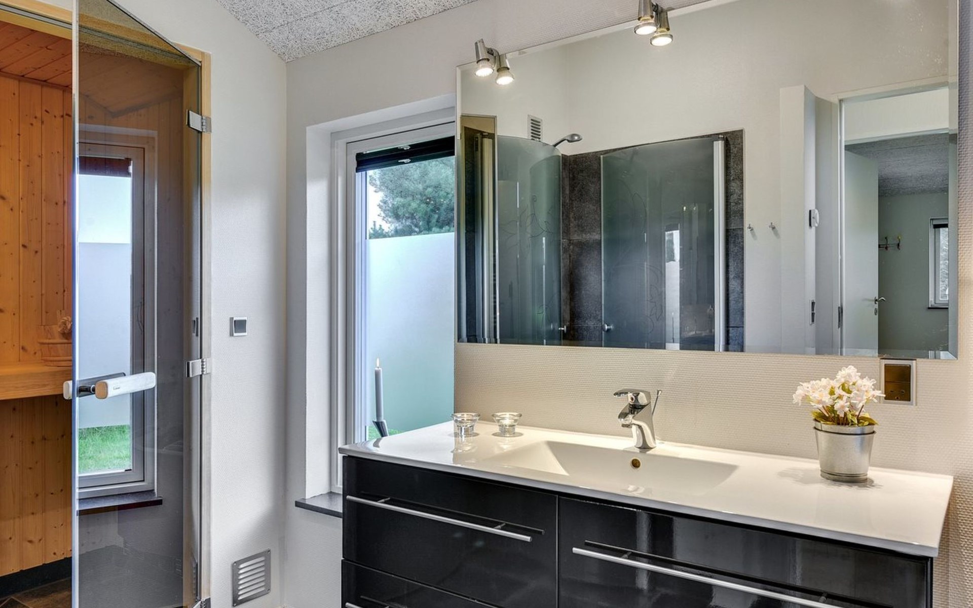 Single-family house, built in 2013. 600 m from the sea. Private: property 2'250 m2. Outdoor shower, terrace (90 m2), barbecue, fireplace, children's playground (slide, swing). In the house: sauna, table football, trampoline, washing machine, tumble dryer. Parking at the house. E-charging station. Grocery 1.5 km. The owner does not accept any youth groups.