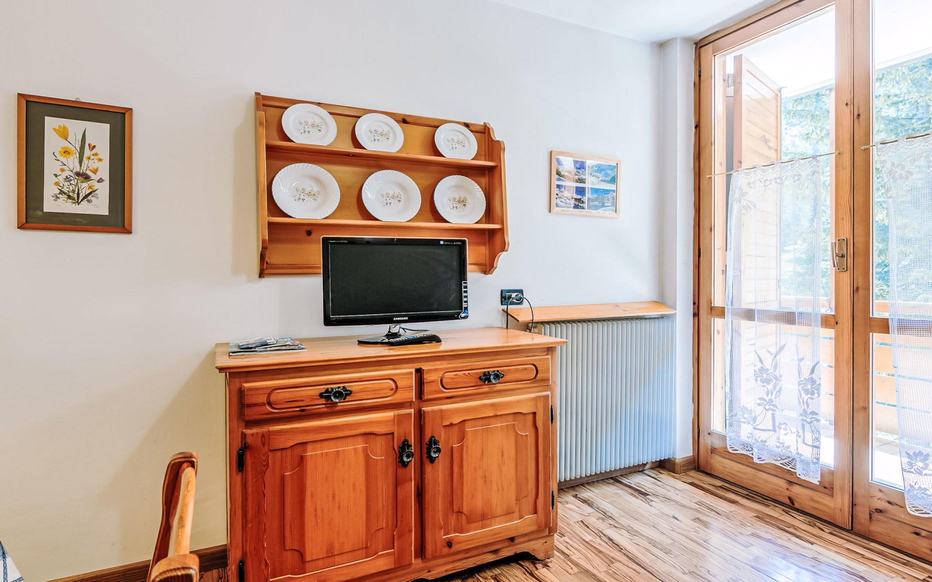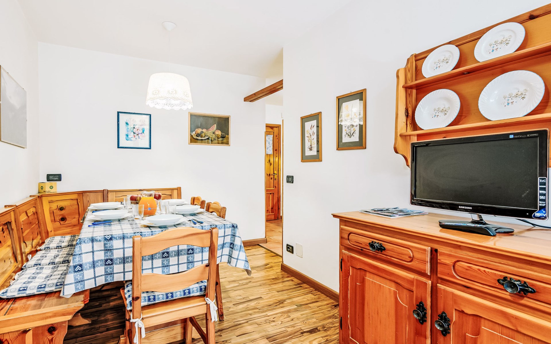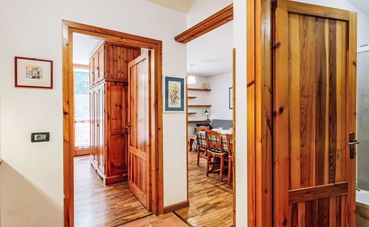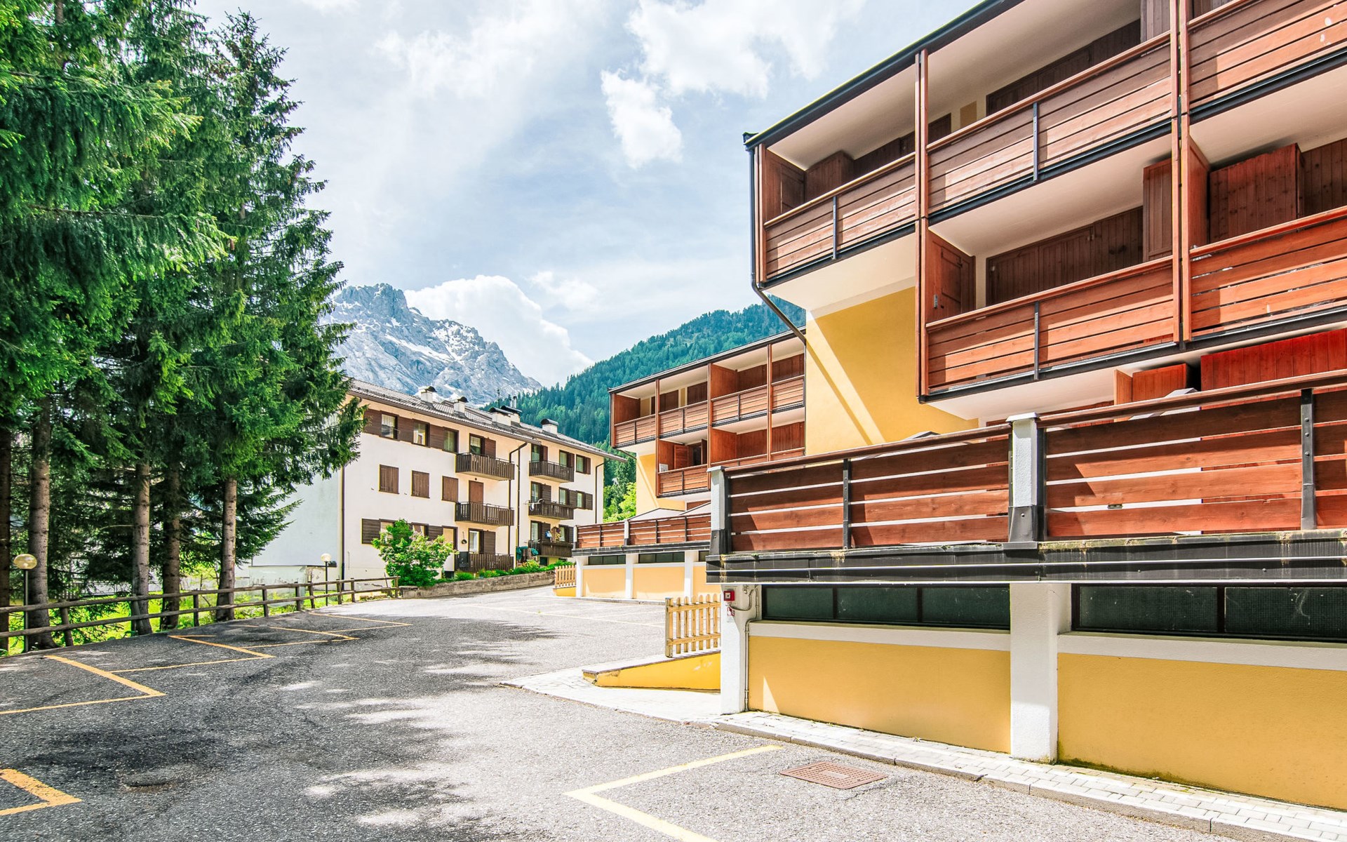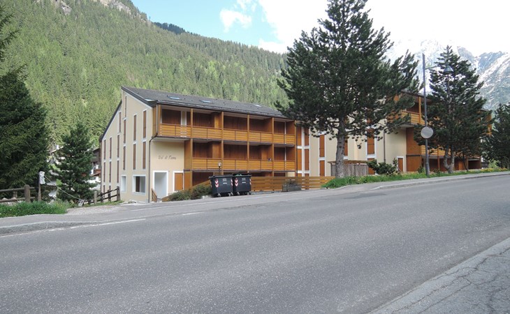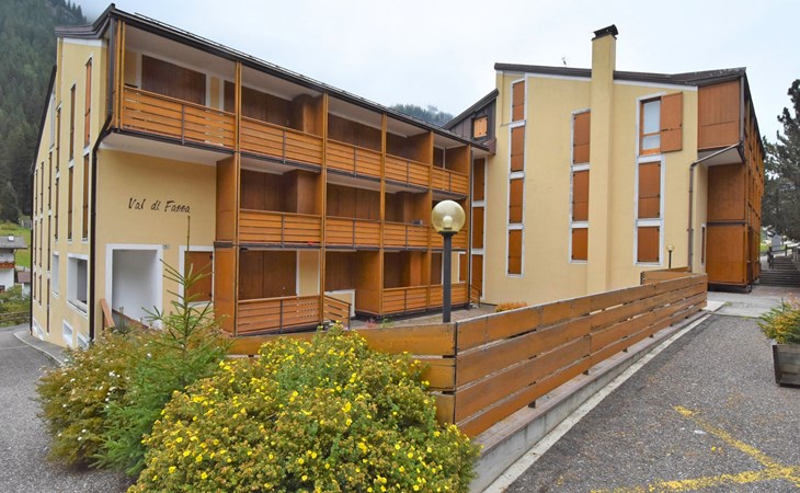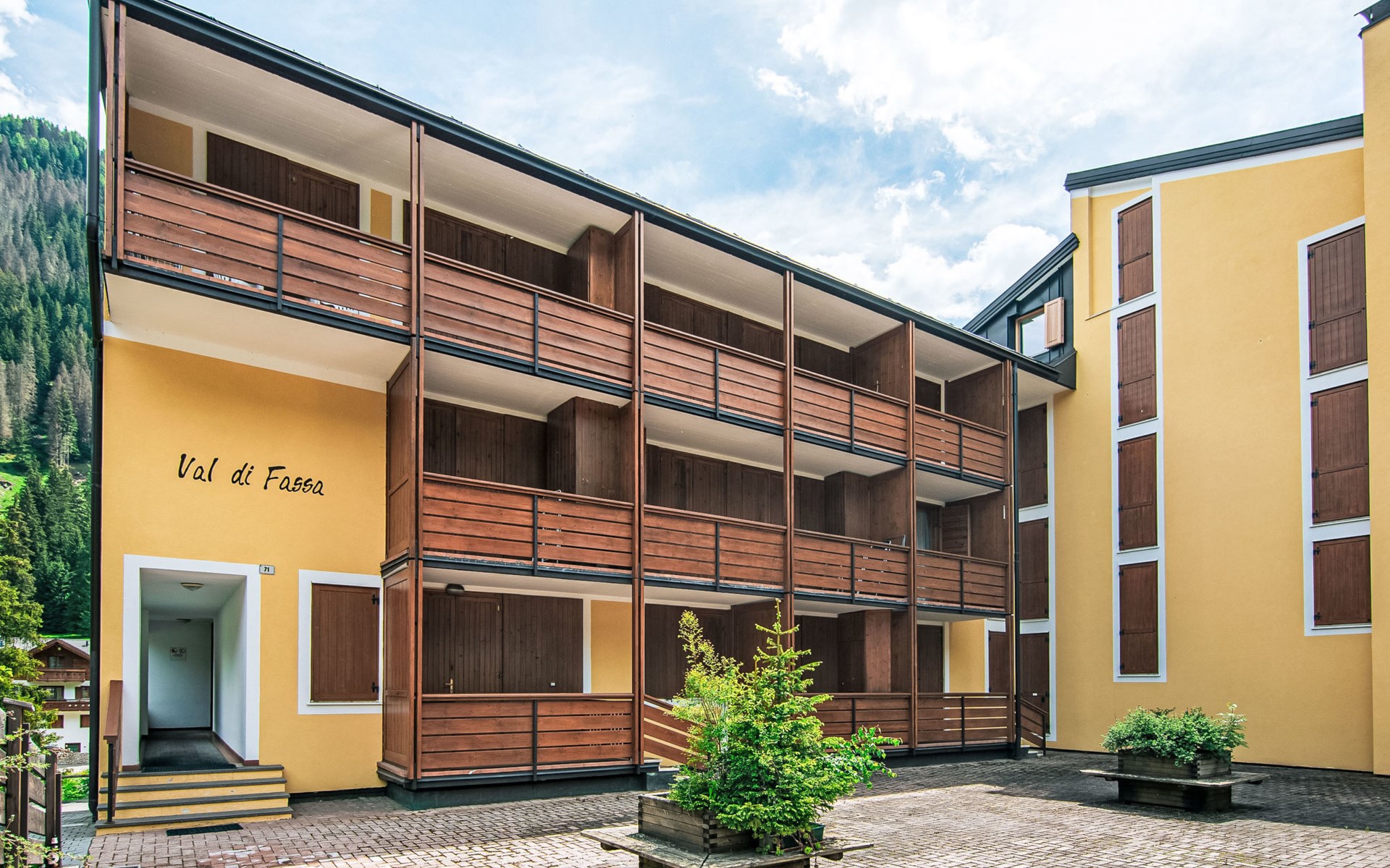 Alba 1 km from Canazei: Large residence "Condominio Val di Fassa", 4 storeys. 700 m from the centre of Alba, 1.5 km from the centre of Canazei, in a quiet position, along the wooded area, 1.1 km from the skiing area. In the house: central heating system, heating available only from 01.Dec. - 01.May.. In Winter: please take snow chains. Parking at the house. Supermarket 500 m, bus stop 20 m. Ski bus stop 20 m. Nearby attractions: Sella Ronda 1.1 km.