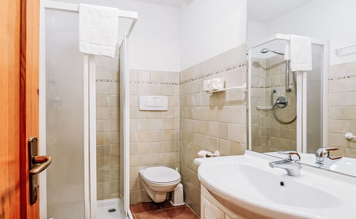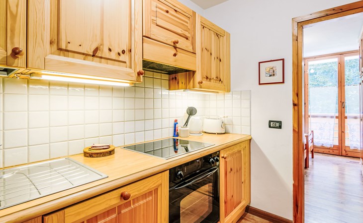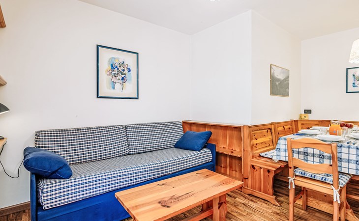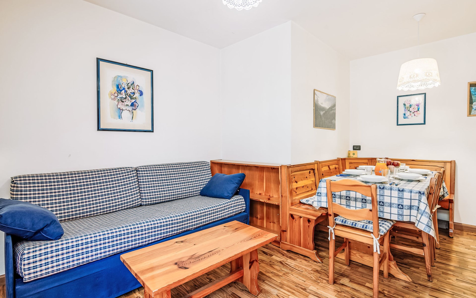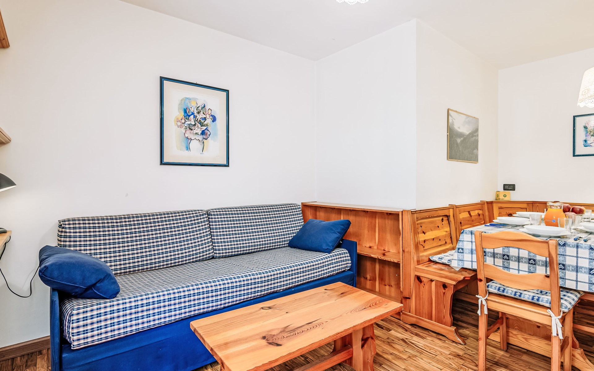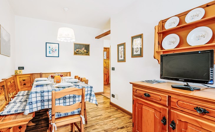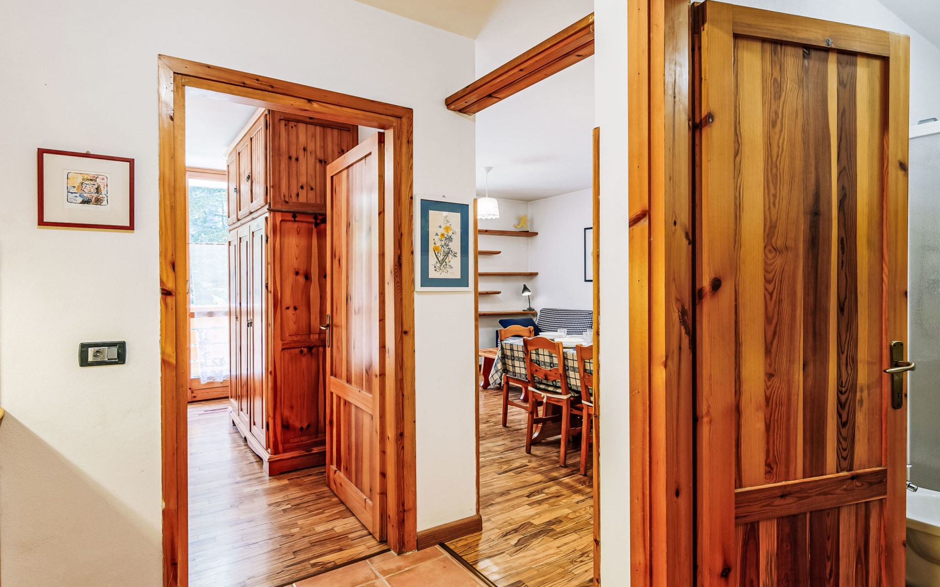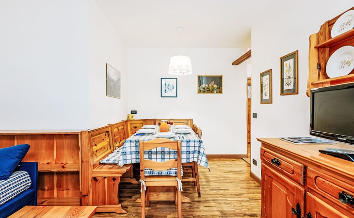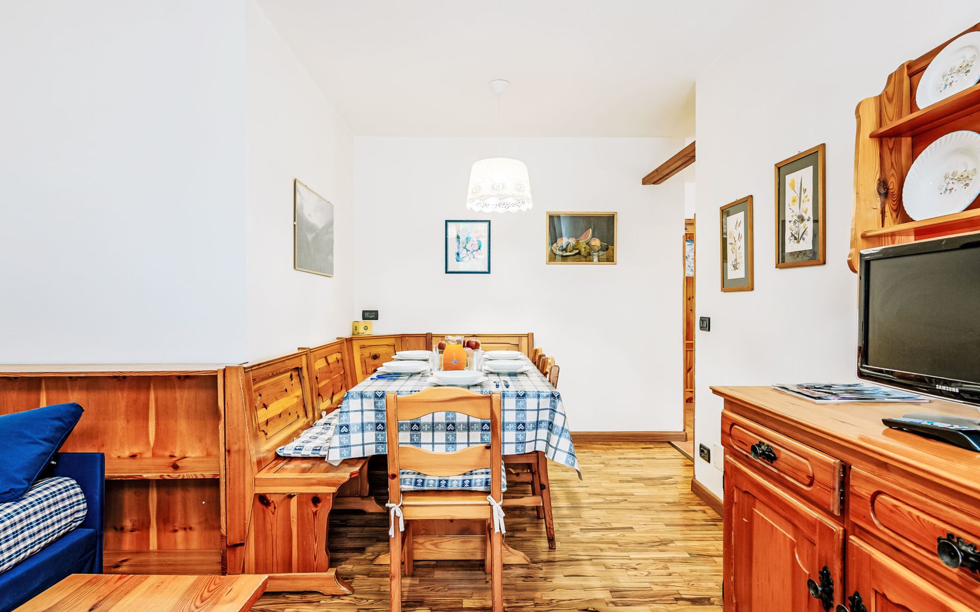 Alba 1 km from Canazei: Large residence "Condominio Val di Fassa", 4 storeys. 700 m from the centre of Alba, 1.5 km from the centre of Canazei, in a quiet position, along the wooded area, 1.1 km from the skiing area. In the house: central heating system, heating available only from 01.Dec. - 01.May.. In Winter: please take snow chains. Parking at the house. Supermarket 500 m, bus stop 20 m. Ski bus stop 20 m. Nearby attractions: Sella Ronda 1.1 km.