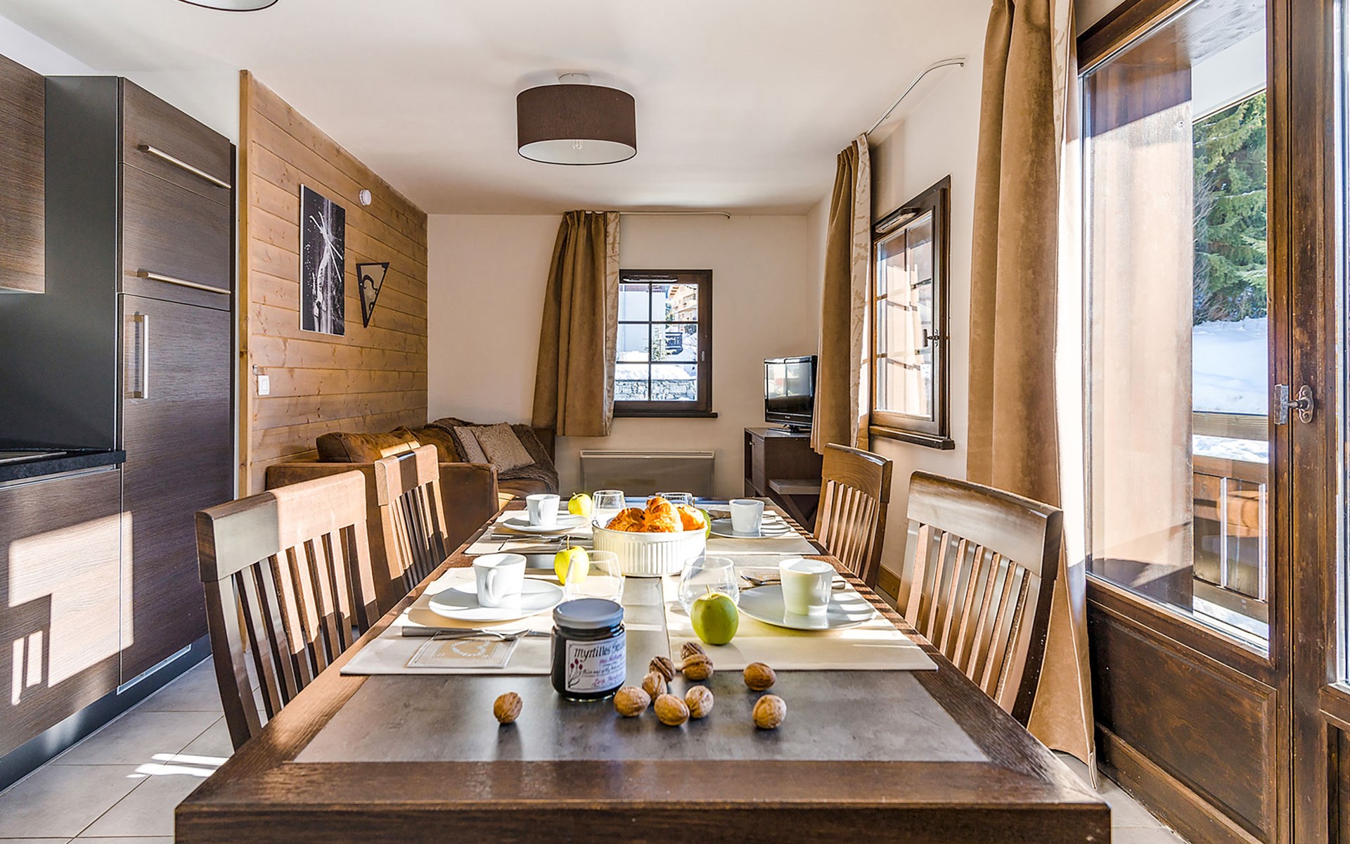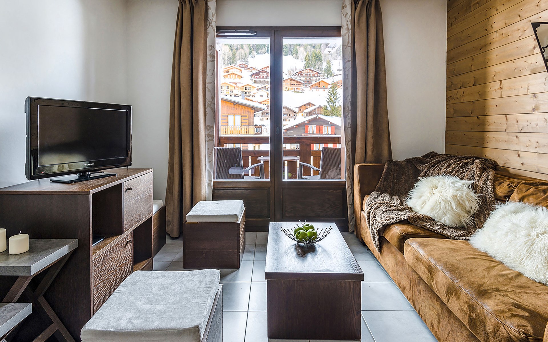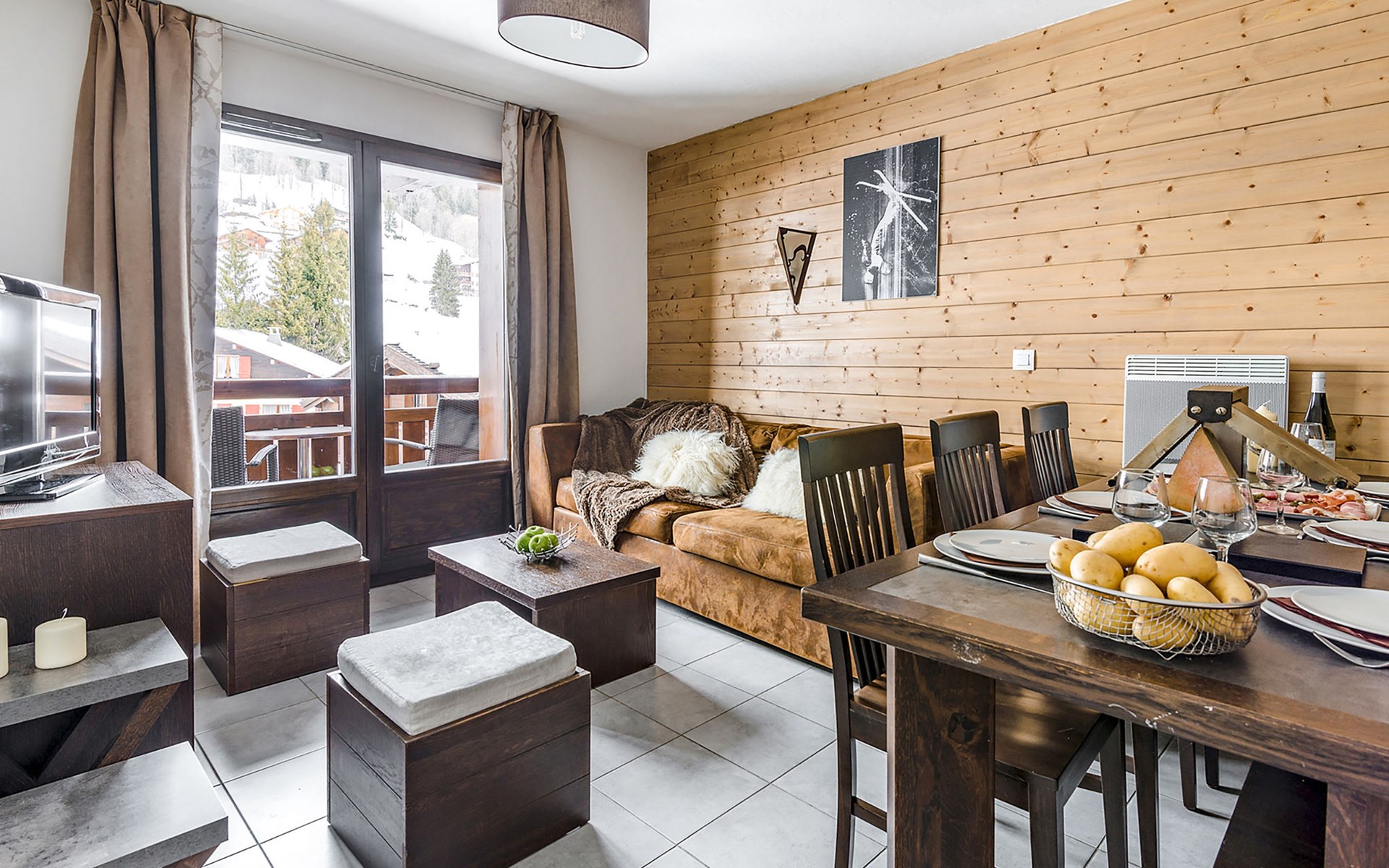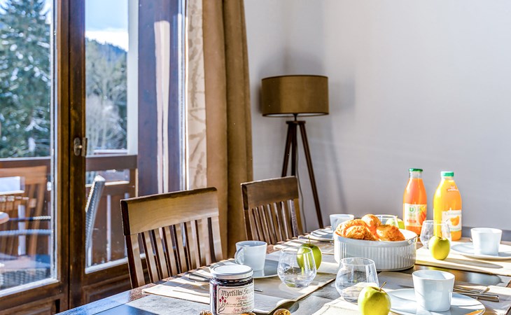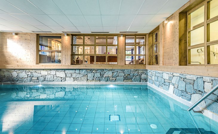 Modern, comfortable residence "Les Fermes Emiguy". 4 houses in the residence. 74 apartments in the residence. 400 m from the centre of Les Gets. For shared use: indoor pool heated. Shower/WC in the pool area, hot tub. In the complex: reception, lounge, sauna (extra). Fitness room, steam room (extra). Billiard table, lift, storage room for bicycles, storage room for skis, washing machine (extra). Roofed, parking (extra). Parking space or garage only for small to medium-sized cars. Dimension: height 195 cm. Shop, restaurant 400 m, bus stop "Les Gets Bus Terminal" 1 km. Slopes 400 m. Well-known ski regions can easily be reached: Morzine 10 km, Châtel 45 km. Please note: reception open 17:00-20:00 hrs. Please note: the photograph shows a typical example. The holiday properties may differ in living space, floorplan, equipment and furnishing.