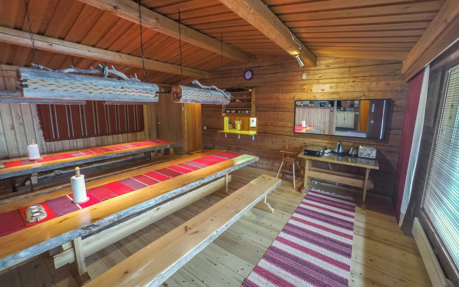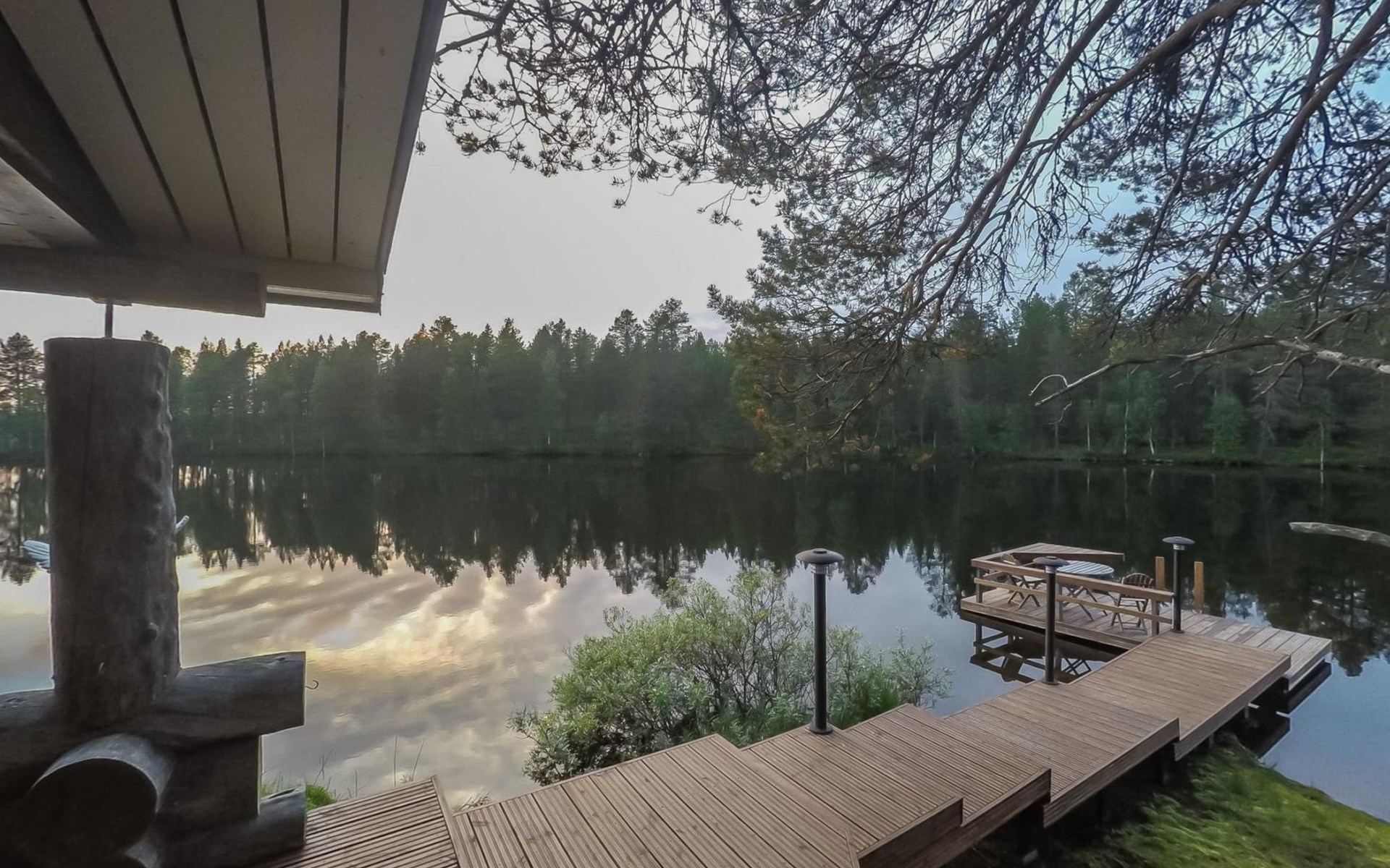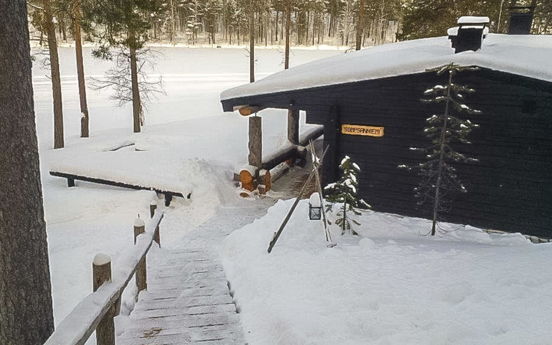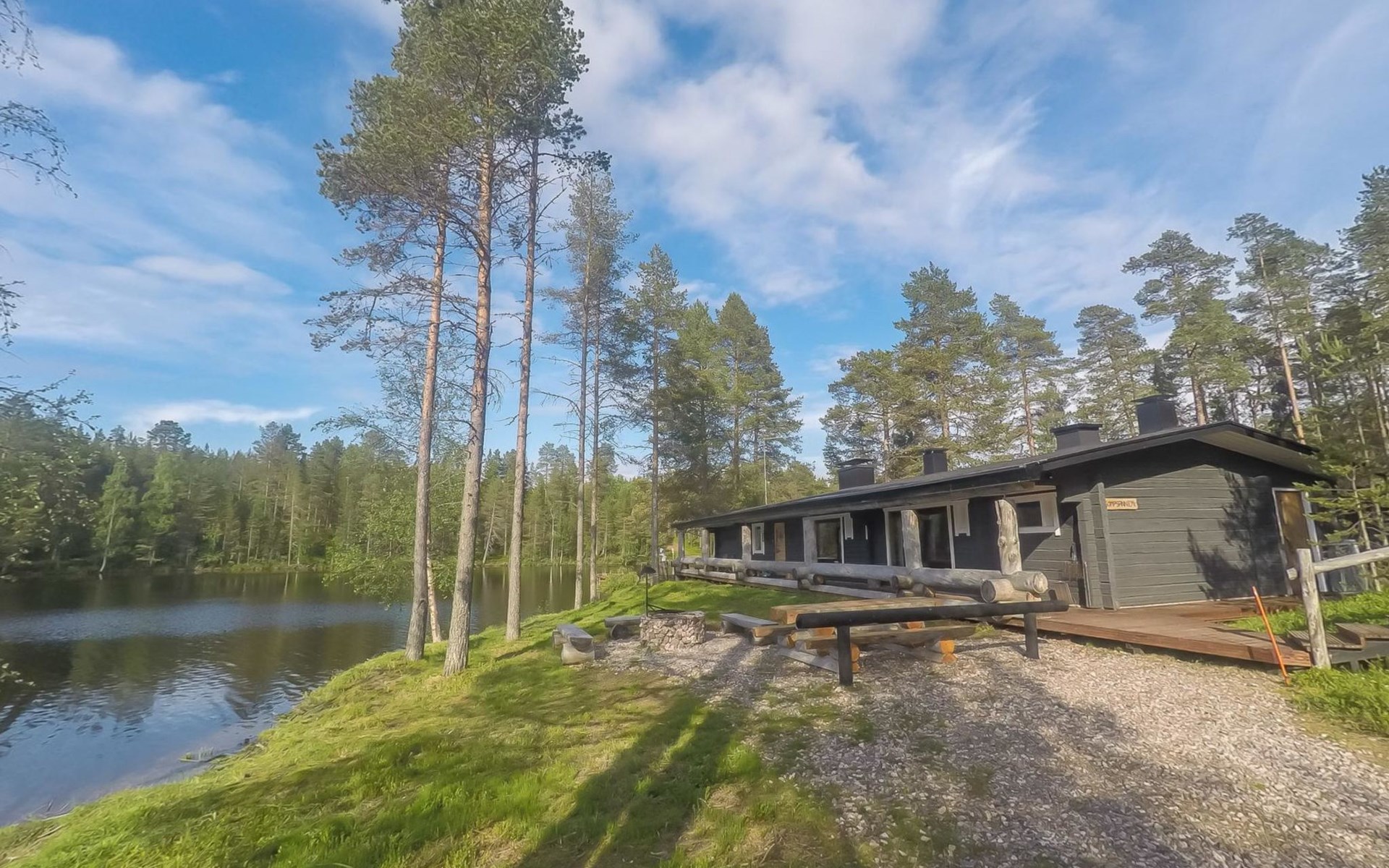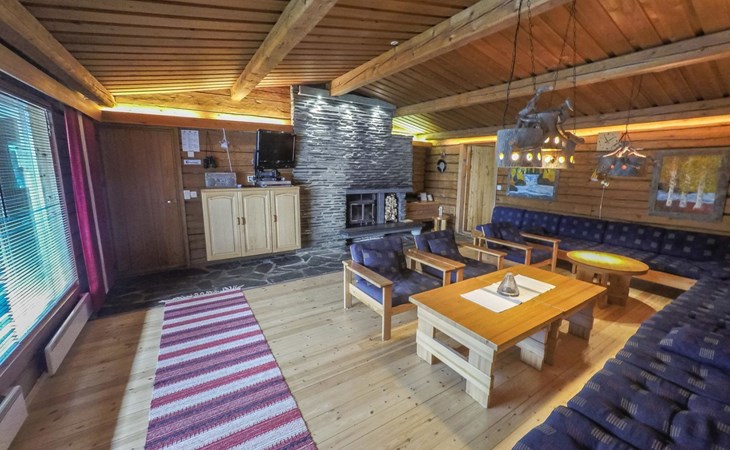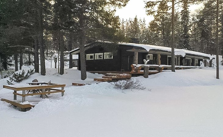 In the main building maximum number of persons is 14. In case you will be more, please book additionally sleeping cabins (additional fee). On the yard area there are 3 log-built, warm sleeping cabins; two so called "Aurora cabins" (4 persons/cabin) are available all year round and one sleeping cabin (for 2 persons) is available only for summer use June-August. incl. final cleaning. Distance from the main building to the Aurora cabins is approximately 150 m and for summer cabin approximately 200 m. Spacious cottage situated on Sompsanniemi cape on Lake Alakitkajärvi.