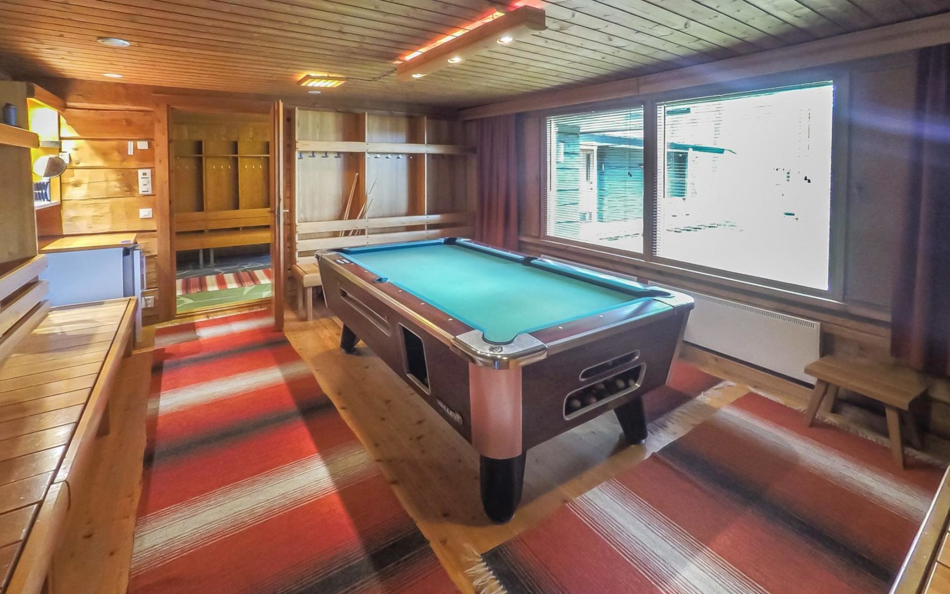 Full-size pool table, ski maintenance room (stand for ski waxing). Tableware for 24 persons. Two showers in bathroom.