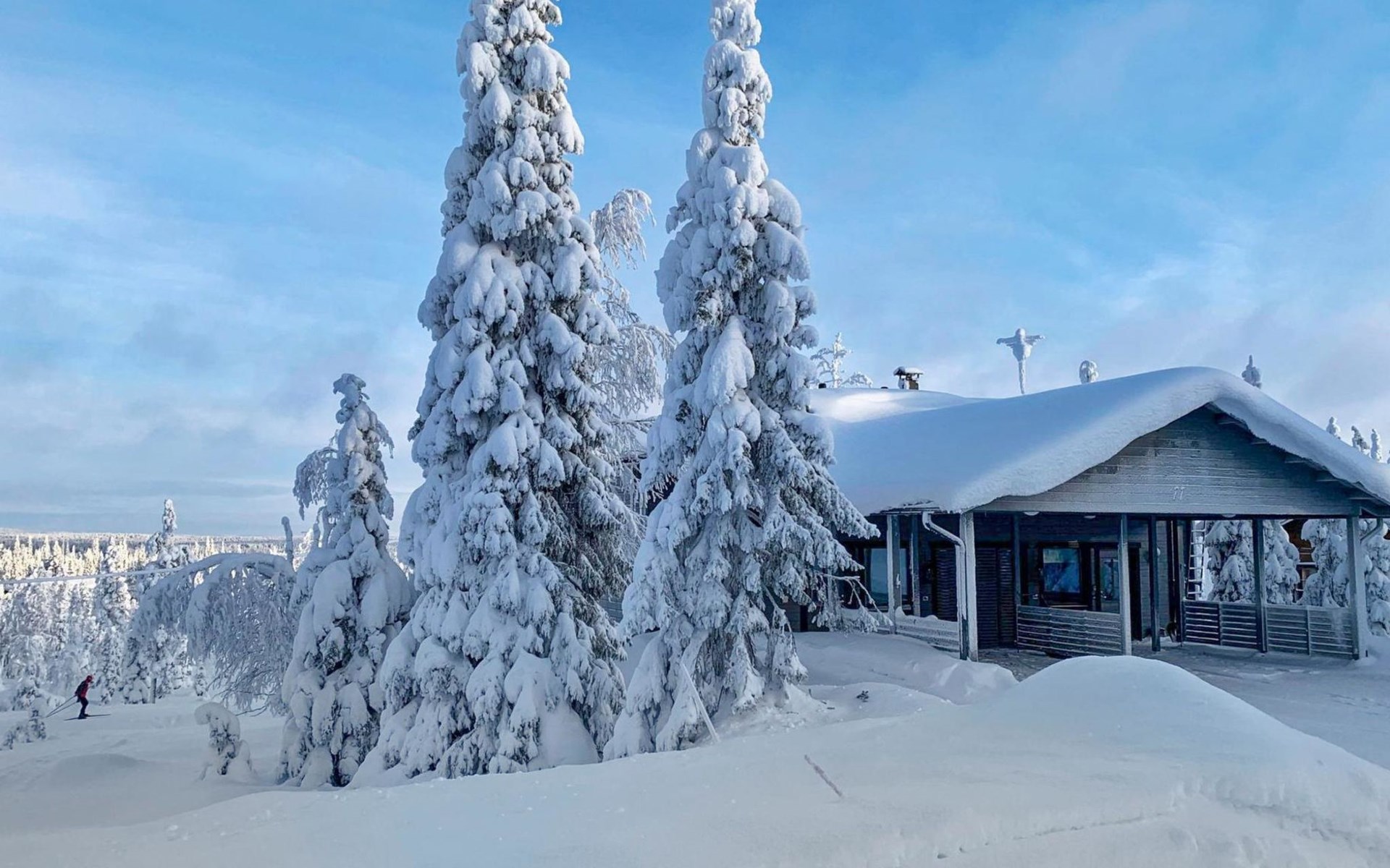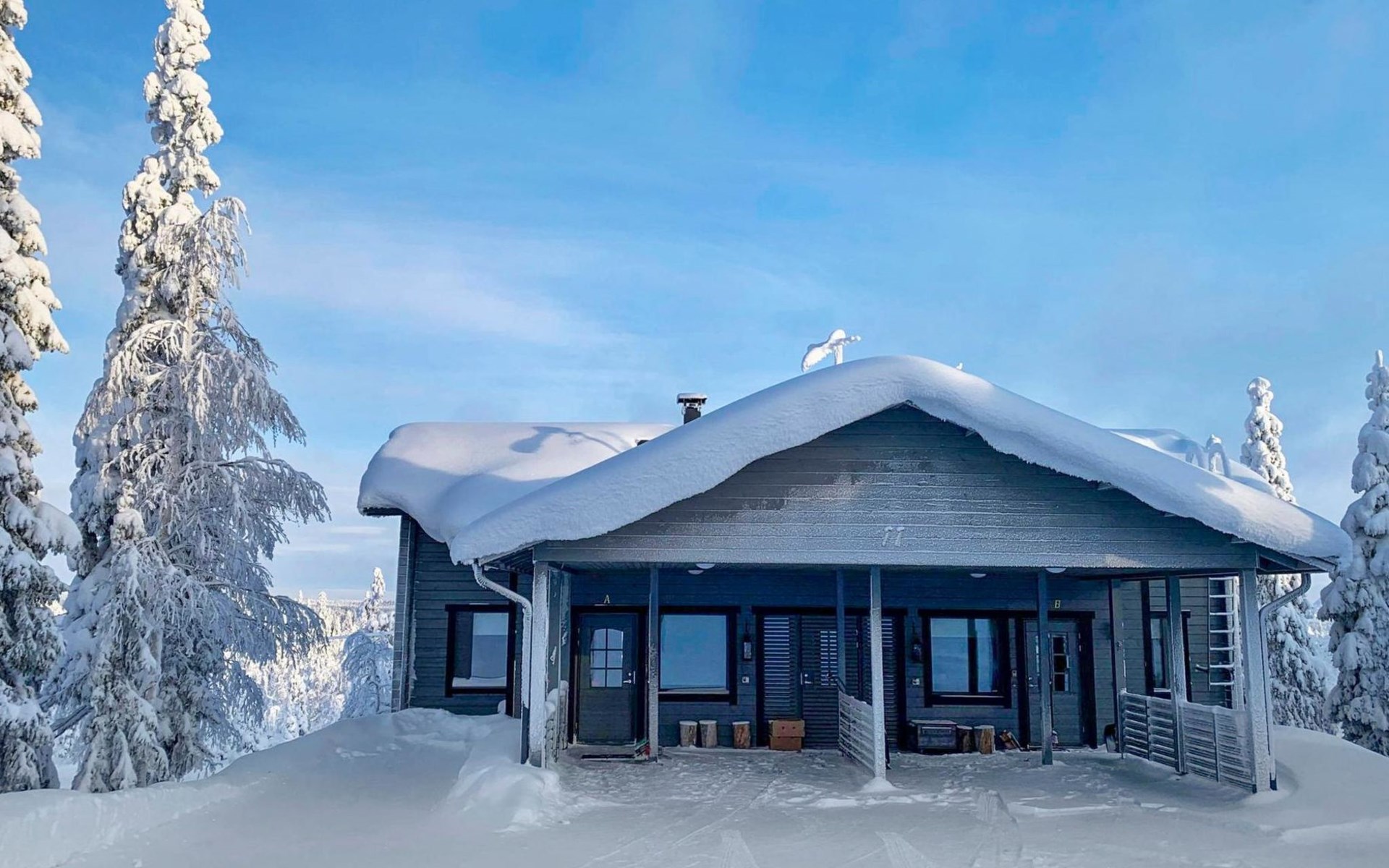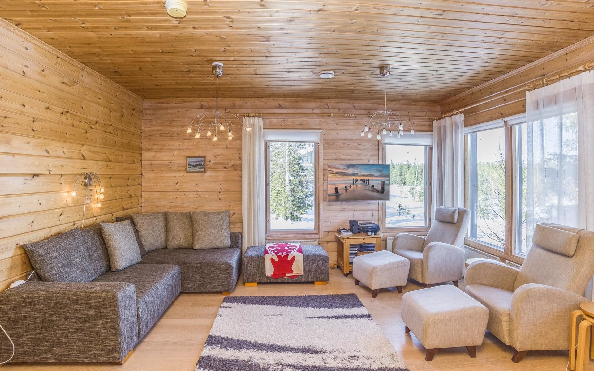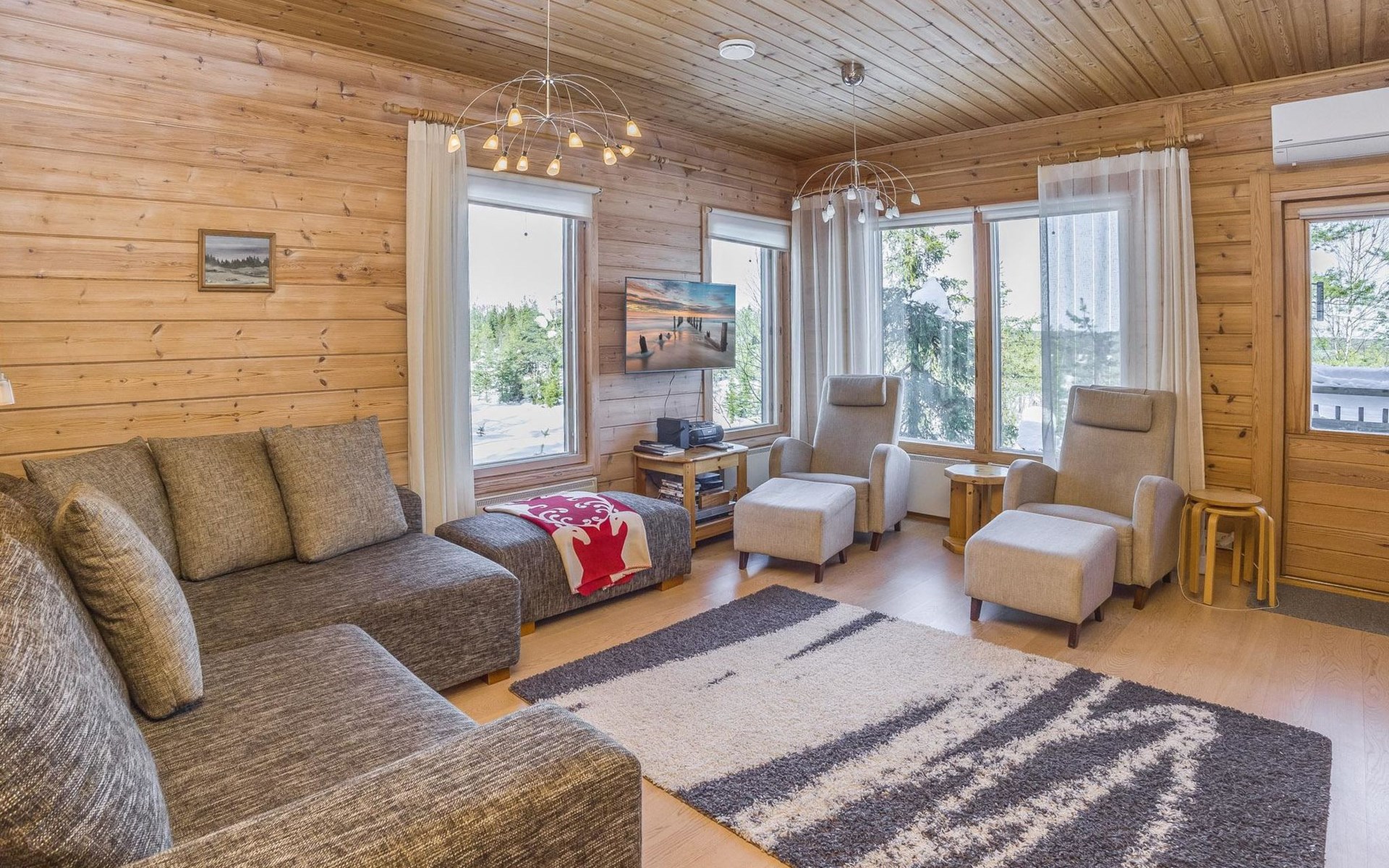 A semi-detached house built with love in 2002. Master bedroom with double bed downstairs. Bedrooms 2 and 3 upstairs. One bedroom has two beds and the other bedroom has a 120 cm wide bed. There is a bed in the upstairs hall and and sofabed/mattress. The room height upstairs is partly lower than normal. Open kitchen, living room, pantry, washroom, two toilets, electric sauna. Note: the refrigerator includes a freezer compartment.