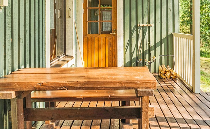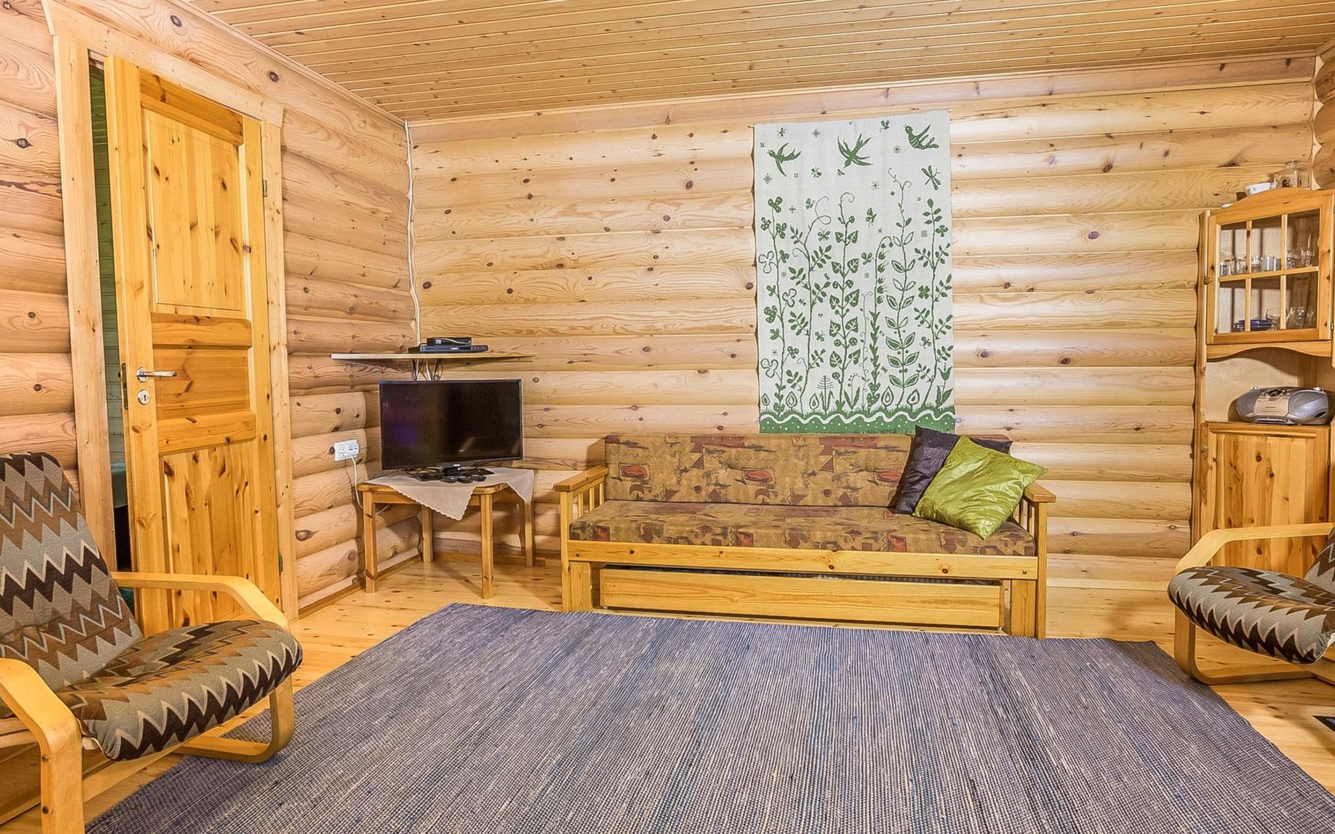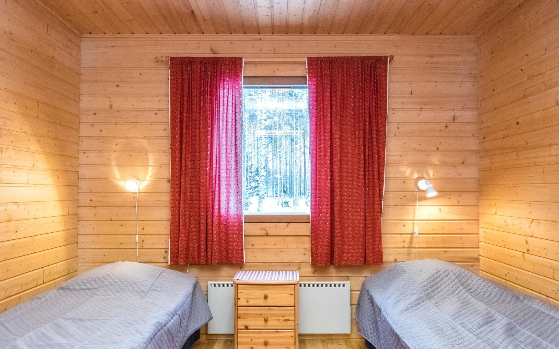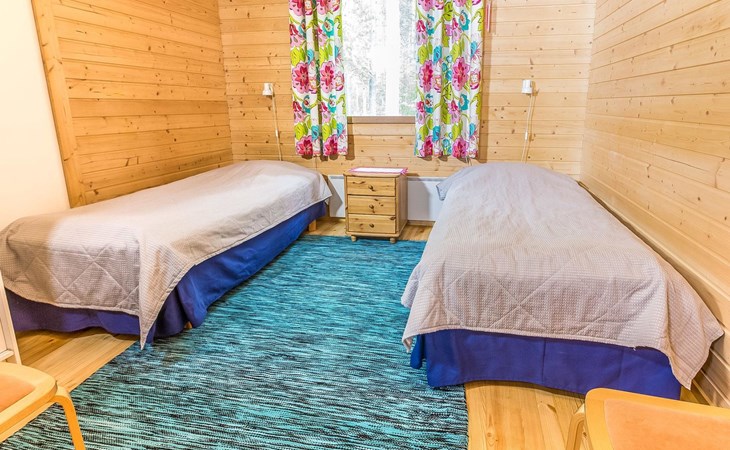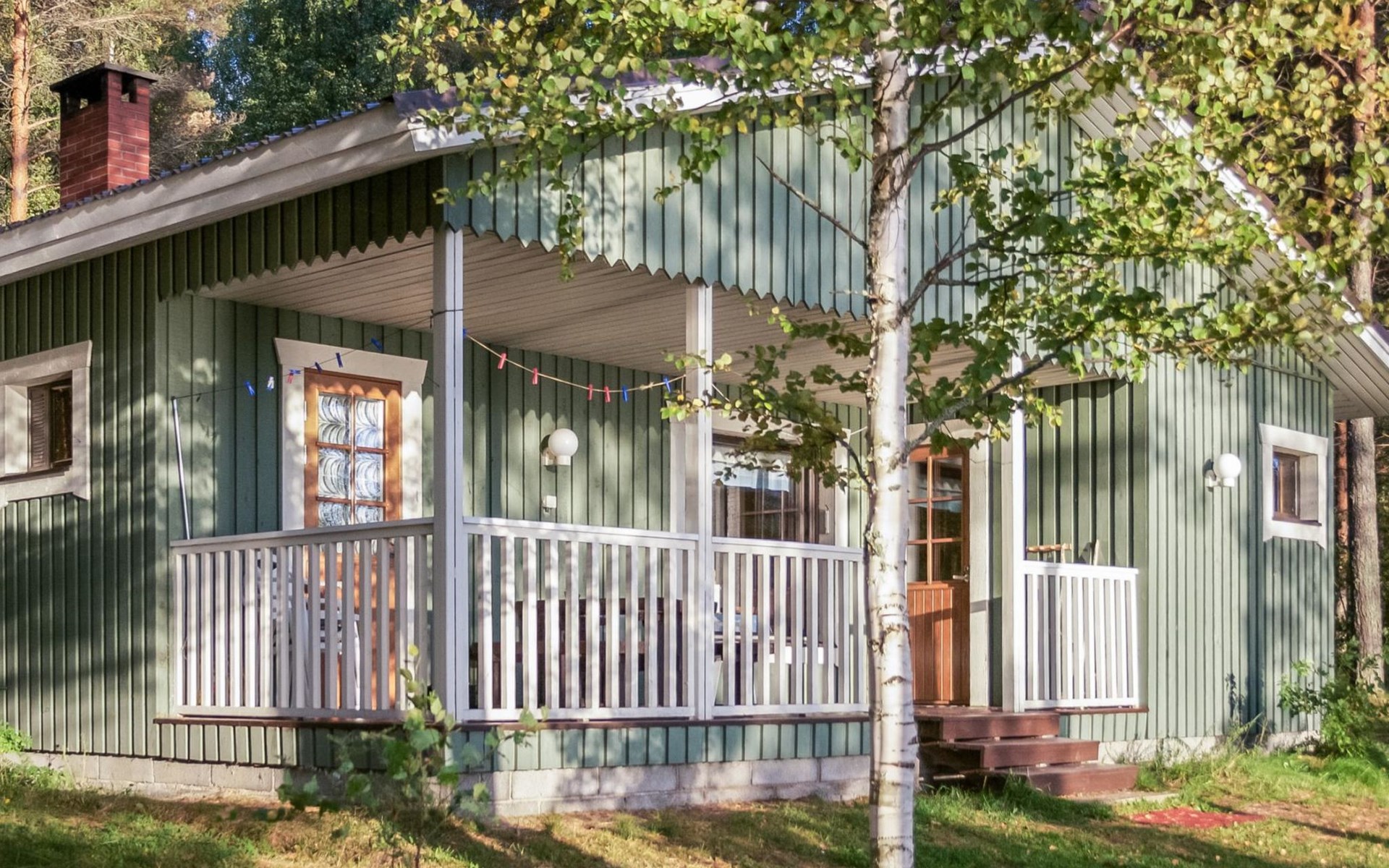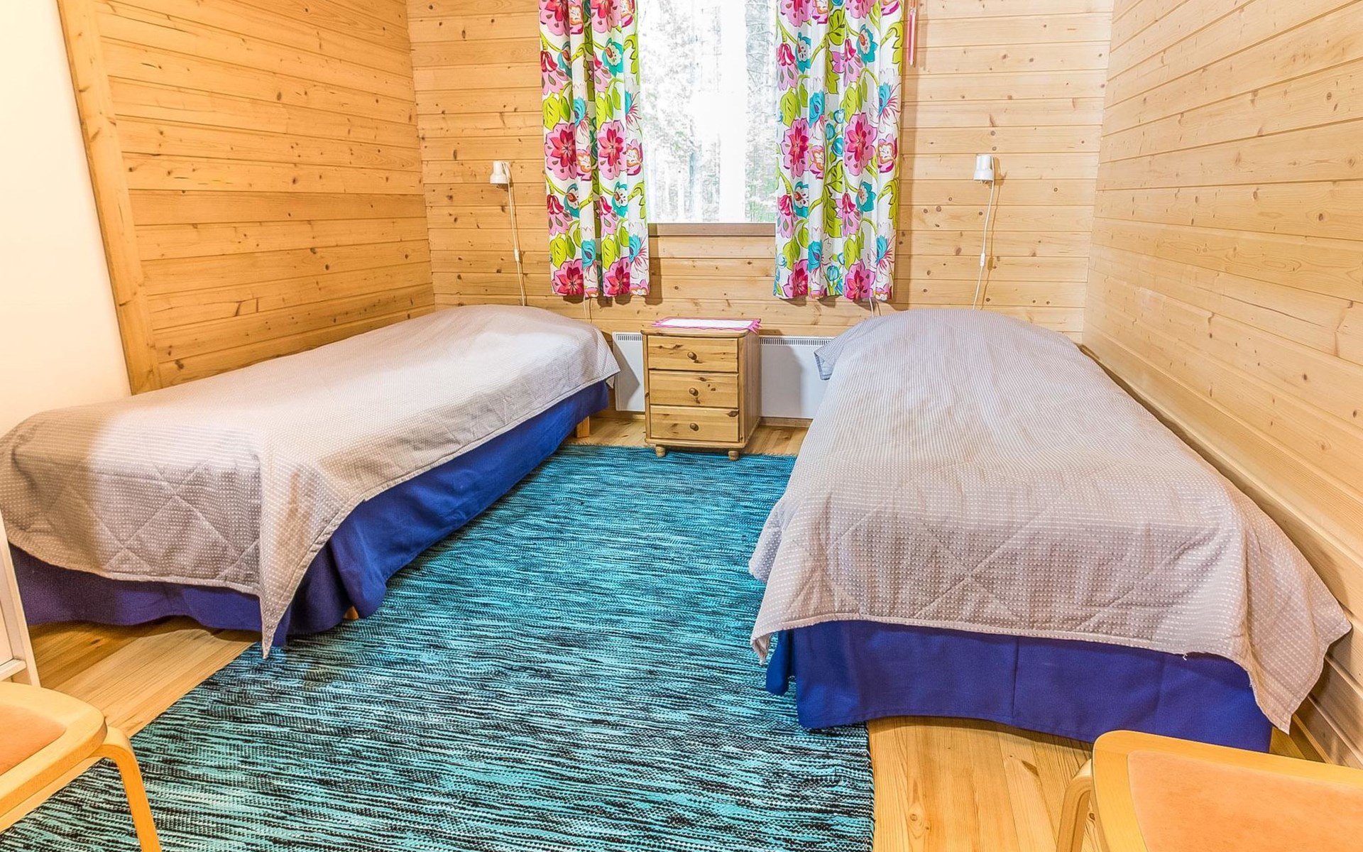 Wooden cabin 2001, renovated in 2017, extra bed for two in living room/kitchen by using spreadable bed, two bedrooms (11 m²) two beds in each, shower and WC in washroom, wood-burning sauna stove, separate WC and covered porch.