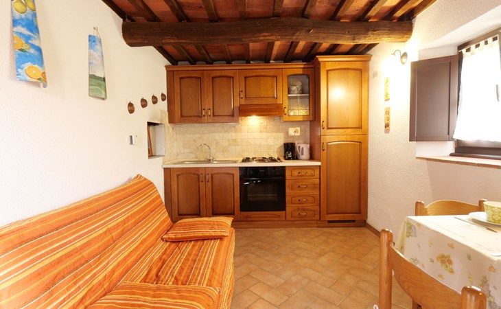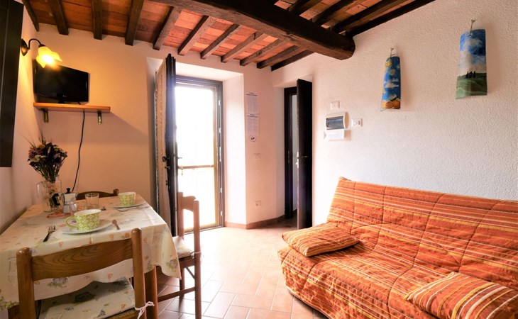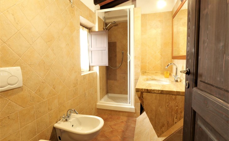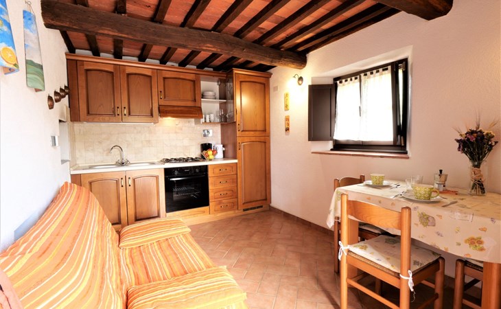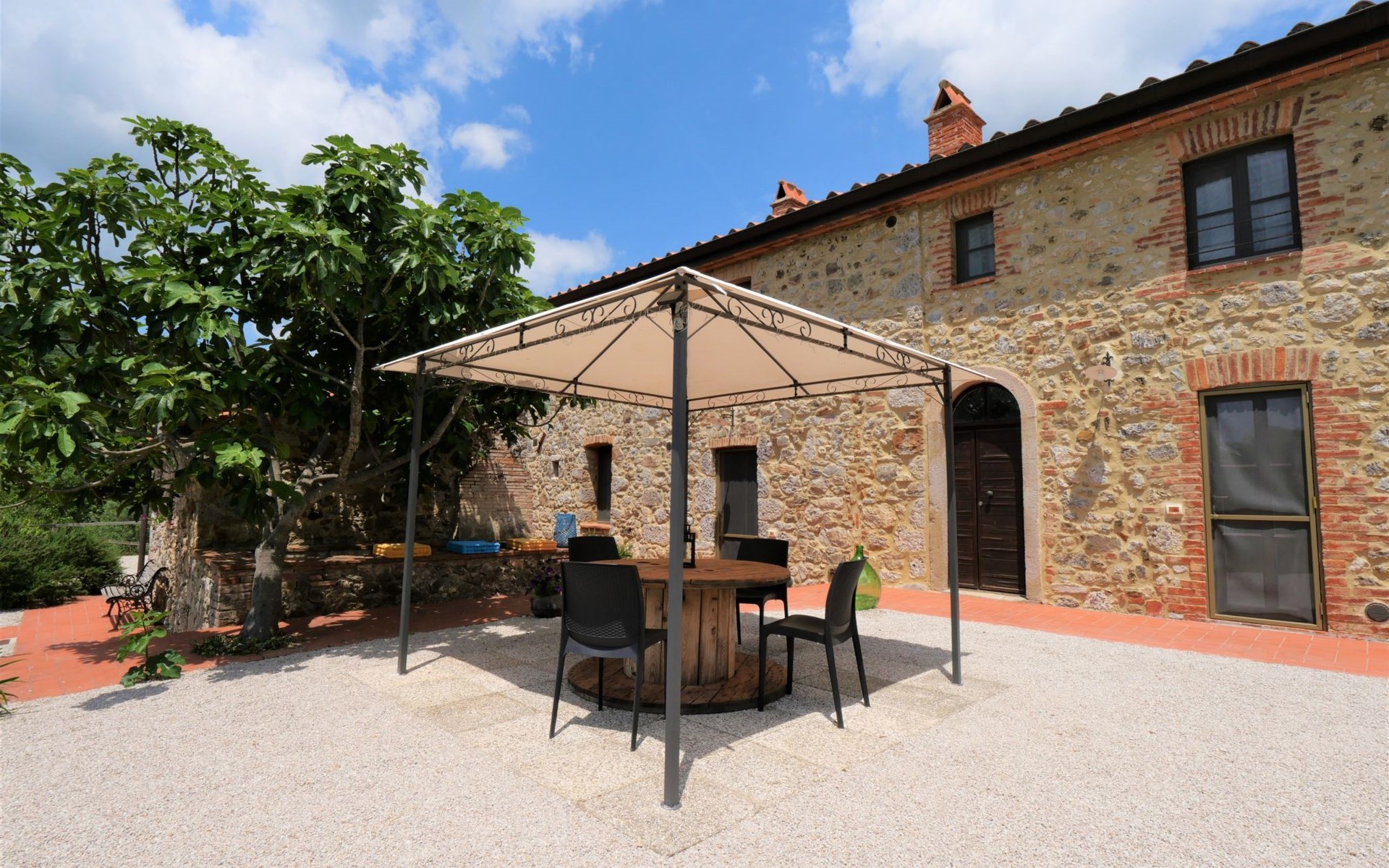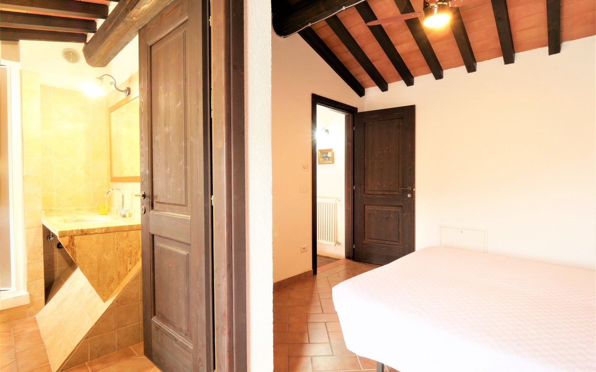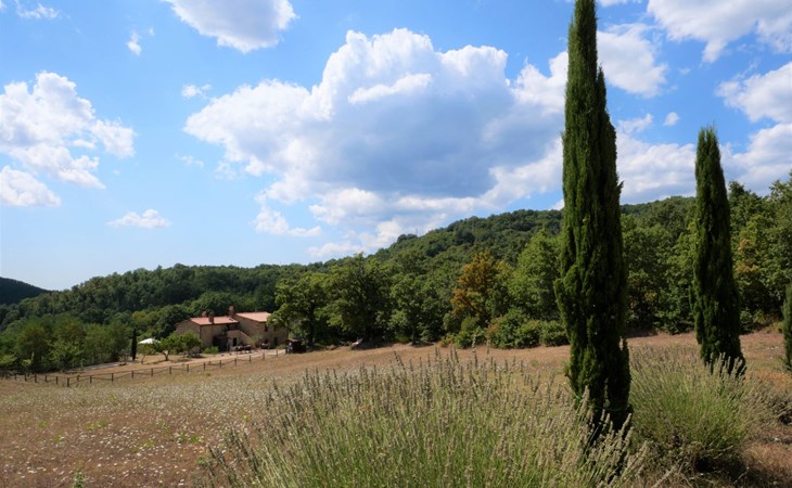 Country house "Podere Pian dei Carpini", 435 m a.s.l., detached, surrounded by trees and fields. 4 apartments in the residence. Below Prata 2.6 km from the centre of Prata, 10 km from the centre of Massa Marittima, in a secluded, quiet position, 30 km from the sea, in the countryside. For shared use: natural state property 2'000 m2 (fenced), garden with flowers and trees, meadow, swimming pool fenced (6 x 4 m, depth 120 - 130 cm, seasonal availability: 28.May. - 30.Sep.) with salt-electrolysis pool-cleaning system. Unconventional pool shape. Outdoor shower, boccia, garden furniture, barbecue. Steep motor access (700 m via unmade road). Parking (for 3 cars) on the premises. Shop 2.6 km, supermarket 10 km, restaurant 2.6 km, bicycle rental 11 km, bus stop 2 km, sandy beach 30 km. Walking paths from the house 50 m. Nearby attractions: San Galgano Abbey 22 km, Giardino dei suoni 11 km, Siena 60 km. Well-known lakes can easily be reached: Accesa 20 km. Hiking paths: Mountain-bike 7 km. Please note: the owner lives in the same residence. The owner has a dog. Small house for children and swing. The pool can be reached via an external staircase.