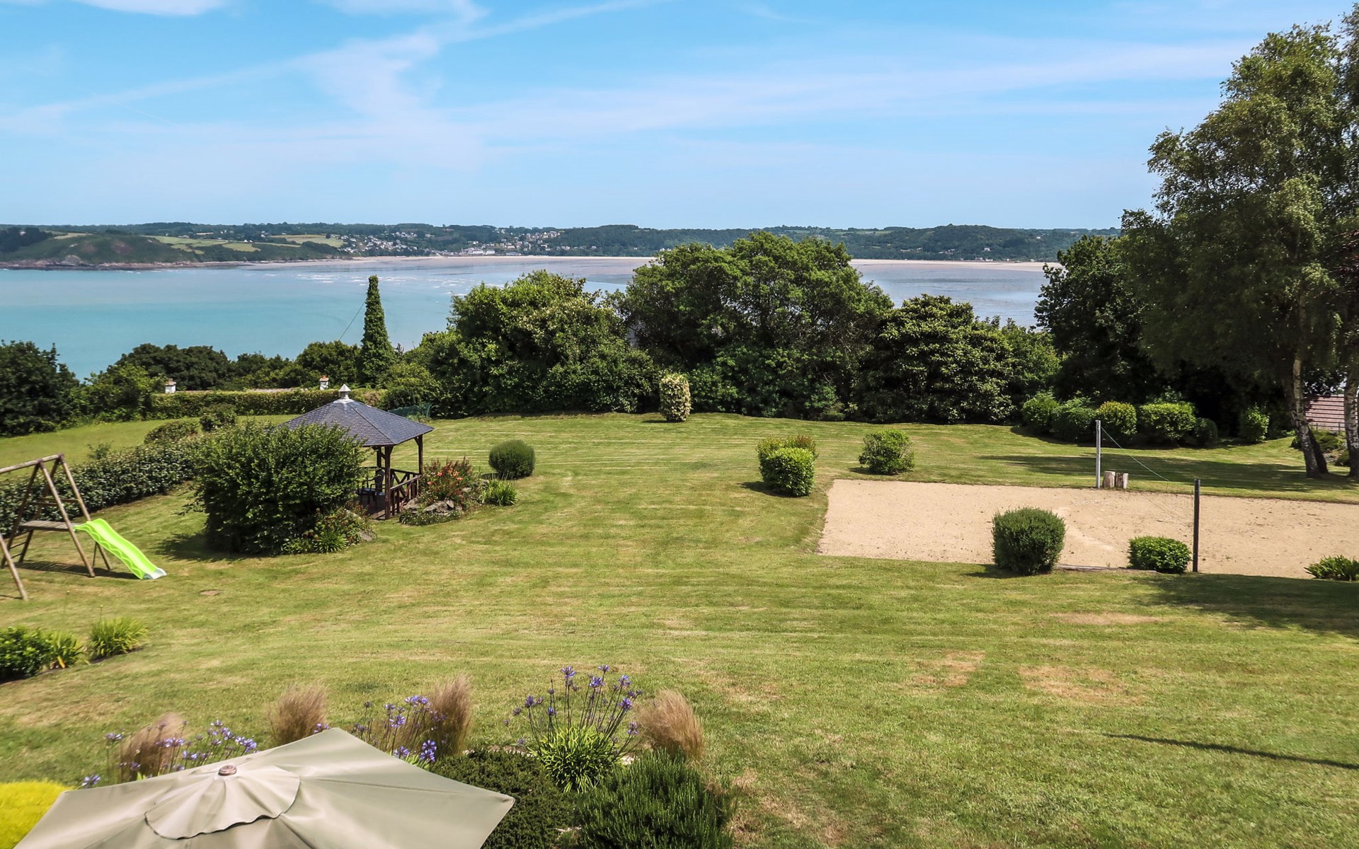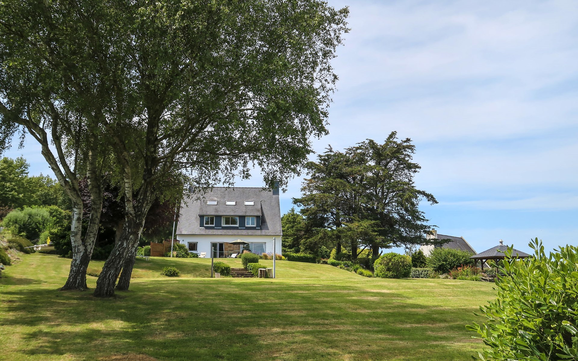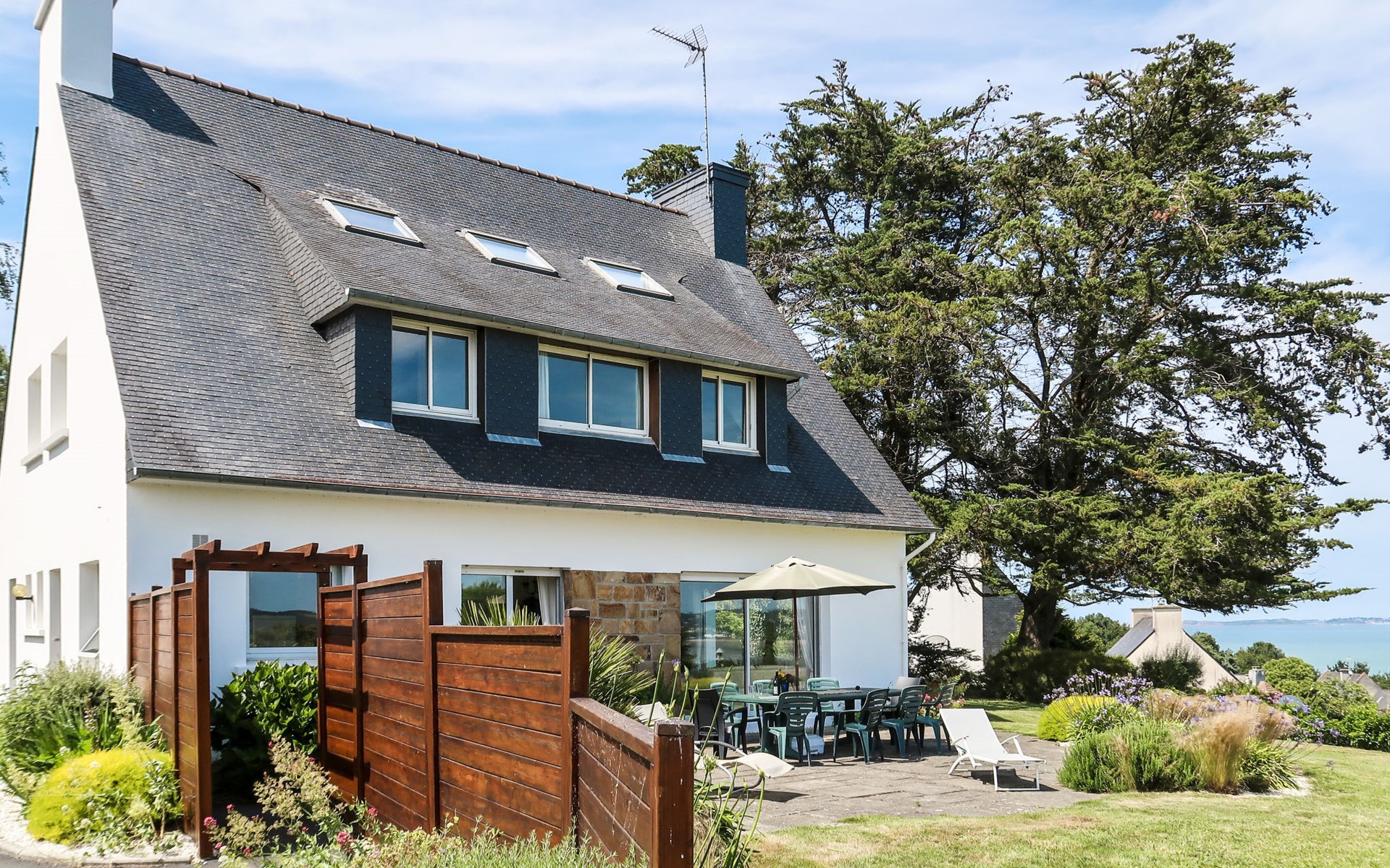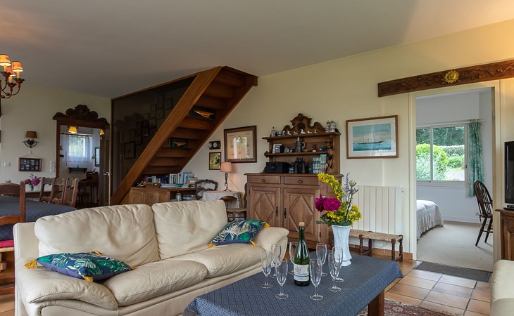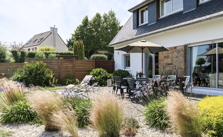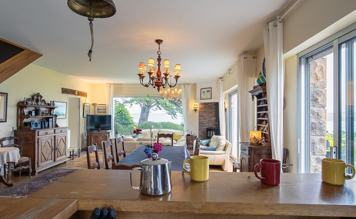 Large, beautiful, cosy single-family house "Ker Svea". 3 km from the centre of Plestin-les-Grèves, 15 km from the centre of Lannion, 17 km from the centre of Morlaix, in an elevated position on a slope, in the residential district, 500 m from the sea, 500 m from the beach. Private: large garden 4'200 m2 (not fenced) with lawn and trees. Arbour, garden furniture, children's playground (slide, swing), parking (for 4 cars) on the premises. Shop 3 km, grocery 3 km, supermarket 3.4 km, restaurant 3 km, bus stop 3 km, sandy beach "Porz Mellec" 800 m. Golf course (18 hole) 30 km, sailing school 2.8 km, tennis 5 km, walking paths from the house 800 m. Nearby attractions: Plage St. Efflam 1.5 km, Le Grand Rocher 3.7 km.