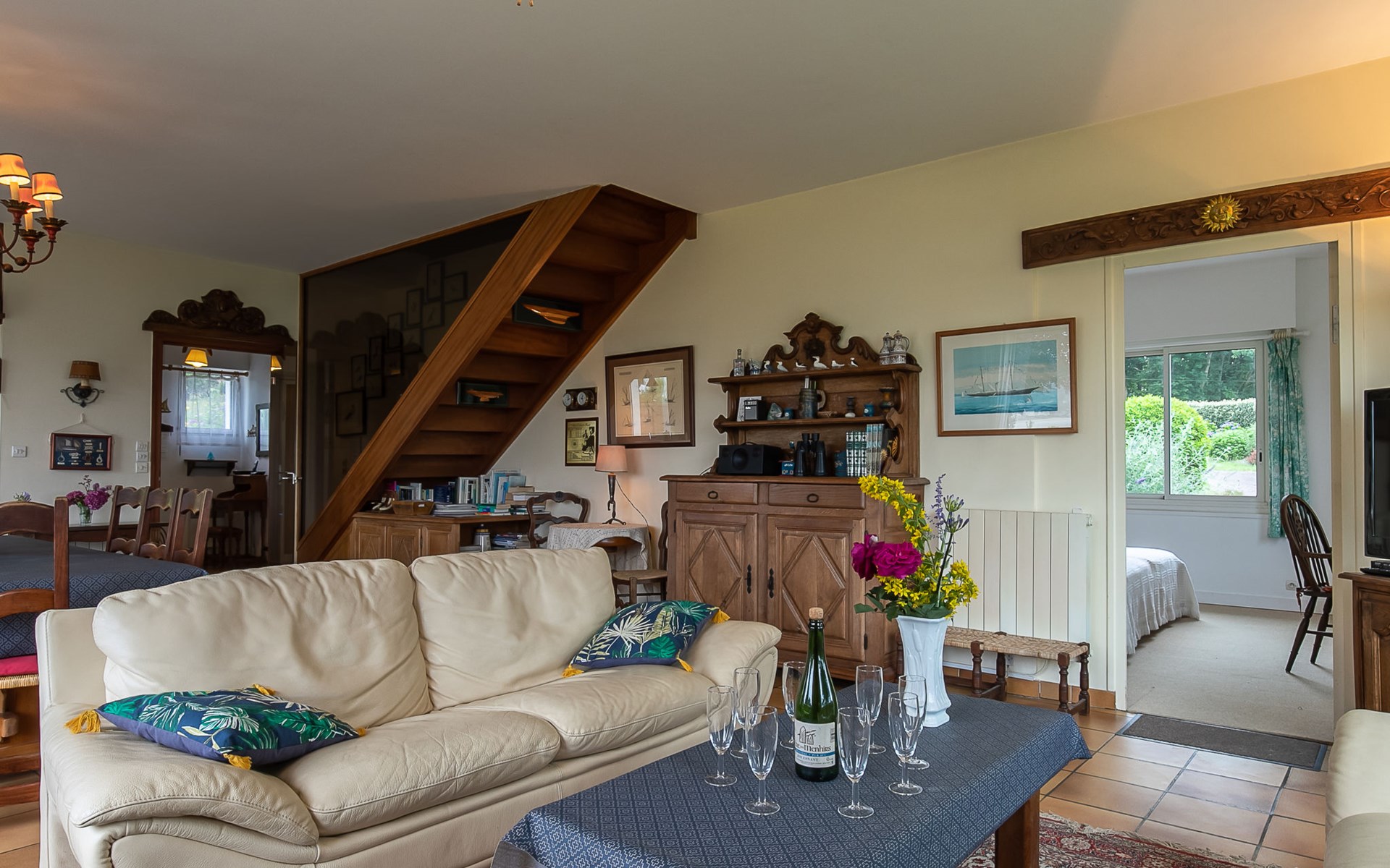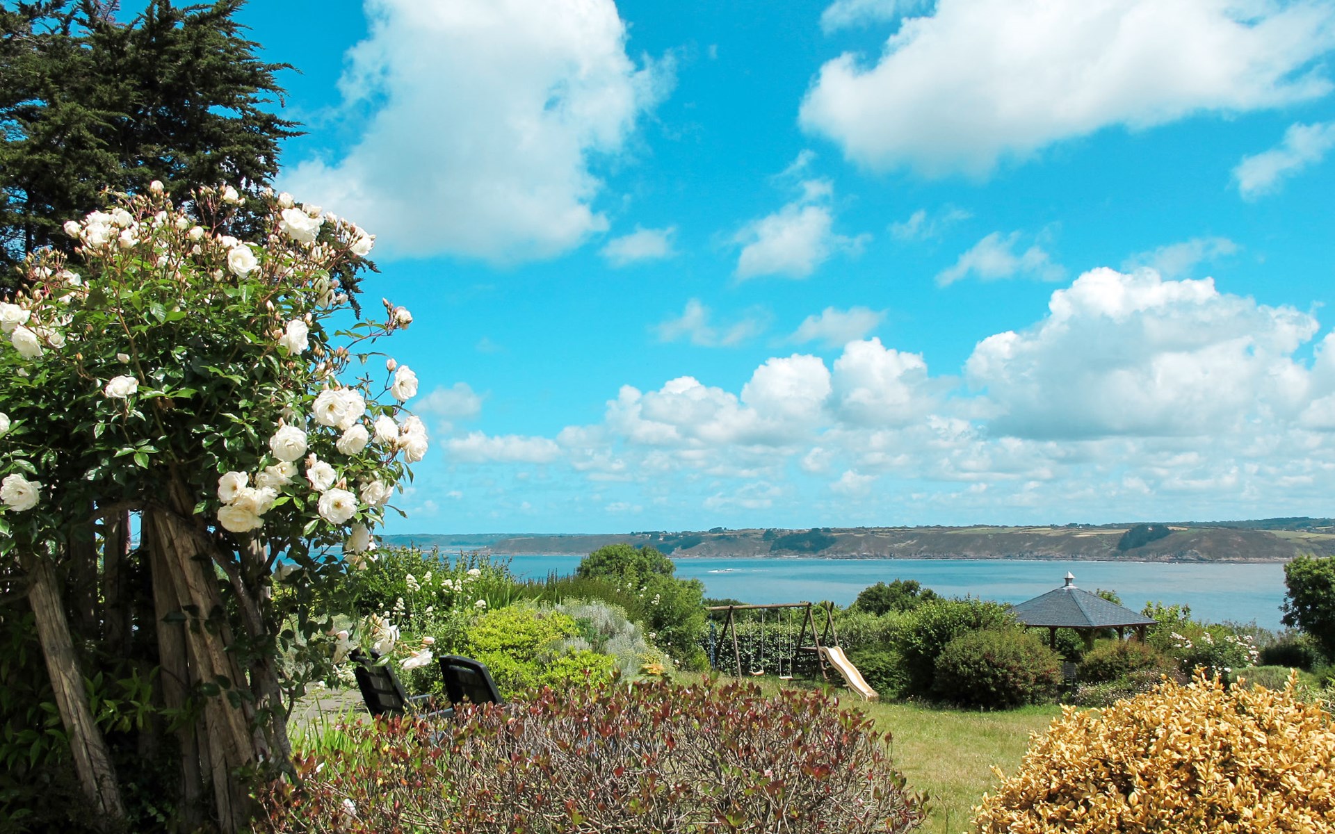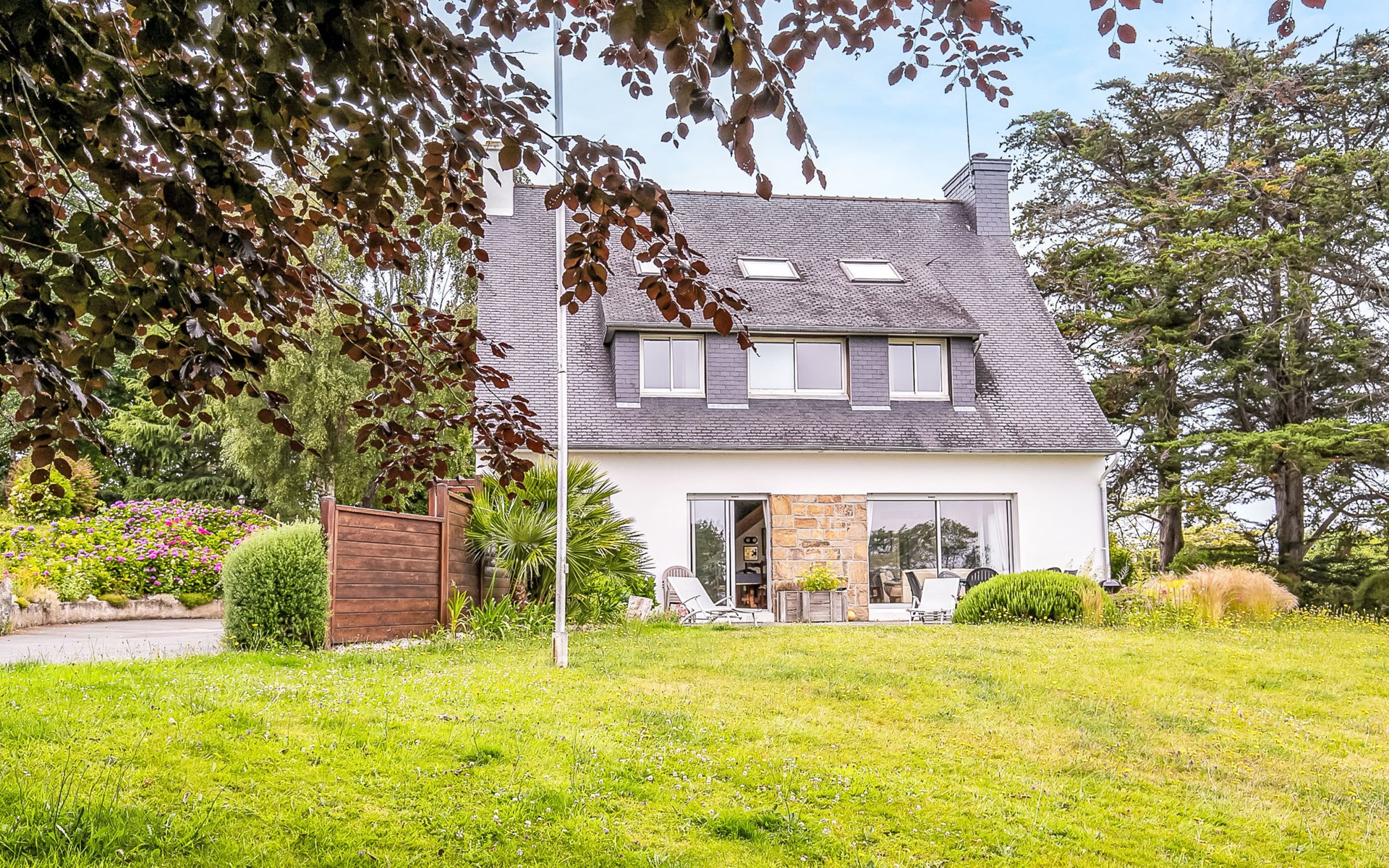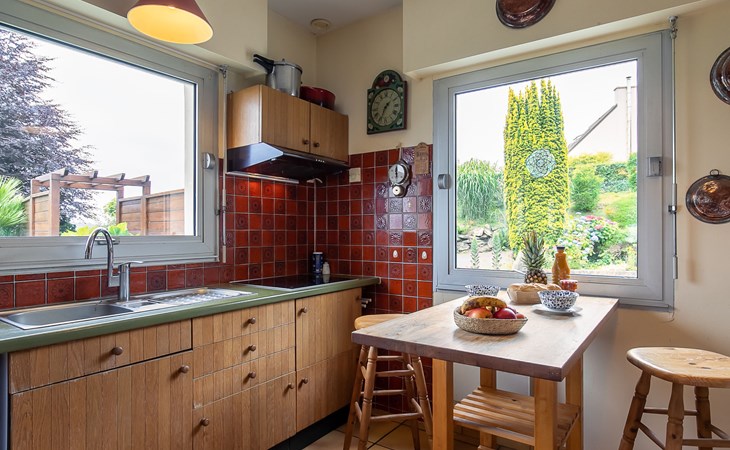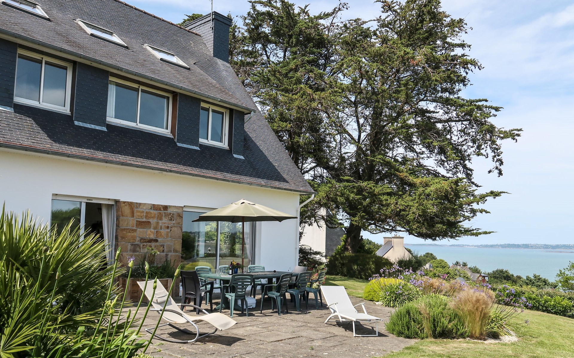 Large, beautiful, cosy single-family house "Ker Svea". 3 km from the centre of Plestin-les-Grèves, 15 km from the centre of Lannion, 17 km from the centre of Morlaix, in an elevated position on a slope, in the residential district, 500 m from the sea, 500 m from the beach. Private: large garden 4'200 m2 (not fenced) with lawn and trees. Arbour, garden furniture, children's playground (slide, swing), parking (for 4 cars) on the premises. Shop 3 km, grocery 3 km, supermarket 3.4 km, restaurant 3 km, bus stop 3 km, sandy beach "Porz Mellec" 800 m. Golf course (18 hole) 30 km, sailing school 2.8 km, tennis 5 km, walking paths from the house 800 m. Nearby attractions: Plage St. Efflam 1.5 km, Le Grand Rocher 3.7 km.