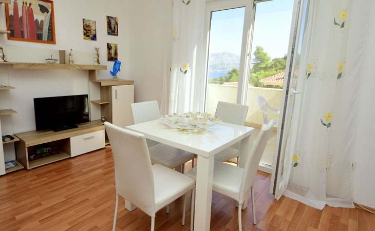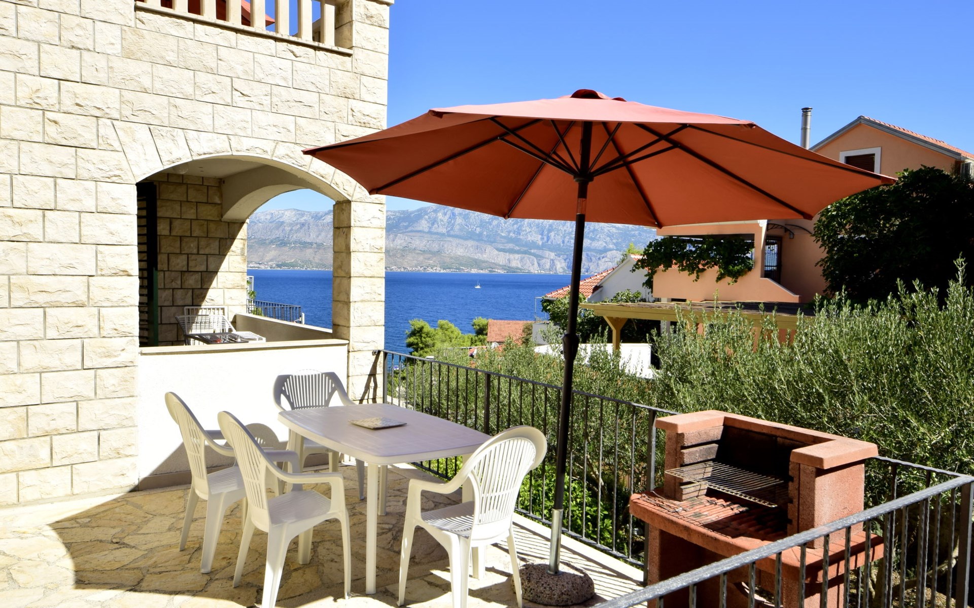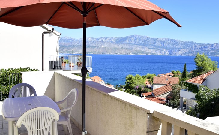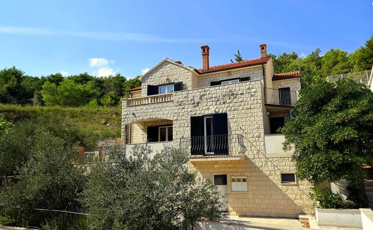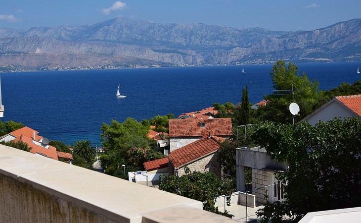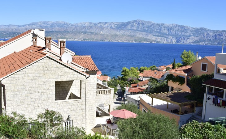 Single-family house "Villa Bay View", 2 storeys. 900 m from the centre of Postira, in a sunny, elevated position, 270 m from the sea, 270 m from the beach, in a cul-de-sac. Private: property 500 m2. Terrace (16 m2), garden furniture, barbecue. In the house: internet access, washing machine. Parking (for 6 cars) at the house on the premises. Shop 430 m, restaurant 900 m, bus stop 1.8 km, pebble beach 270 m. The house consists of 3 apartments rented as one unit: one apartment on the ground floor and two apartments on the first floor.