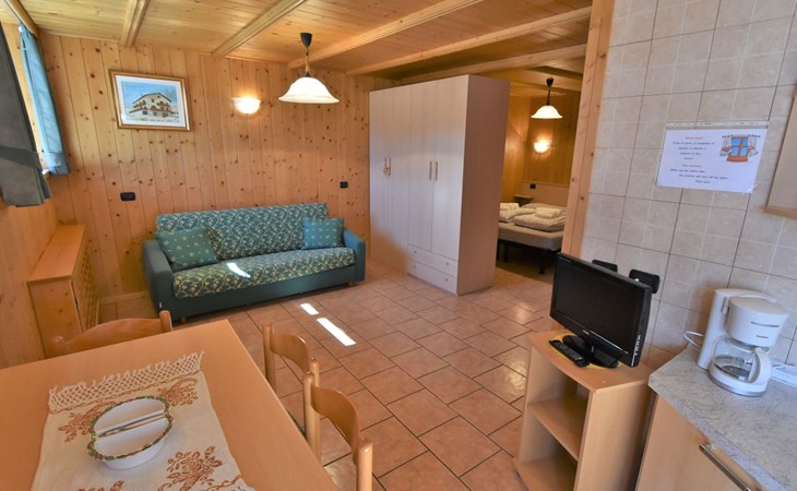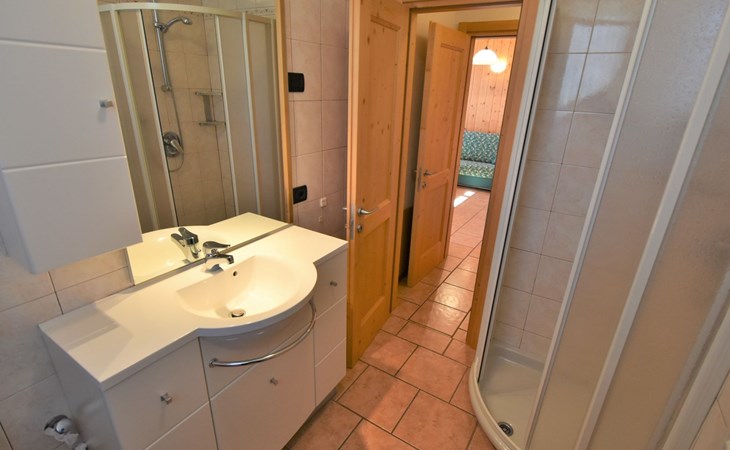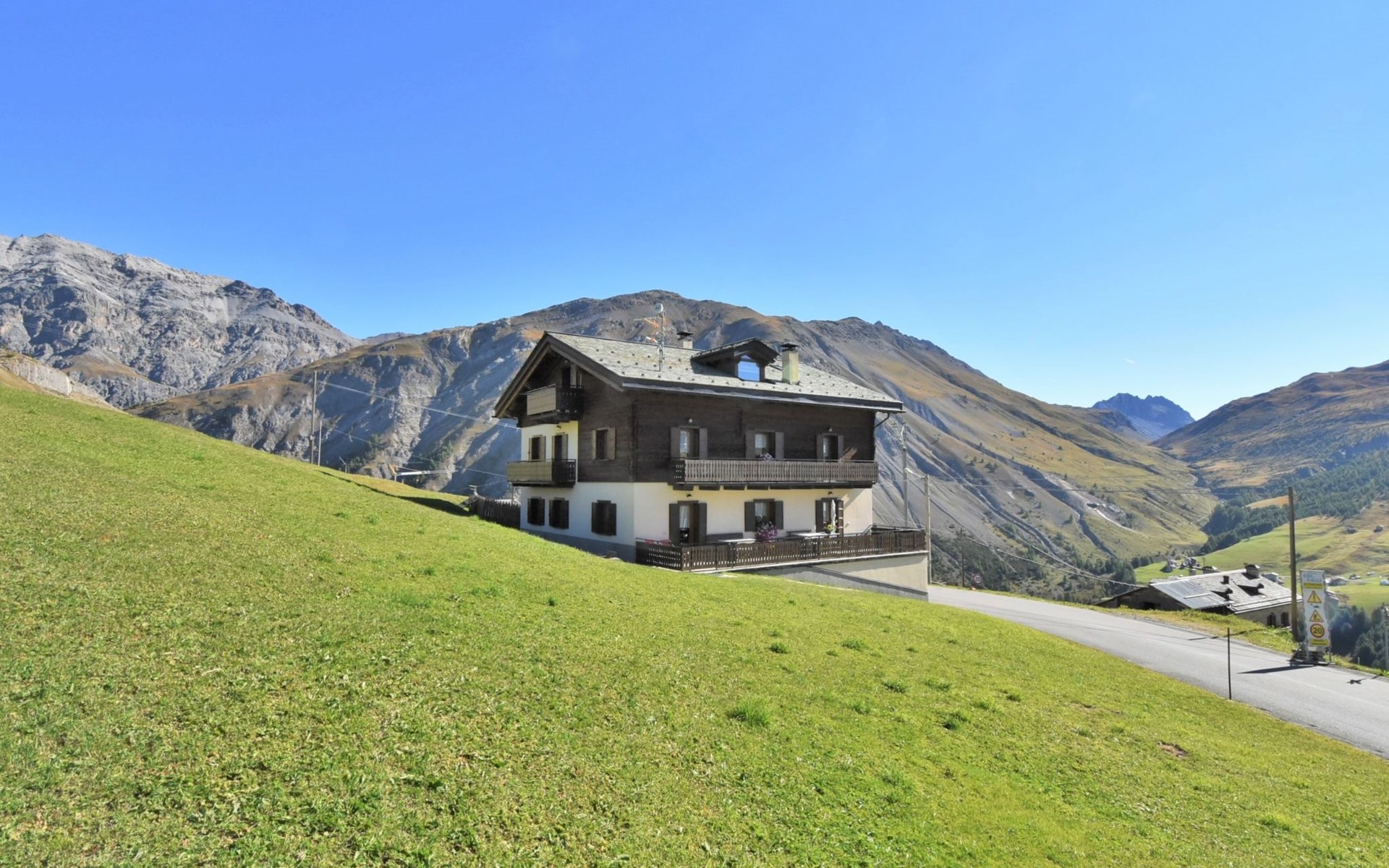 Small, beautiful apartment house "Casa Crapena", 2'096 m a.s.l., 2 storeys, detached, surrounded by meadows. 4 apartments in the property. In the hamlet Trepalle, 7.5 km from the centre of Livigno, 30 km from the centre of Bormio, in a quiet, sunny position on a slope, 300 m from the skiing area, south facing position. Parking on the premises. Shop 2 km, indoor swimming pool 9.7 km. Ski lift 1 km, chair lift 1 km, ski bus stop 500 m. Please note: In case of good snow conditions, the house is accessible on skis. The owner lives on the same property.