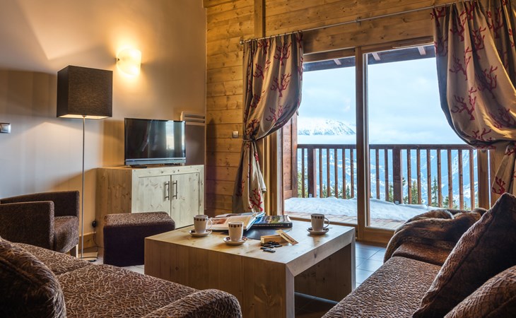 Beautiful, rustic, comfortable residence "CGH Rés&Spa Chalet les Marmottons". 2 houses in the residence. 33 apartments in the residence. 300 m from the centre of La Rosière Montvalezan, on the outskirts, 30 km from the centre of Bourg St. Maurice, 66 km from the centre of Albertville, directly by the skiing area. In the complex: reception, lounge, WiFi, lift, storage room for skis, washing machine, tumble dryer (extra), ski boot dryer. Bread roll service. Storeroom available. Communal covered parking (extra). Parking space or garage only for small to medium-sized cars. Dimension: height 180 cm. Shop, supermarket, restaurant 300 m, bar, railway station "Bourg Saint Maurice" 20 km. Golf course (9 hole) 1.5 km, ski lift 500 m, slopes, ski rental 500 m, ski school. Well-known ski regions can easily be reached: Espace San Bernardo. Please note: baby equipment on request (included). The photograph shows a typical example. The holiday properties may differ in living space, floorplan, equipment and furnishing.