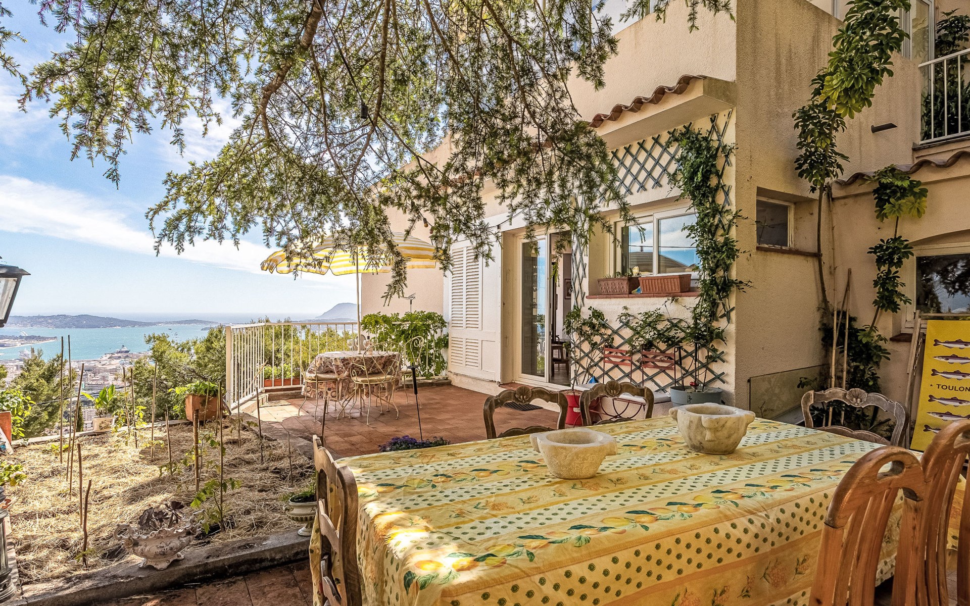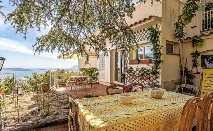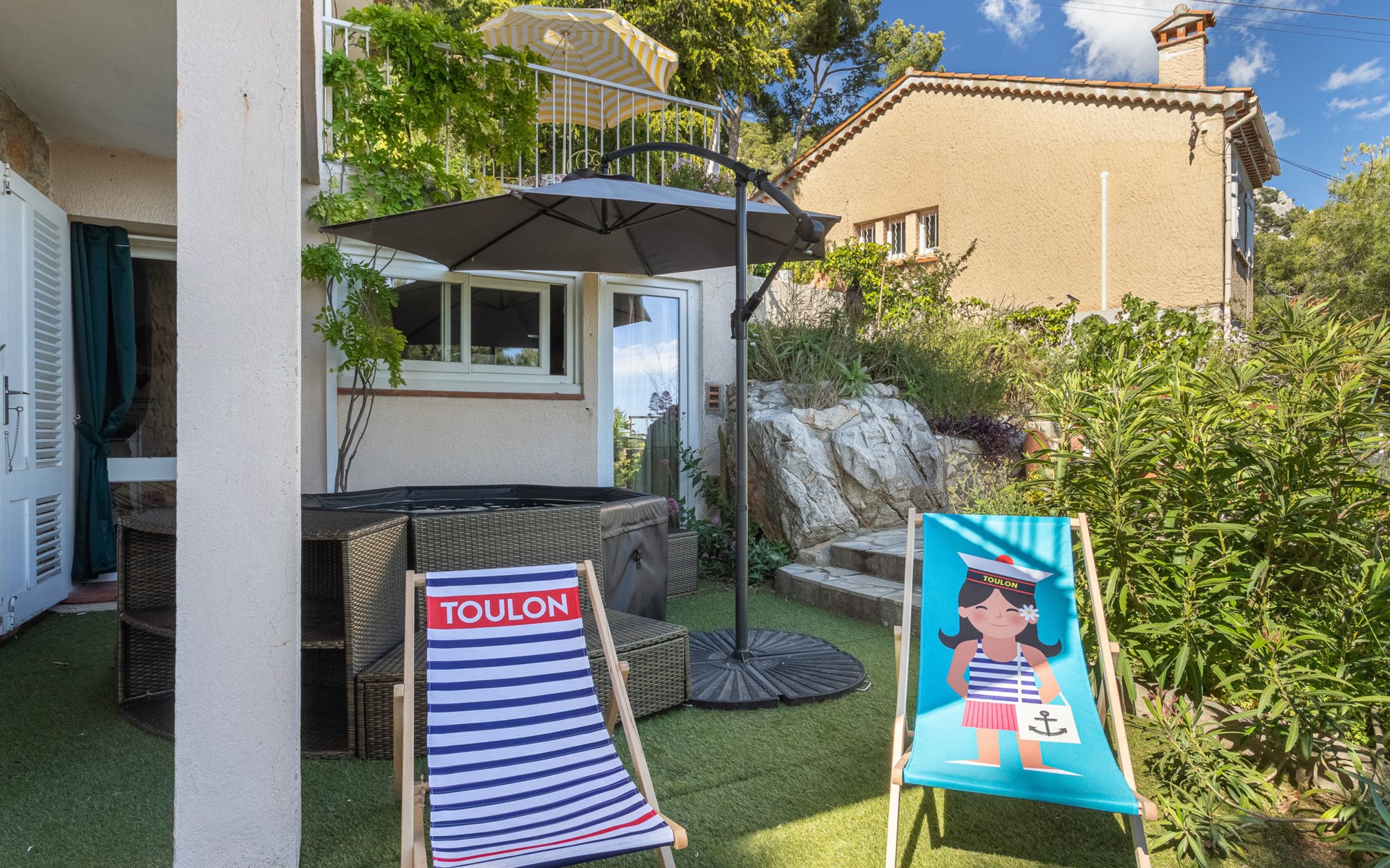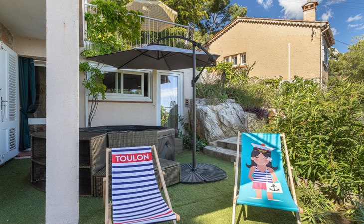 Terraced house "L Angelus", built in 1950, renovated in 2024. 3.5 km from the centre of Toulon, 13 km from the centre of Sanary sur Mer, 20 km from the centre of Hyeres, 6 km from the sea, 4 km from the beach. Private: terraced garden. Hot tub. 100 m long steep, narrow motor access (ramp). Parking on the premises, public parking on the road. Shop 2.5 km, supermarket 2 km, restaurant 2 km, bakery 2.5 km, café 2.5 km, bus stop 800 m, railway station "Toulon" 3.2 km, ferry "Toulon" 4.5 km, sandy beach "Le Mourillon" 6 km. Nearby attractions: telepherique Mont Faron 1.5 km, Parc animalier du Mont Faron 8.5 km, Hyeres, Iles des Embiez, Porquerolles, Musee national de la Marine, Presqu'île de Giens. Please note: car recommended. Part of the house is closed and unoccupied.