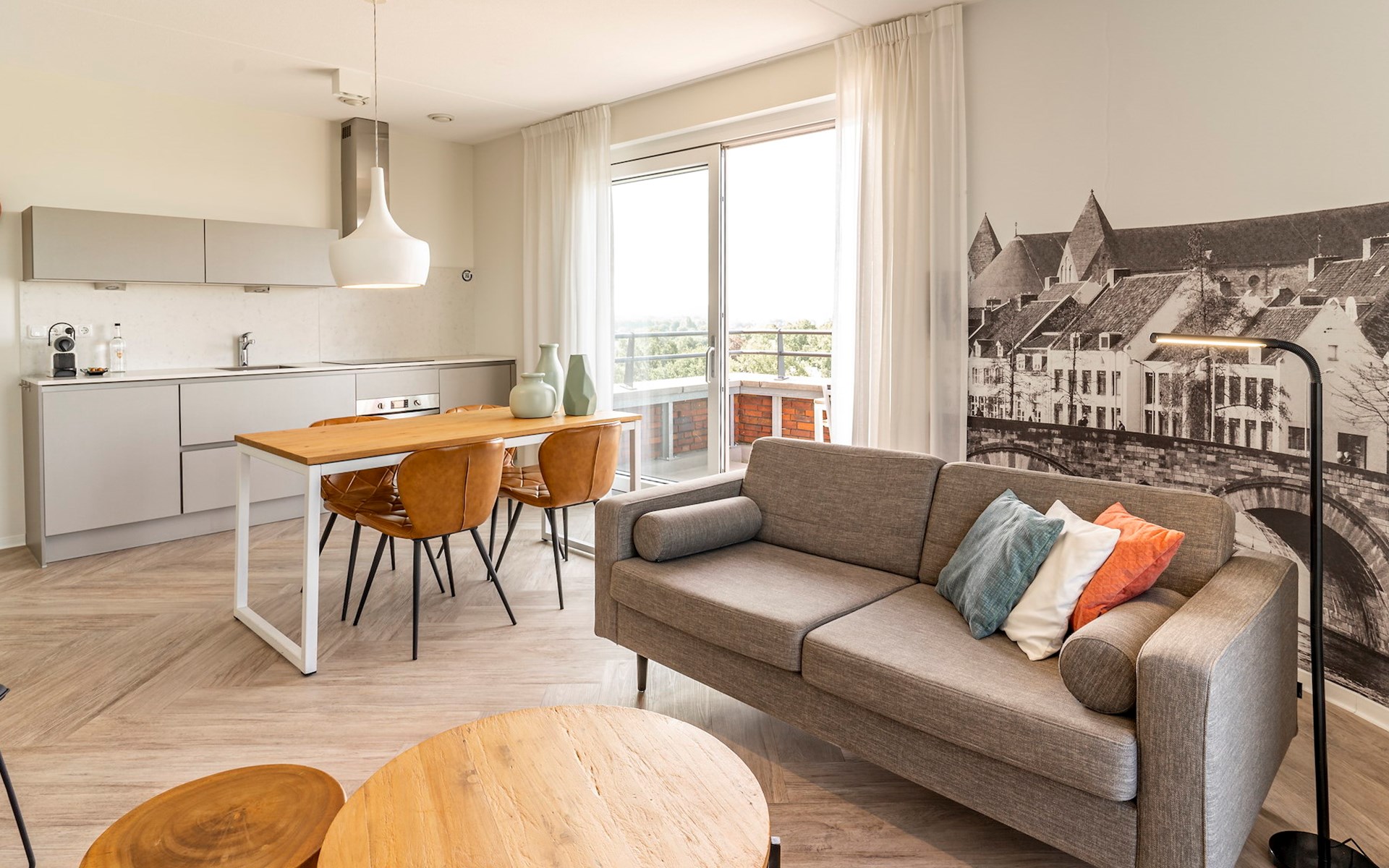 This Apartment Prestige Panorama offers a beautiful view over Limburg’s hilly landscape, the adjacent golf course and the Wilhelmus square. Dormio Resort Maastricht's eateries, reception and bicycle hire are located on this lively square. You will also find a luxury spa and wellness centre here. As a guest of Dormio Hotel De Prins van Oranje, you can use the extensive facilities at Dormio Resort Maastricht free of charge.