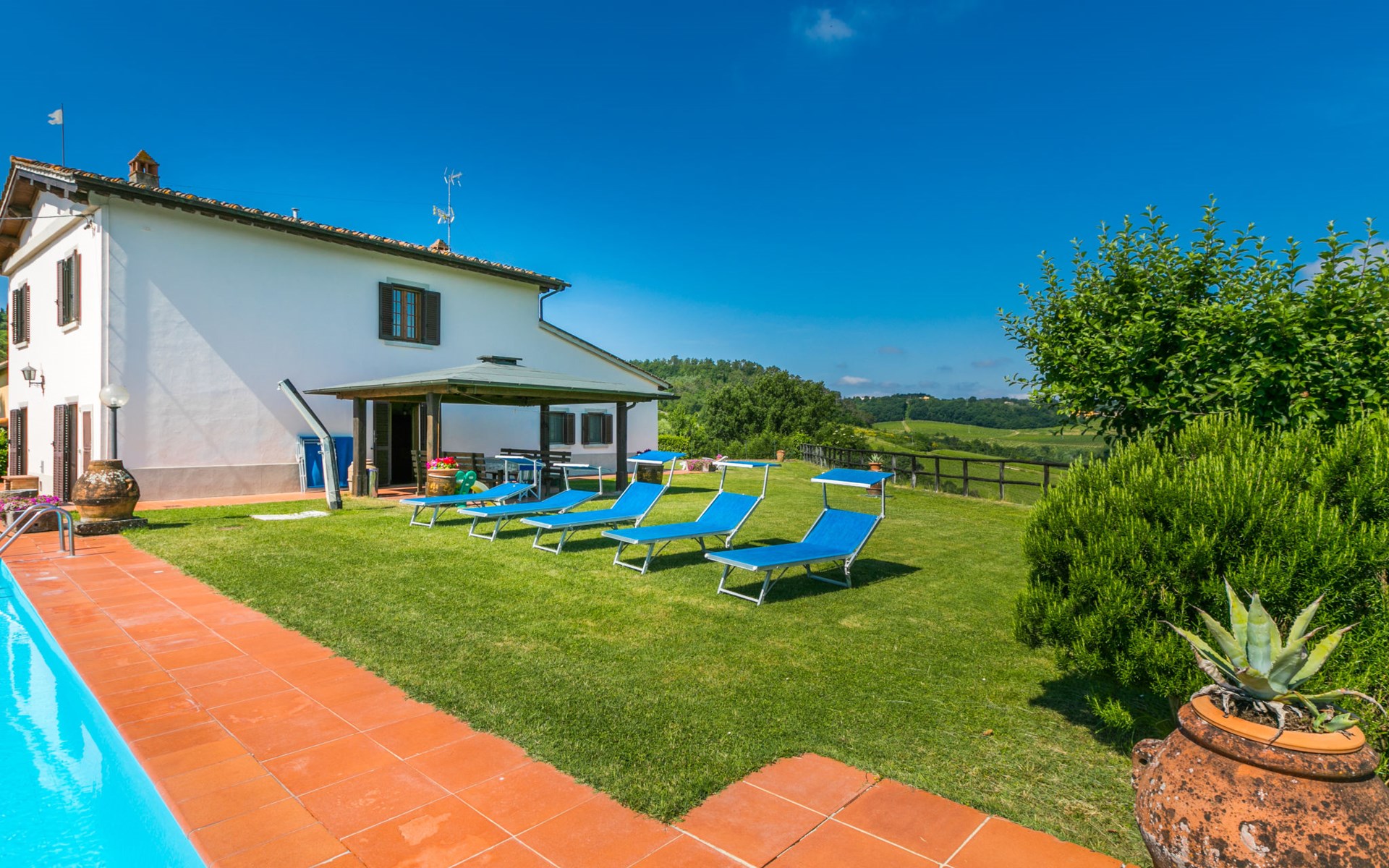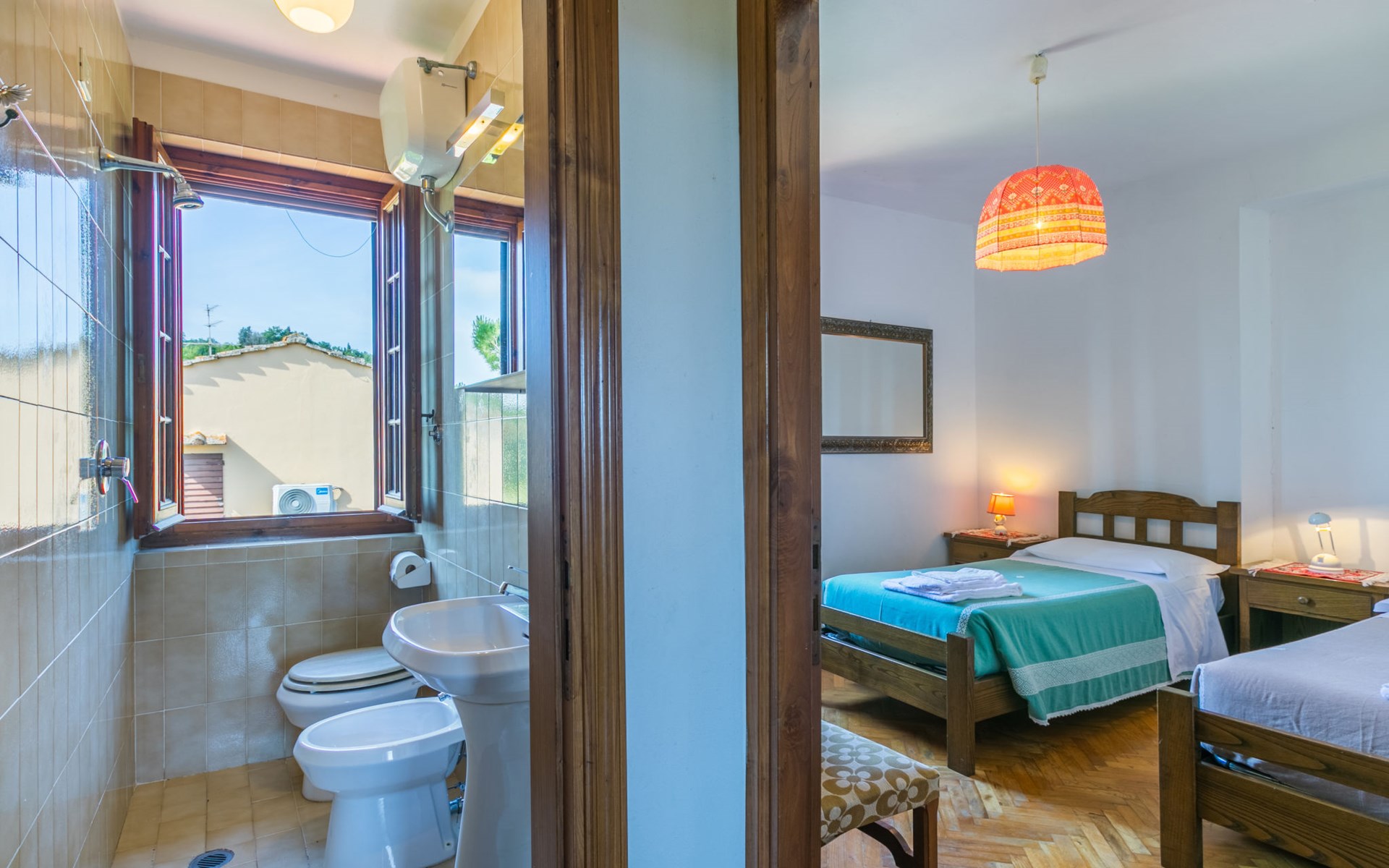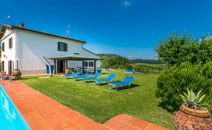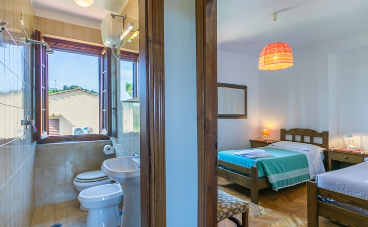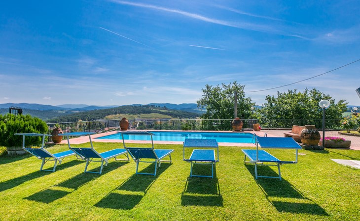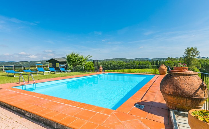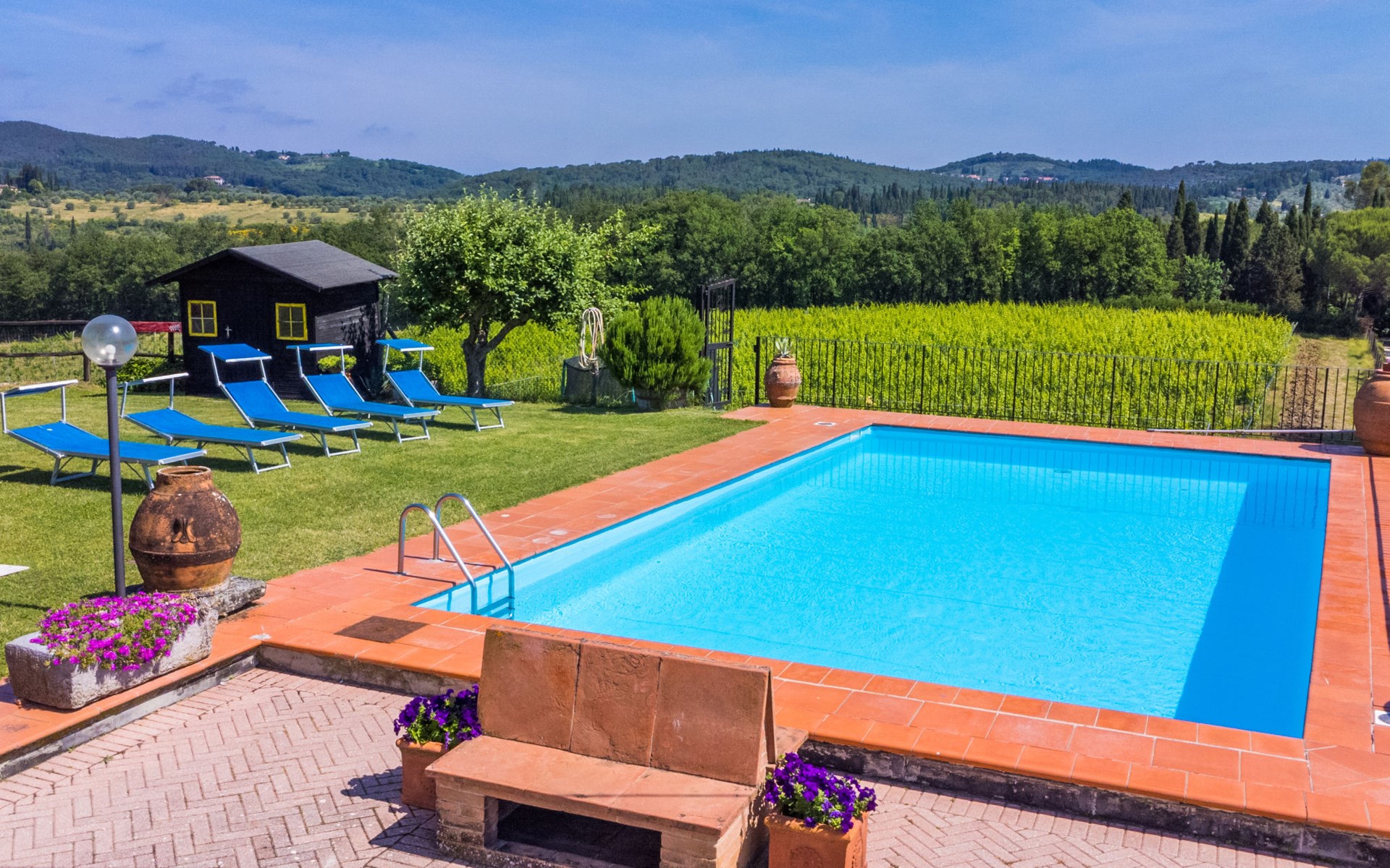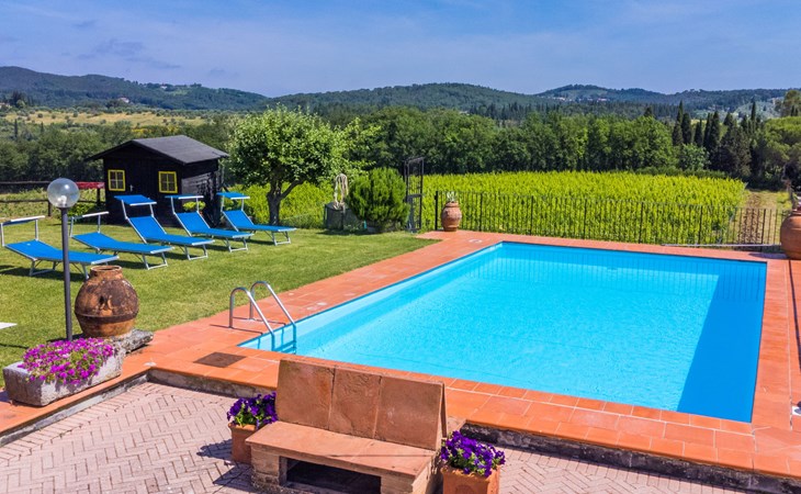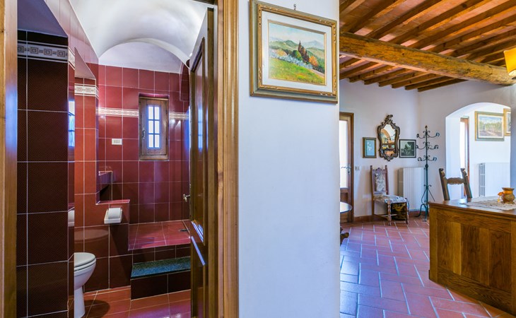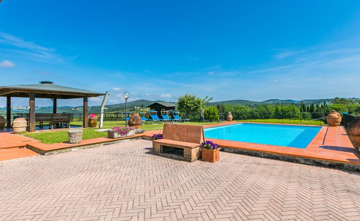 Independent farmhouse, recently renovated, situated in the hills near the small village of Mercatale Val di Pesa (2 km.), only 20 km from Florence, an ideal place for visiting the Chianti Classico area between Florence and Siena. The rooms are simply and functionally furnished. Country house "Il Poggetto". 3.2 km from the centre of Mercatale in Val di Pesa, 29 km from the centre of Firenze, 60 km from the centre of Siena, in a quiet, sunny position, in the countryside. Private: garden 300 m2, swimming pool (6 x 12 m, depth 185 - 120 cm, seasonal availability: 03.May. - 27.Sep.). Pergola, barbecue. In the house: internet access, heating to be paid on the spot, heating available only from 01.Nov. - 07.Apr.. Motor access to the house (1.5 km via unmade road). Parking on the premises. Shop 2 km, bus stop 1.5 km, railway station "Firenze S.M.Novella" 20 km. Golf course (18 hole) 18 km. Nearby attractions: San Casciano in Val di Pesa 8 km, Badia a Passignano 12 km, Greve in Chianti 16 km, San Donato 18 km, Barberino Val D'elsa 19 km, San Gimignano 40 km. Local sale of farm products.