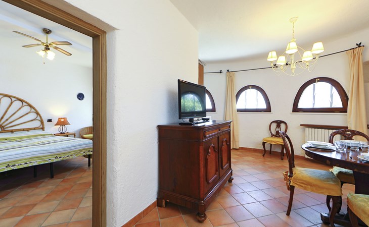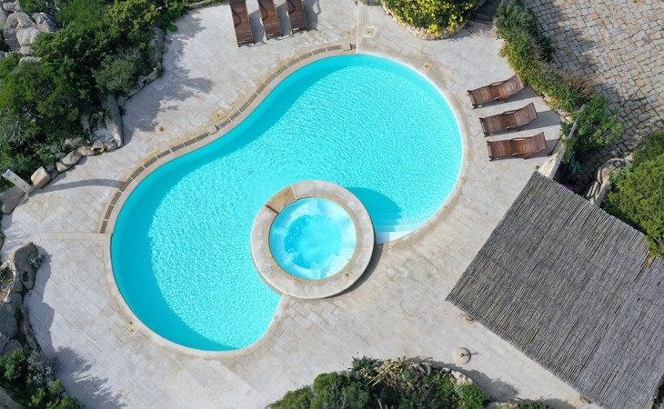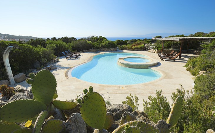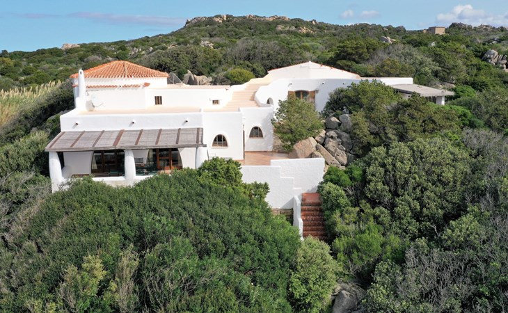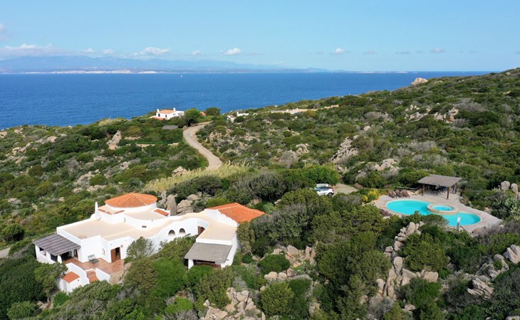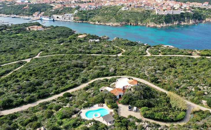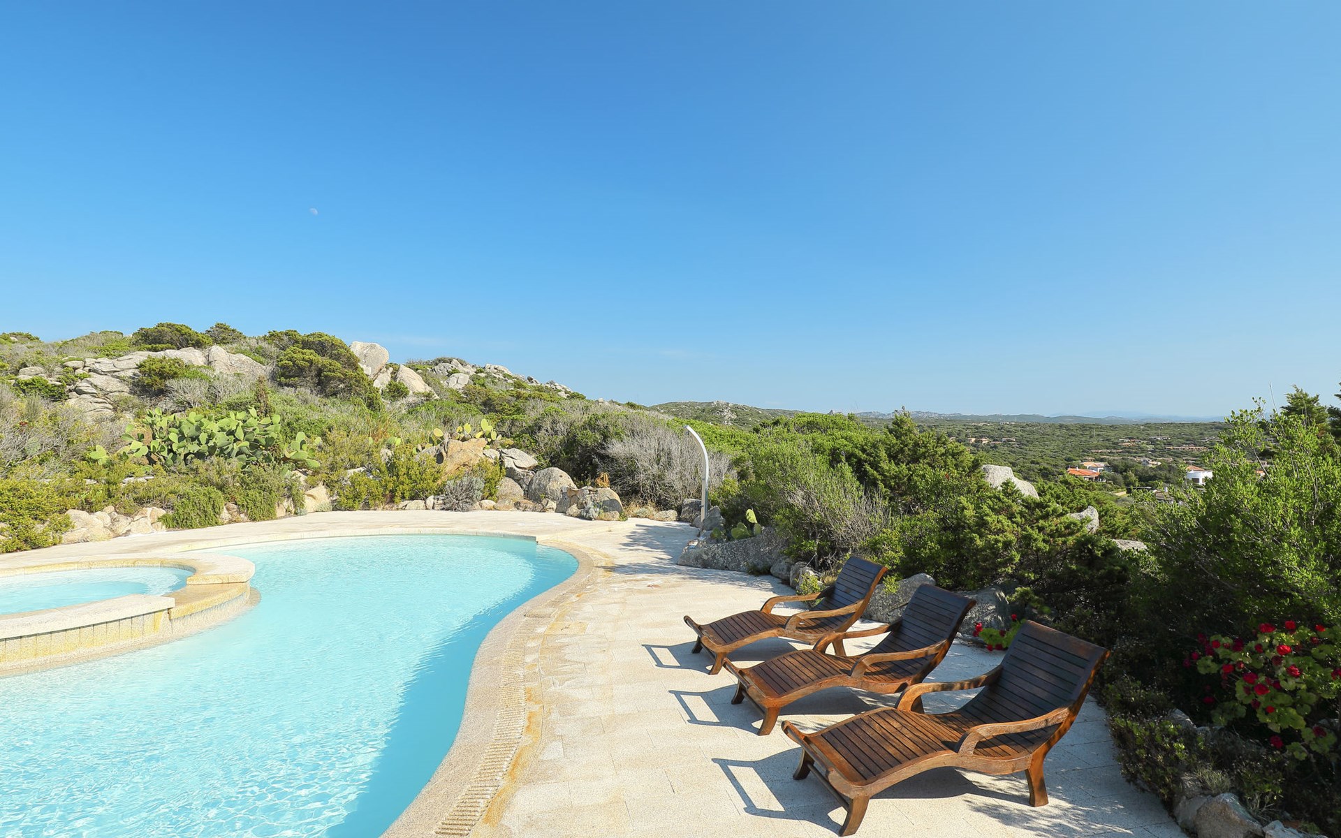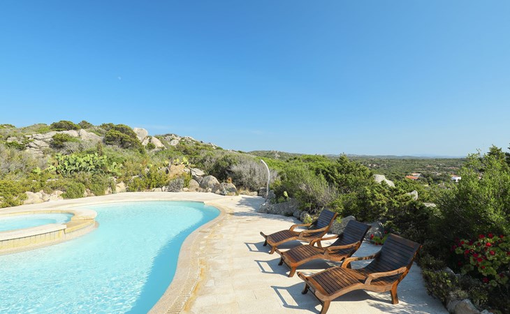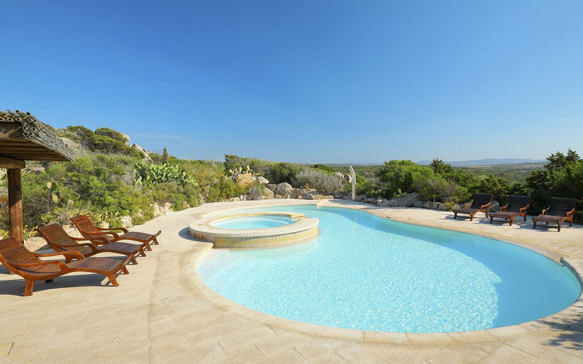 Beautiful villa "Bianca", detached. Property composed of main house and outbuilding, in the district of Terravecchia 2 km from the centre of Santa Teresa, 24.5 km from the centre of Palau, 61 km from the centre of Olbia, in a sunny, elevated position on top of a hill, 1.5 km from the sea, in the countryside. Private: large terraced garden, 5'000 m2 (not fenced) with wildlife garden and trees, swimming pool kidney shaped (10 x 4 m, depth 130 - 200 cm, seasonal availability: 01.Apr. - 31.Oct.). Outdoor shower, hot tub, pergola, terrace, garden furniture, barbecue. In the house: WiFi, washing machine. 40 m long bumpy motor access to the house (via unmade road). Stepped path to the house. Parking on the premises. Supermarket 2 km, restaurant 1.5 km, bus stop 2 km, ferry "Olbia" 68 km, sandy beach "Rena Bianca" 4 km, swimming bay 1.5 km. Marina 1.5 km. Please note: car recommended.