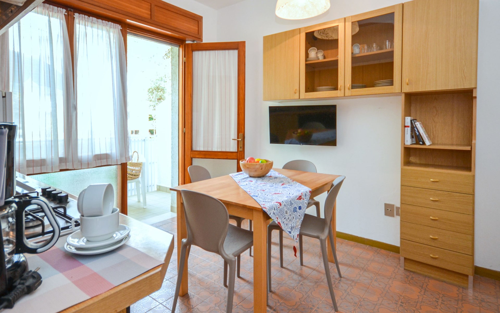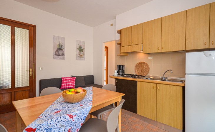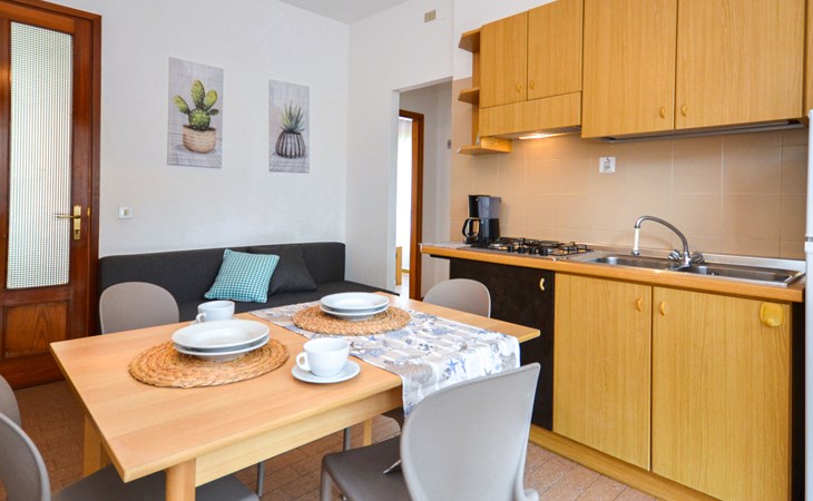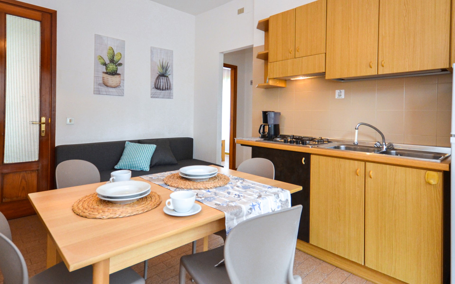 House "Villa Rosanna", 3 storeys. 9 apartments in the residence. In the district of Pineta 1 km from the centre of Lignano-Pineta, 13 km from the centre of Bibione, 95 km from the centre of Trieste, 80 m from the sea. For shared use: property (fenced) with plants. In the house: washing machine (for shared use). Parking on the premises. Parking space or garage only for small to medium-sized cars. Dimension: width 230 cm. Shop, bus stop 400 m, railway station "Latisana" 20 km, sandy beach 80 m. Golf course (18 hole) 4.5 km. Beach service: From approx. the beginning of May to approx. mid-September, 1 sun lounger, 1 deck chair and 1 parasol per accommodation unit are included in the rental price.