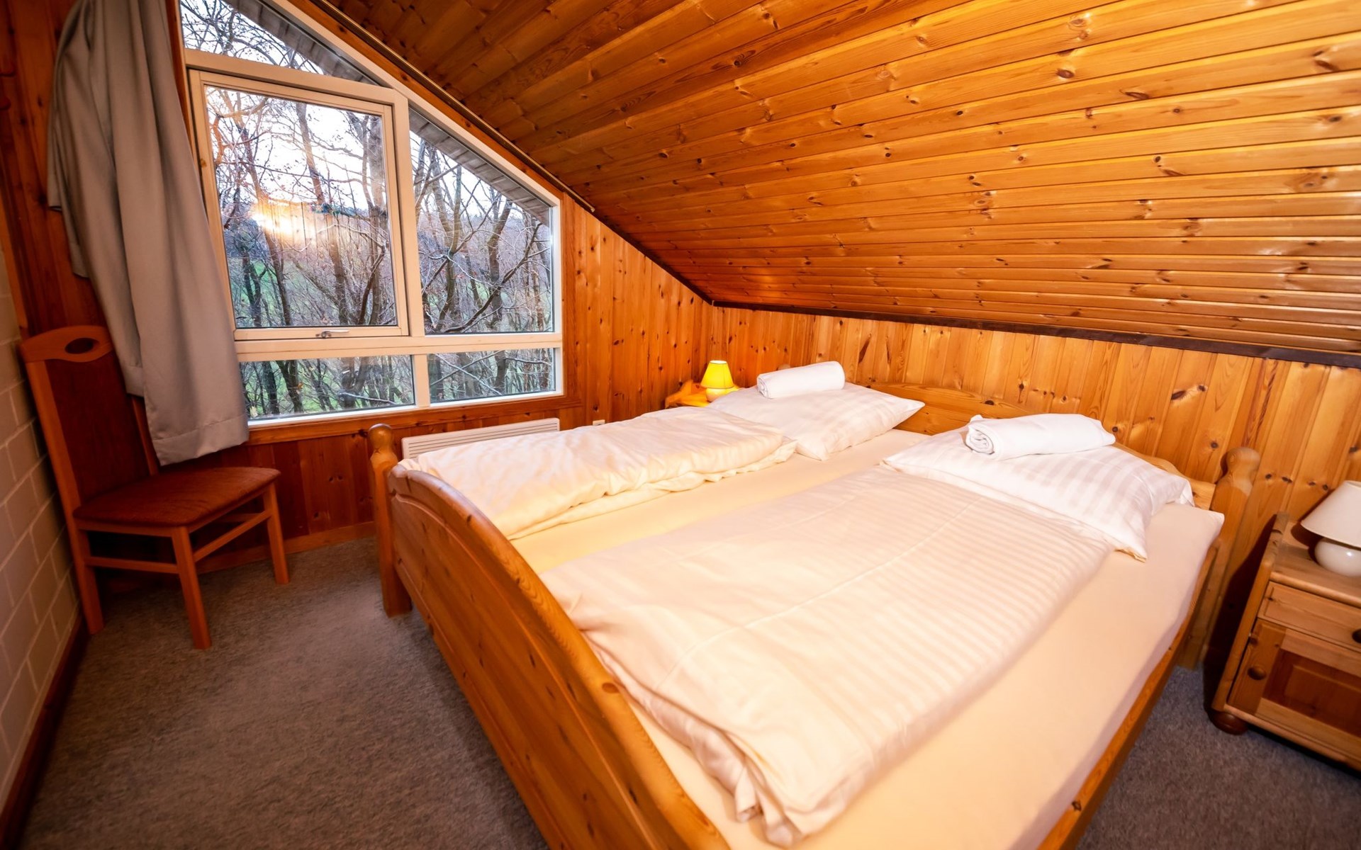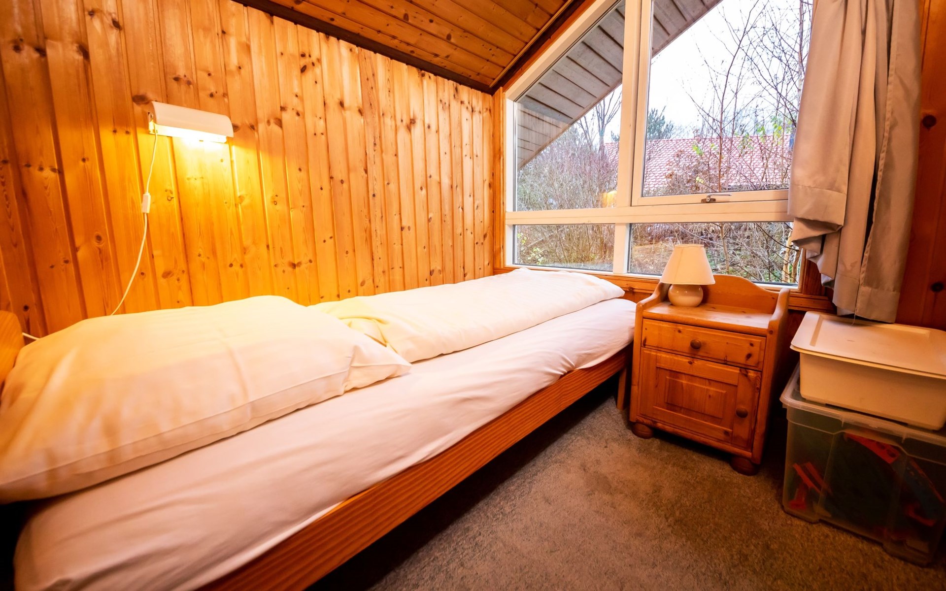 Rott 7 km from Bösingfeld: Holiday village "Ferienpark Extertal". Outside the resort, in a quiet, sunny position, along the wooded area. Parking. Shop 6 km, grocery 6 km, supermarket 6 km, restaurant 6 km, bus stop 100 m, railway station "Rinteln" 12 km, outdoor swimming pool 6 km, indoor swimming pool 6 km. Golf course (18 hole) 19 km, riding stable 15 km. Well-known lakes can easily be reached: Doktorsee 12 km. Please note: car recommended. Thermal baths nearby: Bad Salzuflen, Bad Oeyenhausen, Bad Pyrmont. Walking and hiking trails from the holiday park. The holiday park is located on the edge of a nature reserve and consists of Scandinavian wooden lodge holiday homes.