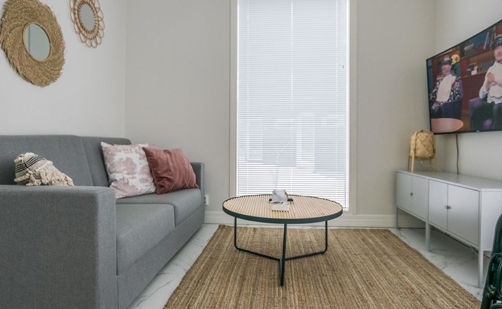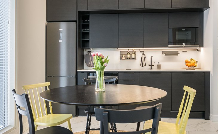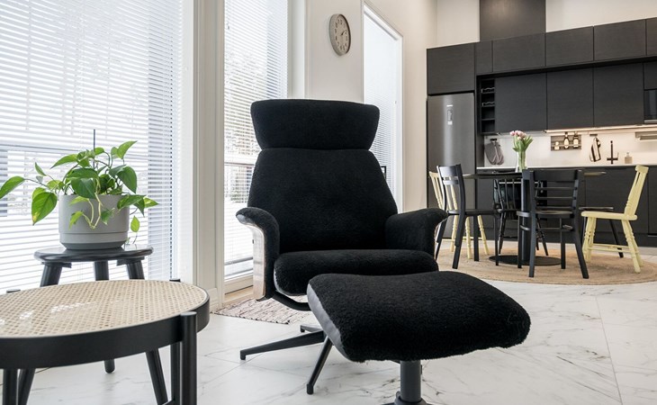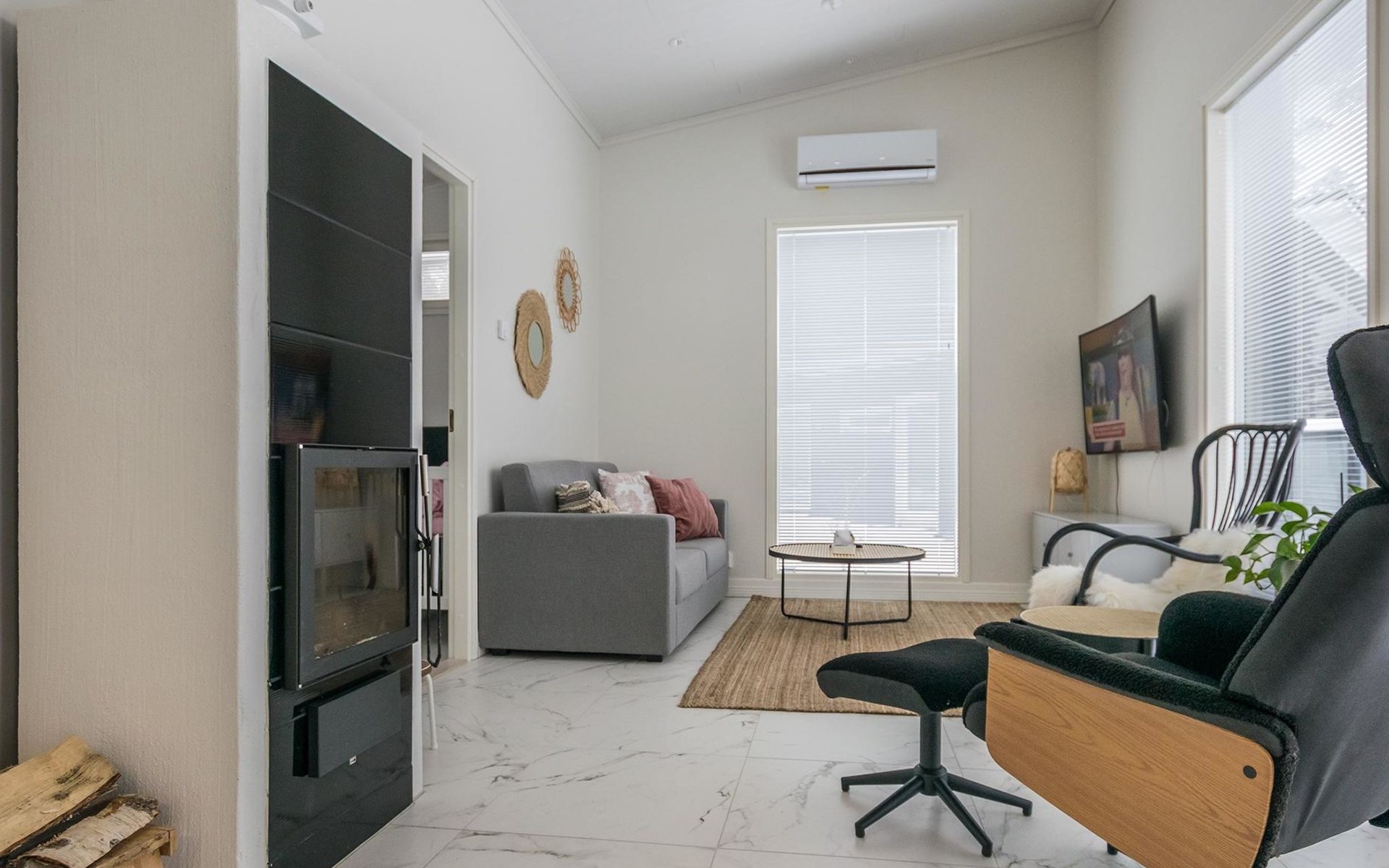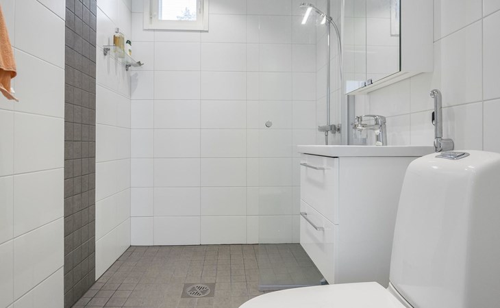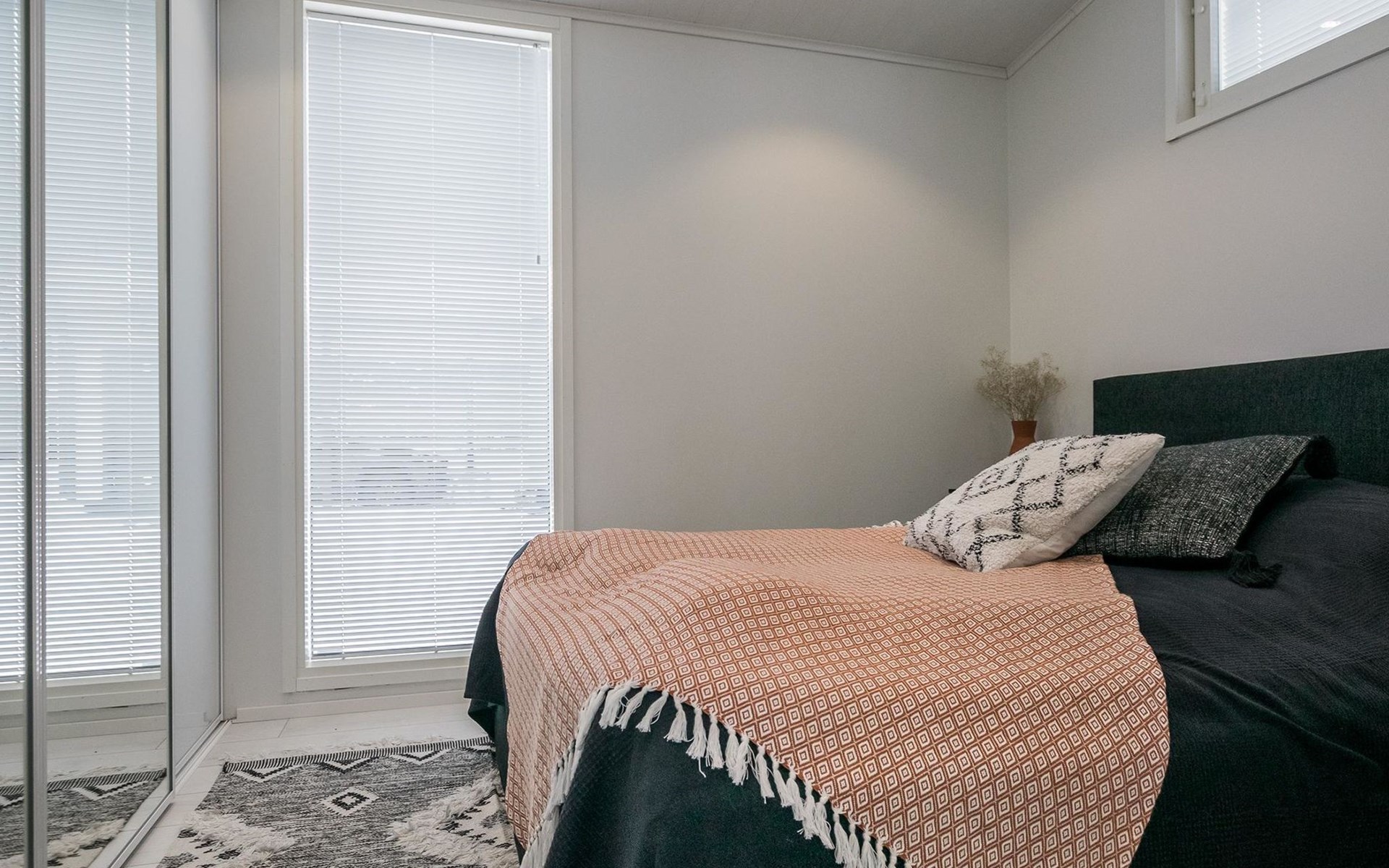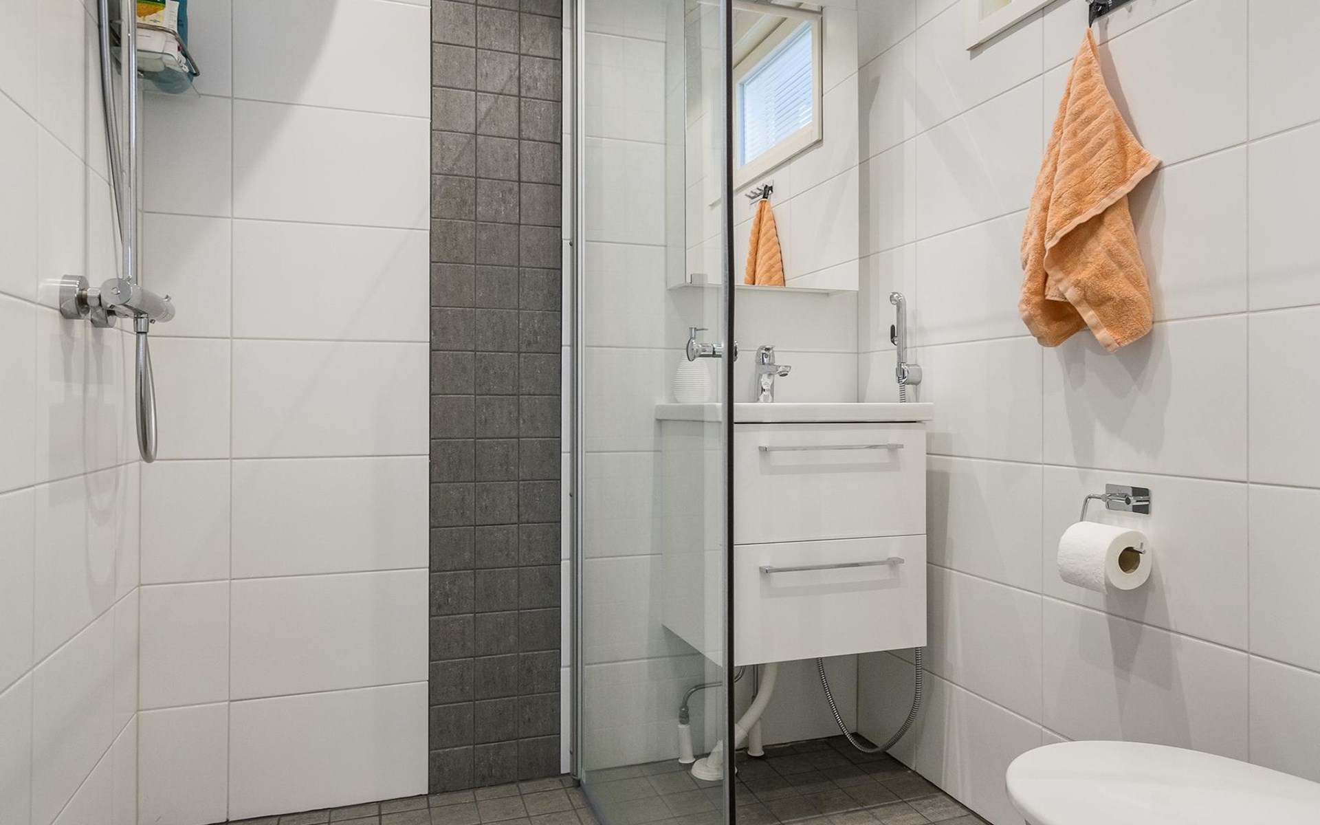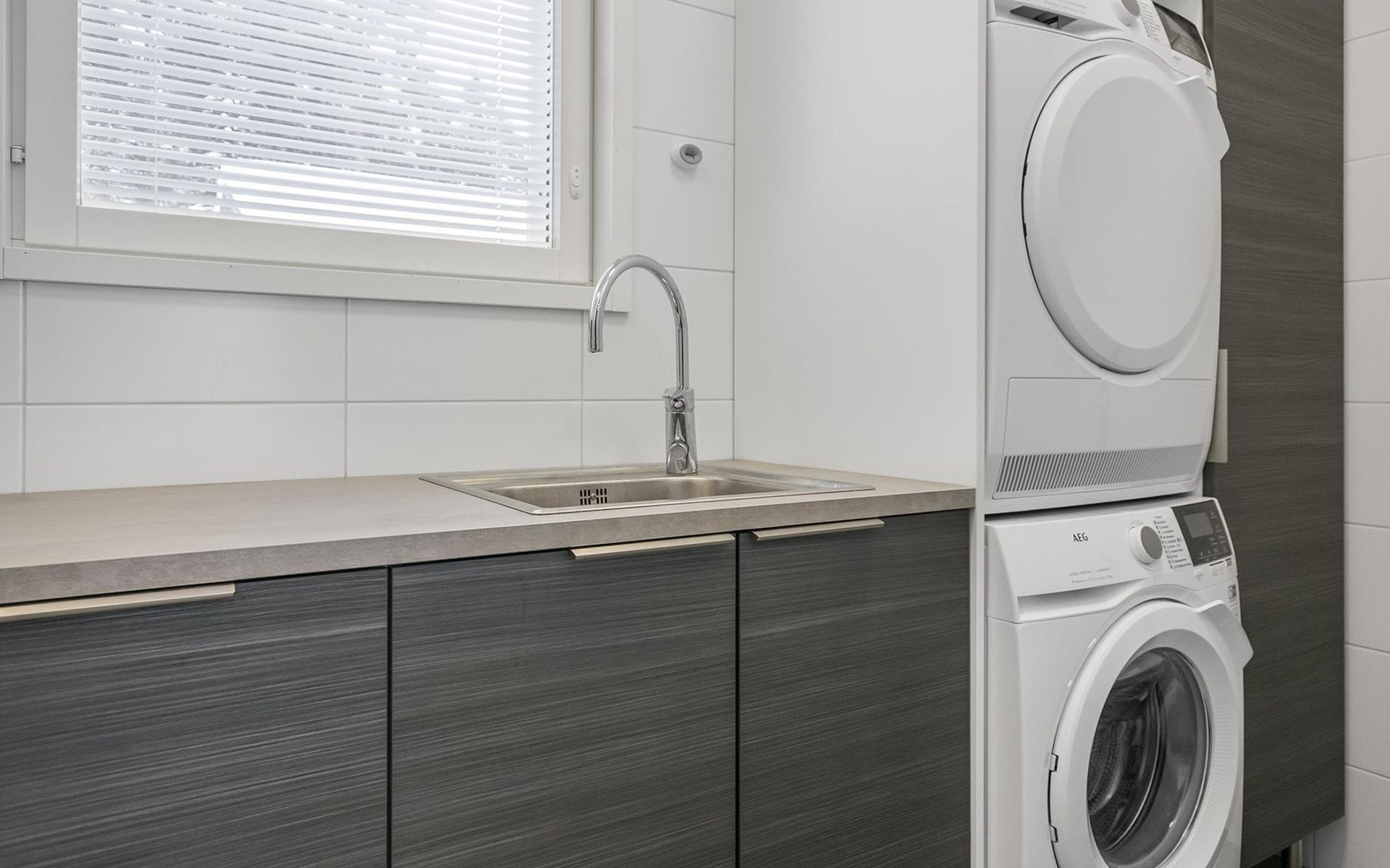 Wooden holiday home with boarded outer walls, built in 2021. Living room (140x190 cm sofa bed), living room/kitchen, heat storing fireplace, separate WC, utility room (washing machine and tumble dryer). Two bedrooms, bedroom 1: double bed, bedroom 2: double bed 140x200 cm and sofa bed (120 cm). Access to the bedroom is from the glazed terrace, the room is also a dressing room for sauna. Sauna is equipped with electric sauna stove, washroom with shower and WC, spacious glazed terrace.